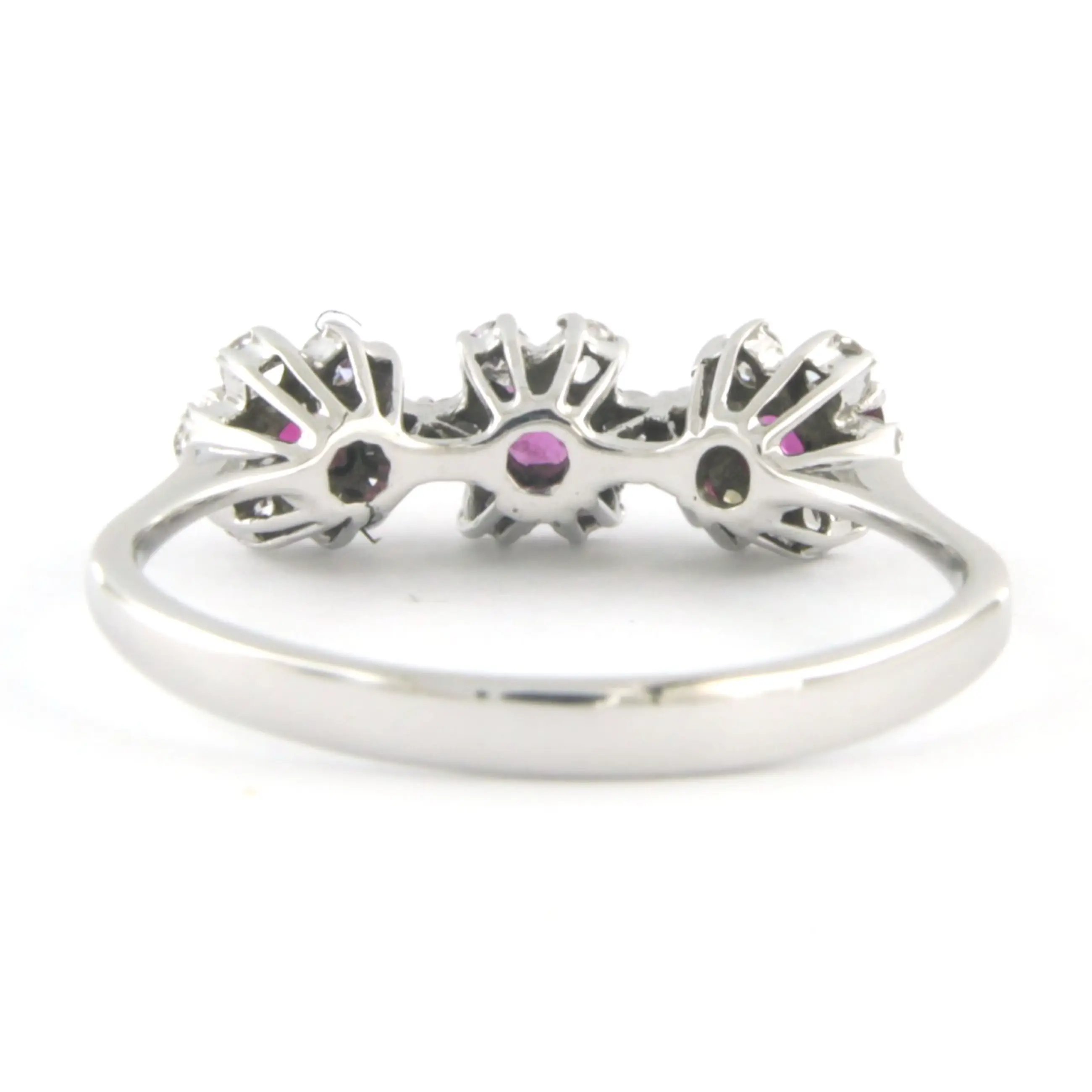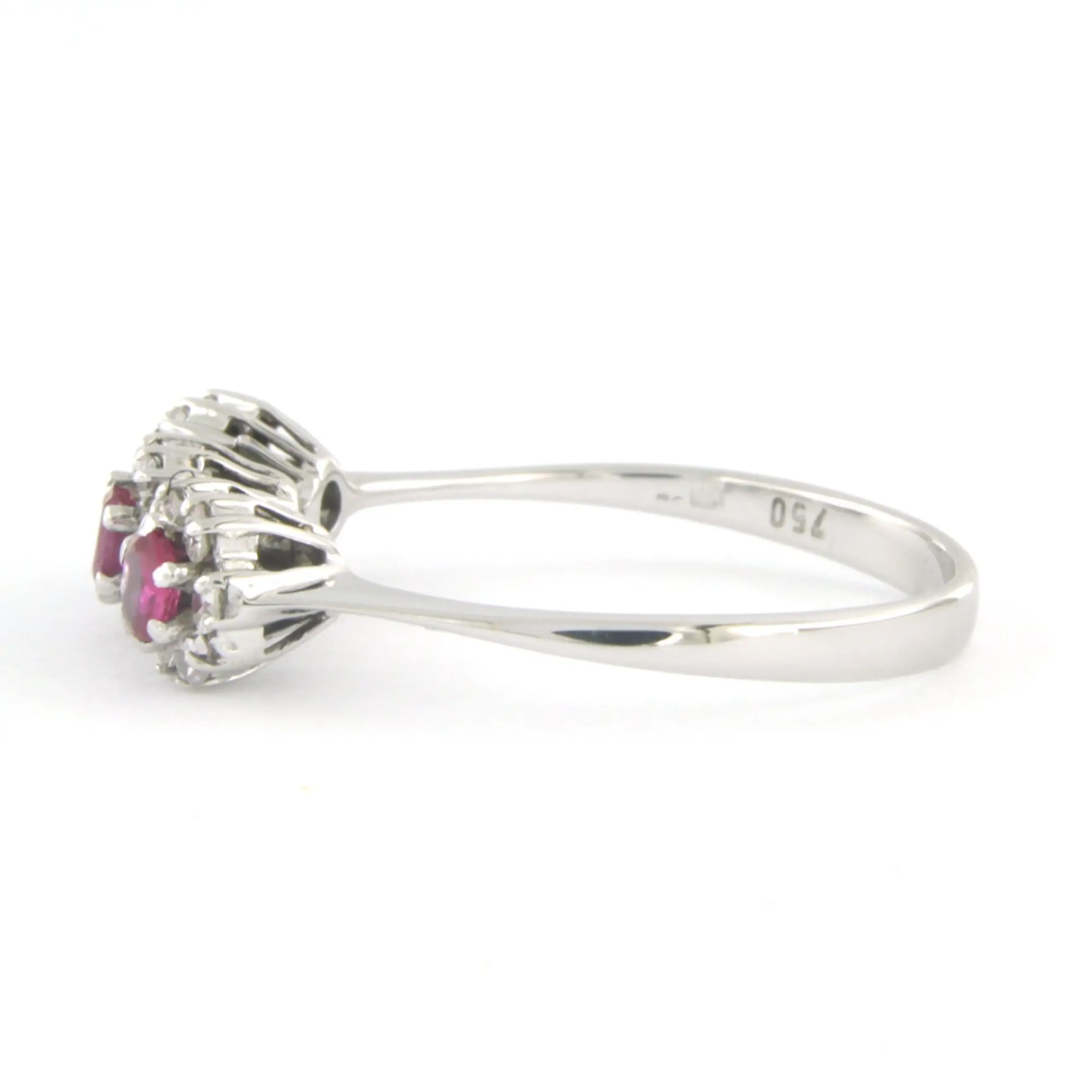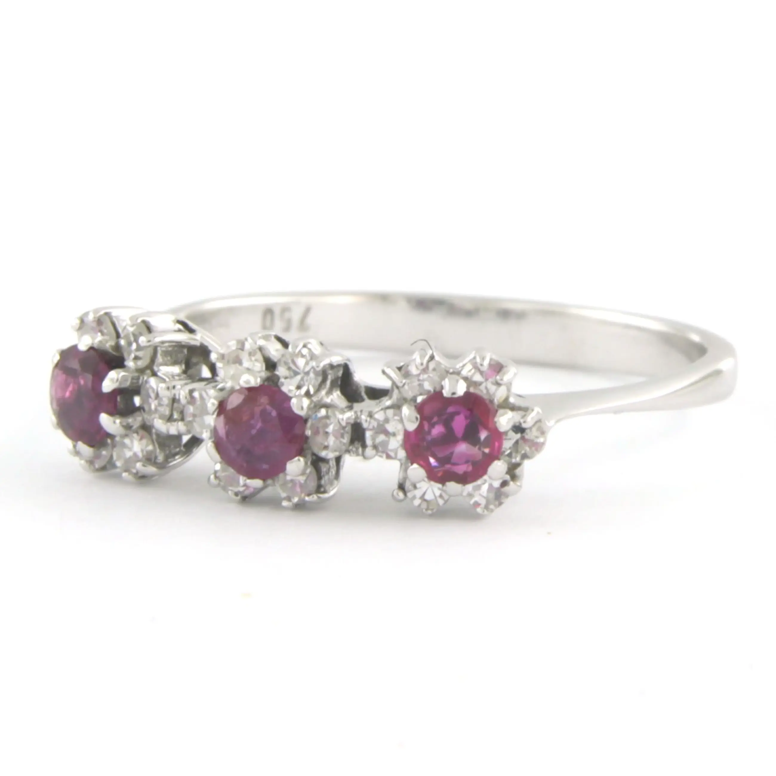 18k witgouden ring bezet met robijn en single cut geslepen diamanten totaal 0,25ct - F/G - VS/SI - ringmaat 19 (60)