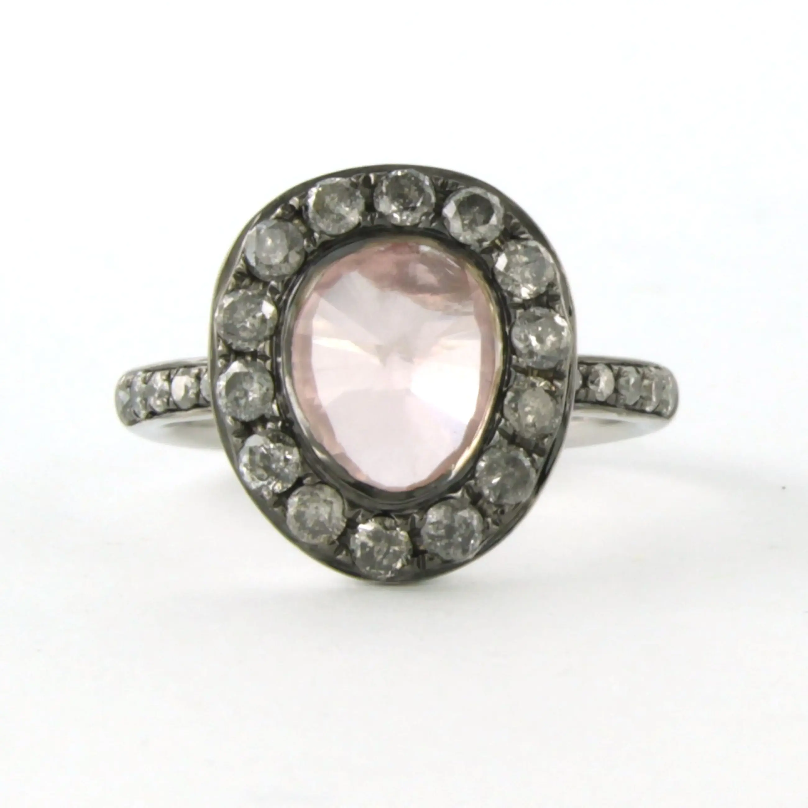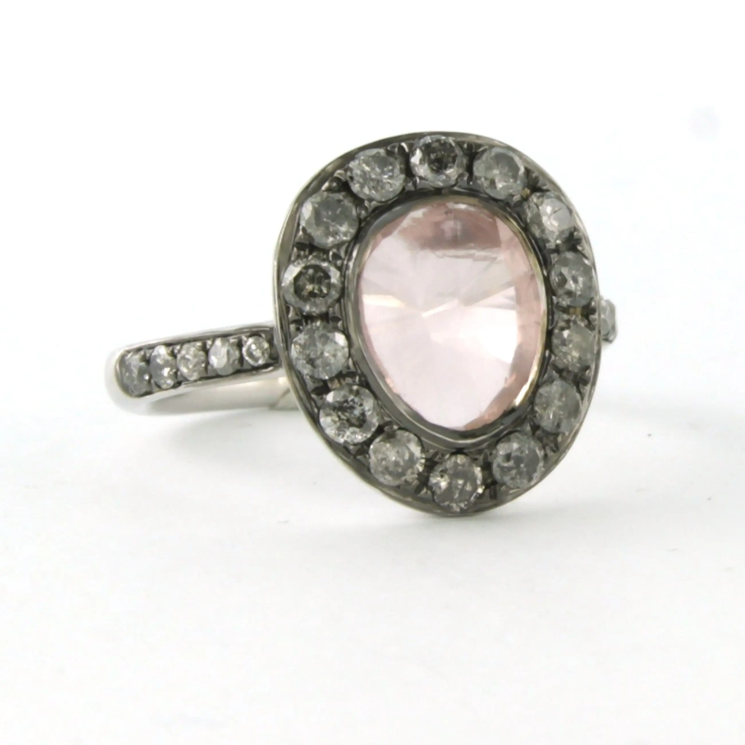 18k witgouden ring met roze kwarts en briljant geslepen diamanten tot. 0.50ct