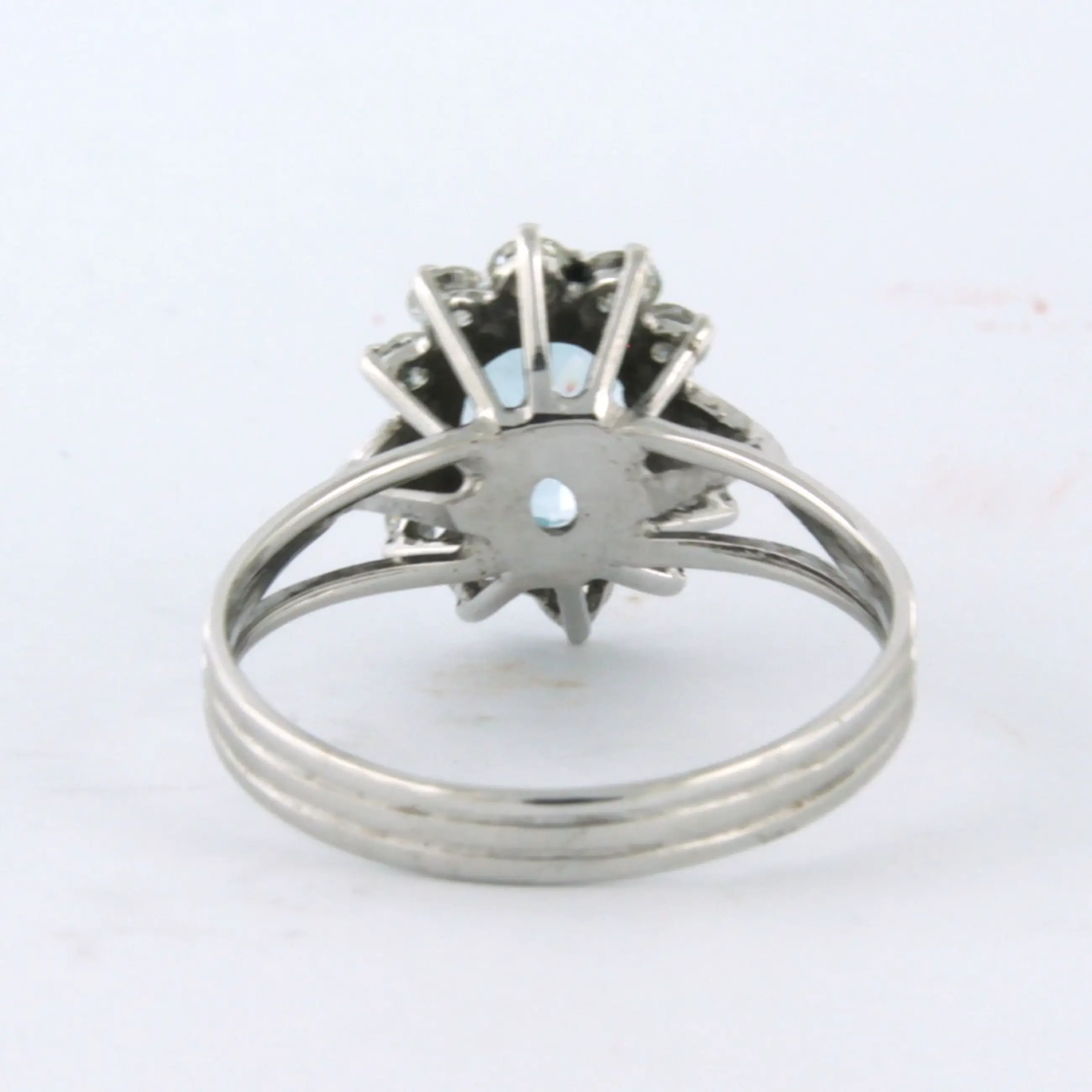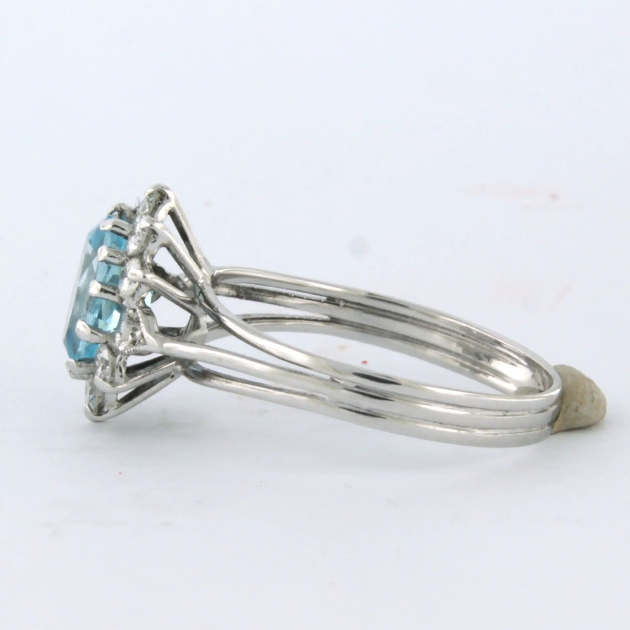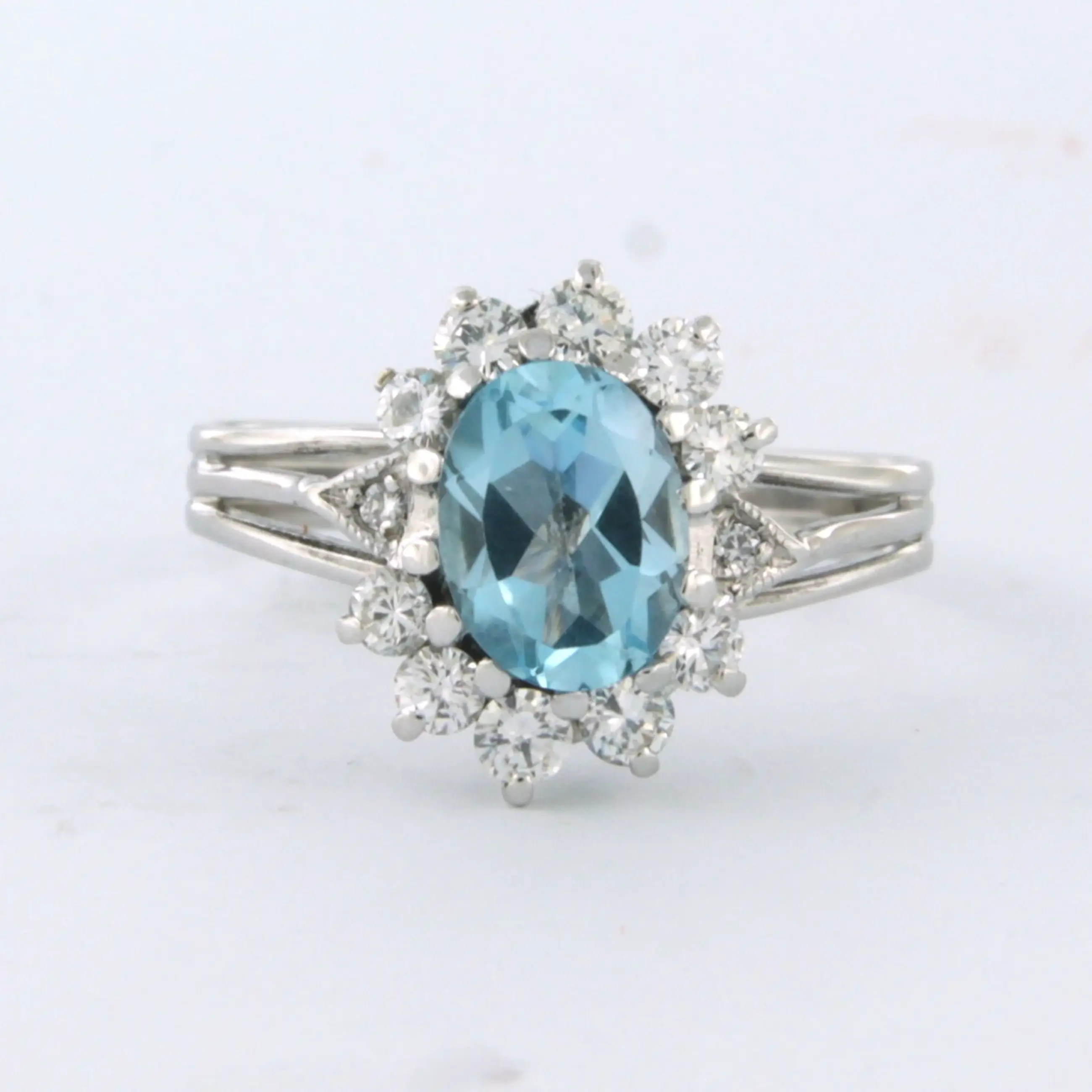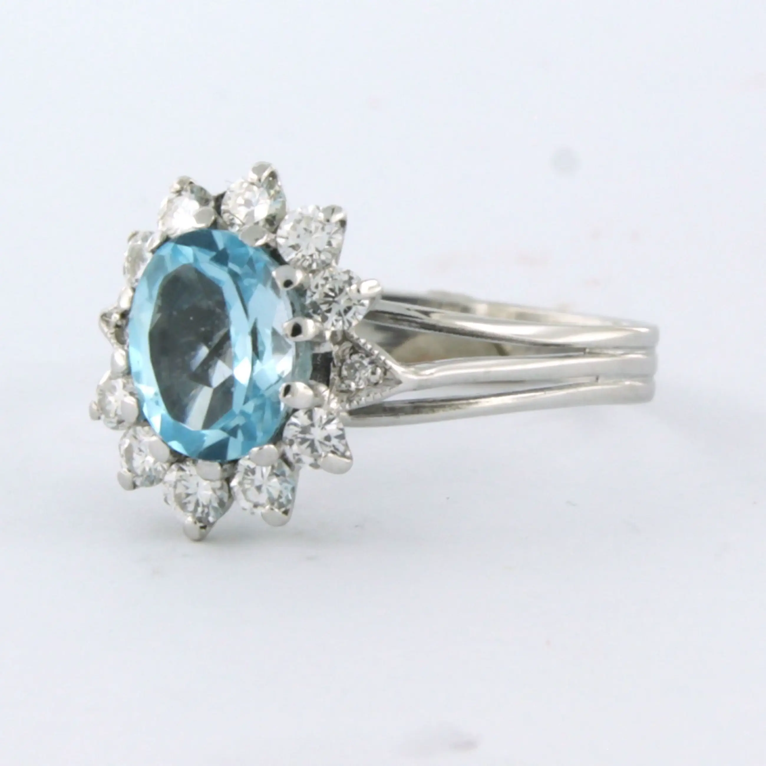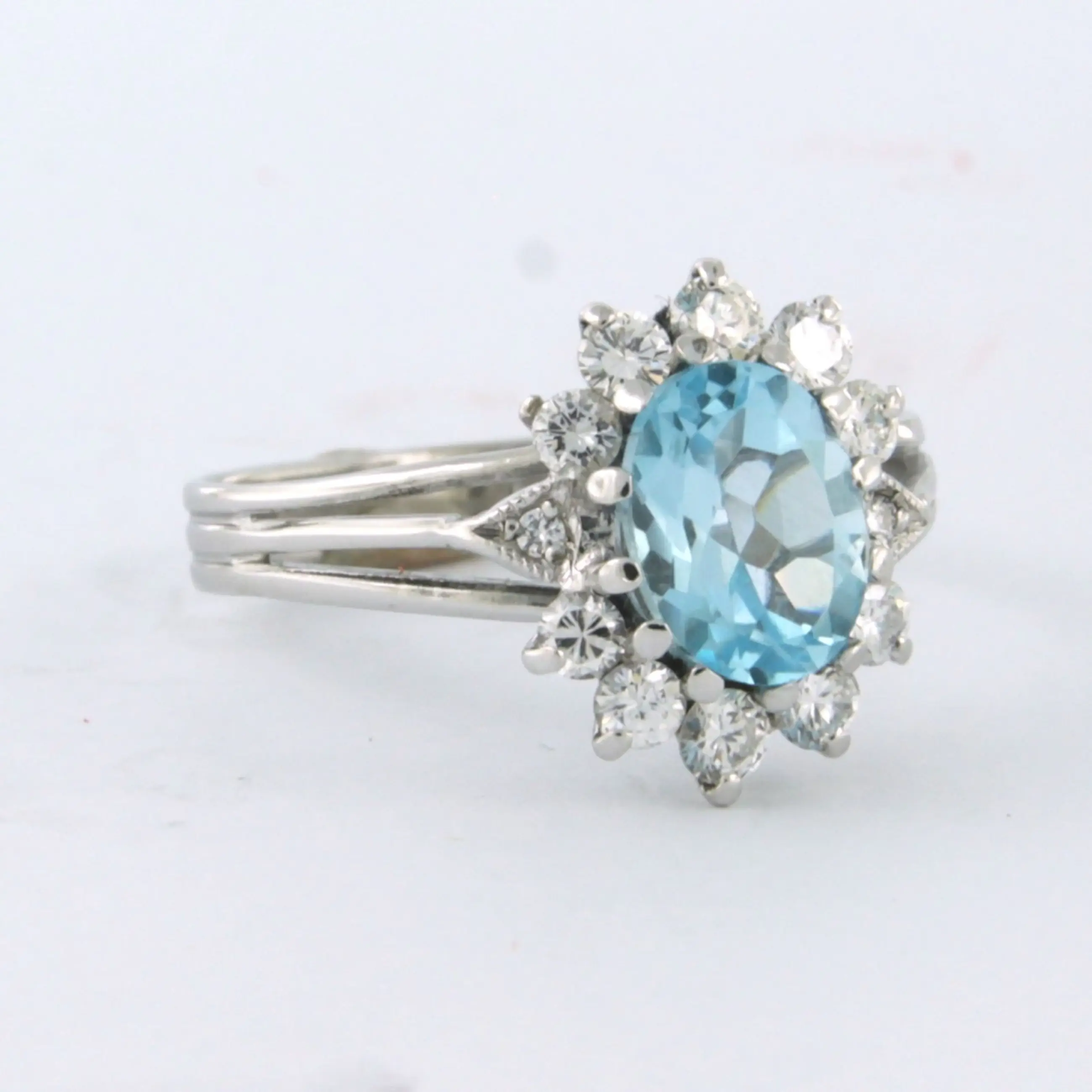 18k witgouden entourage ring bezet met centraal een topaz tot. 1,60ct en aan entourage briljant geslepen diamant tot. 0.41ct - F/G - VS/SI - ringmaat 18,25(57)