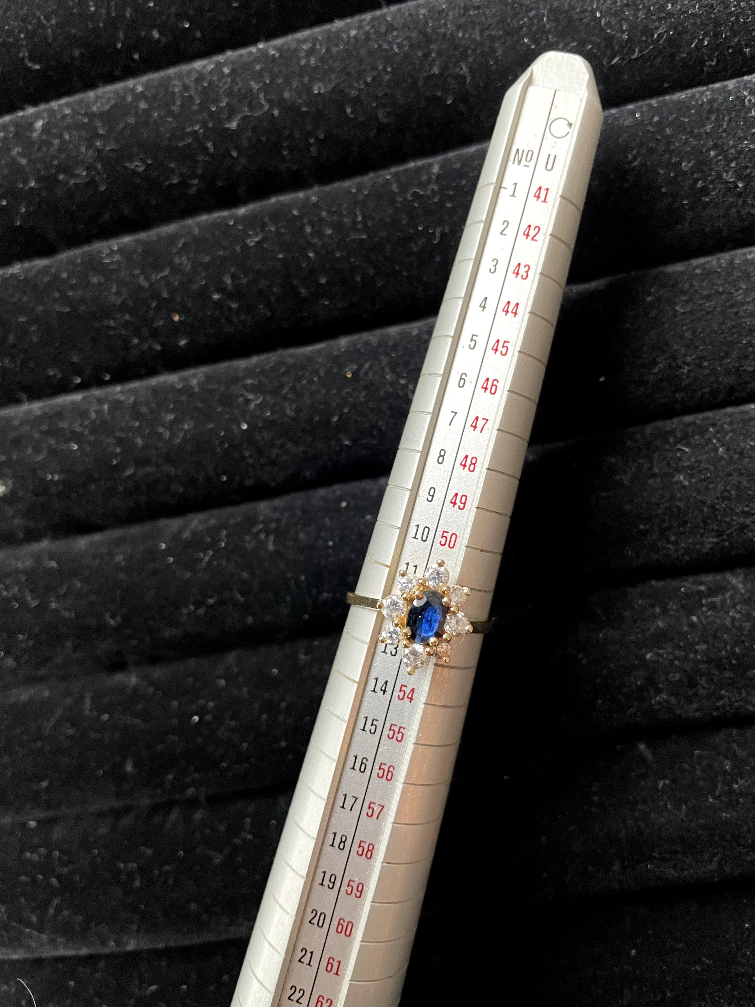 De saffier is. ovaal facetgeslepen. 4x6 mm