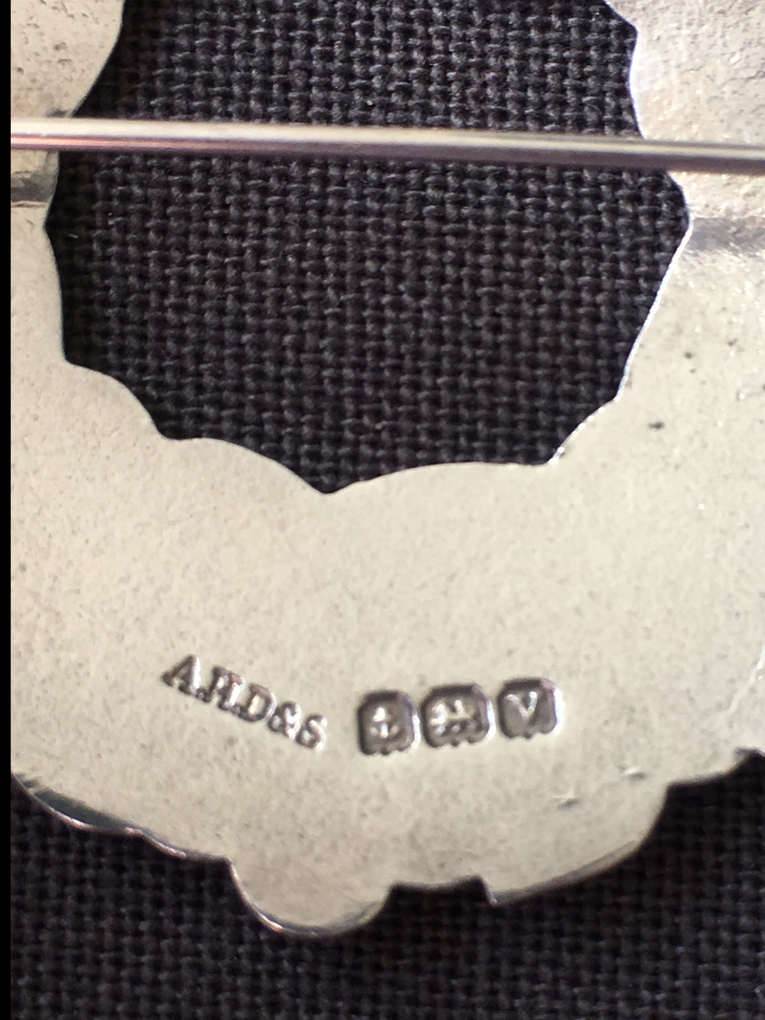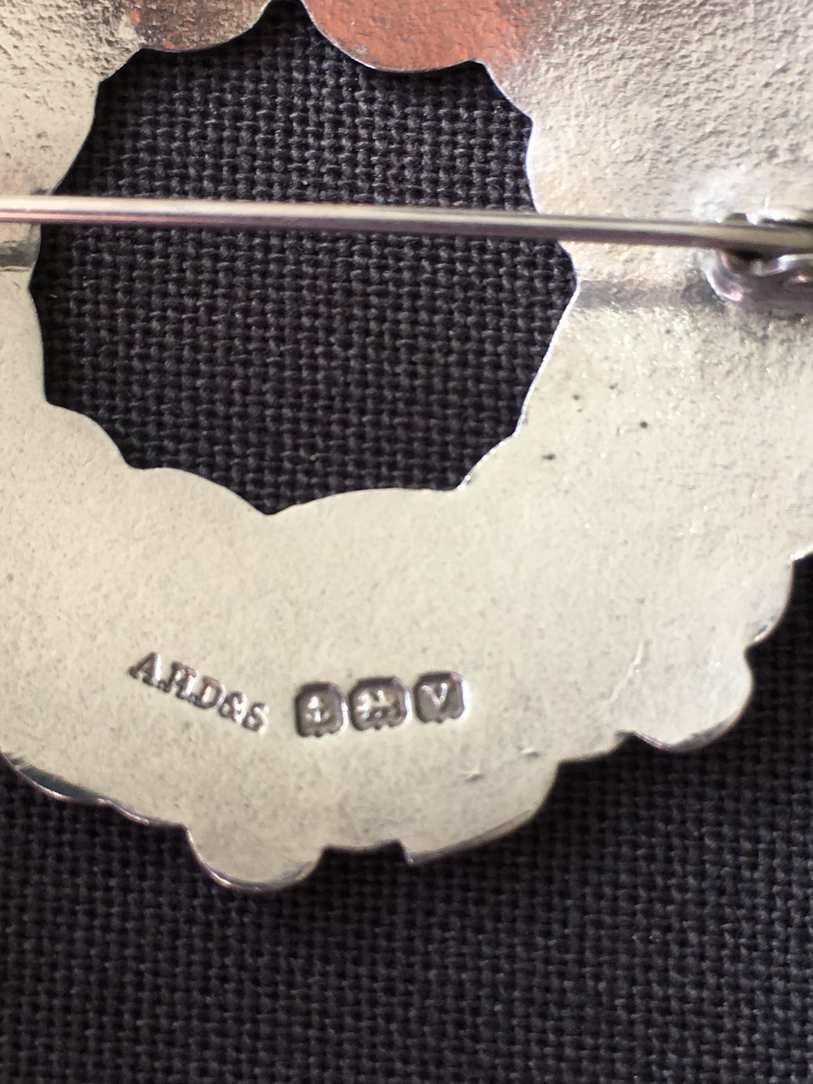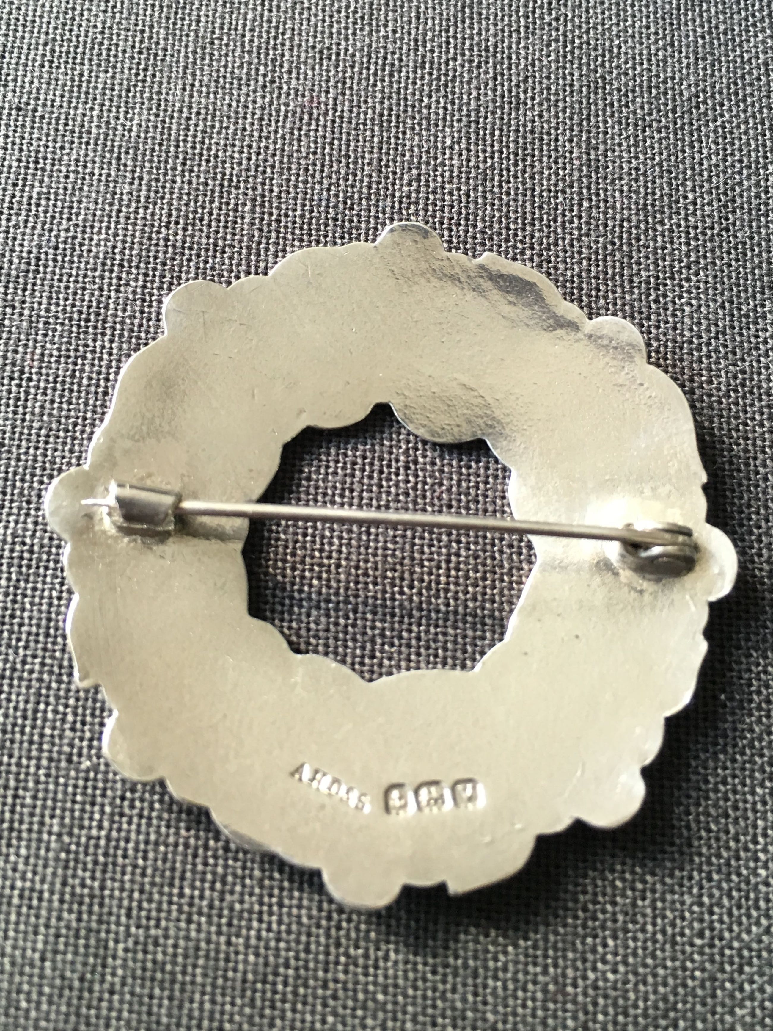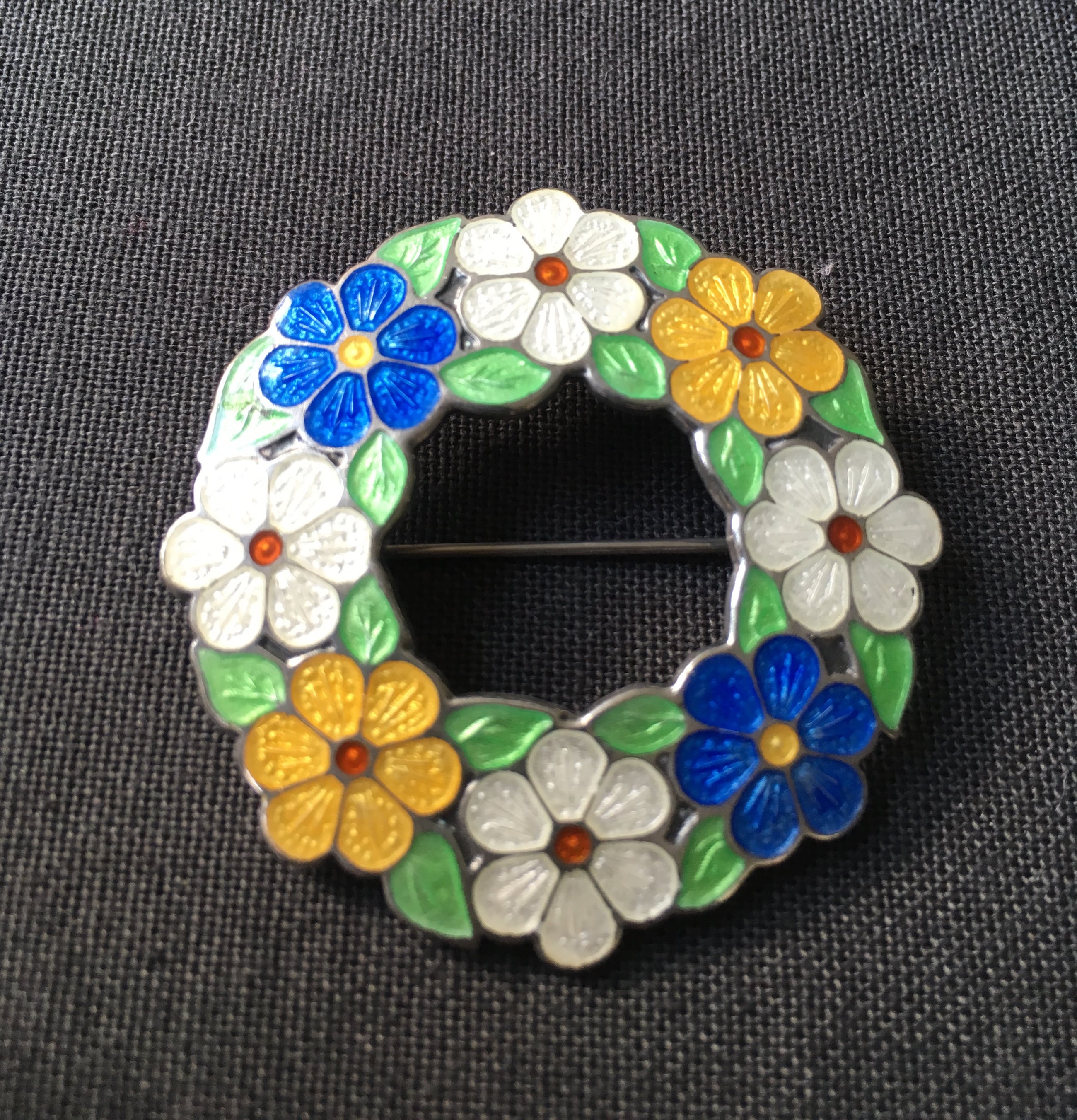 Kleurrijke email broche van sterling zilver en geheel gekeurd op de achterzijde.