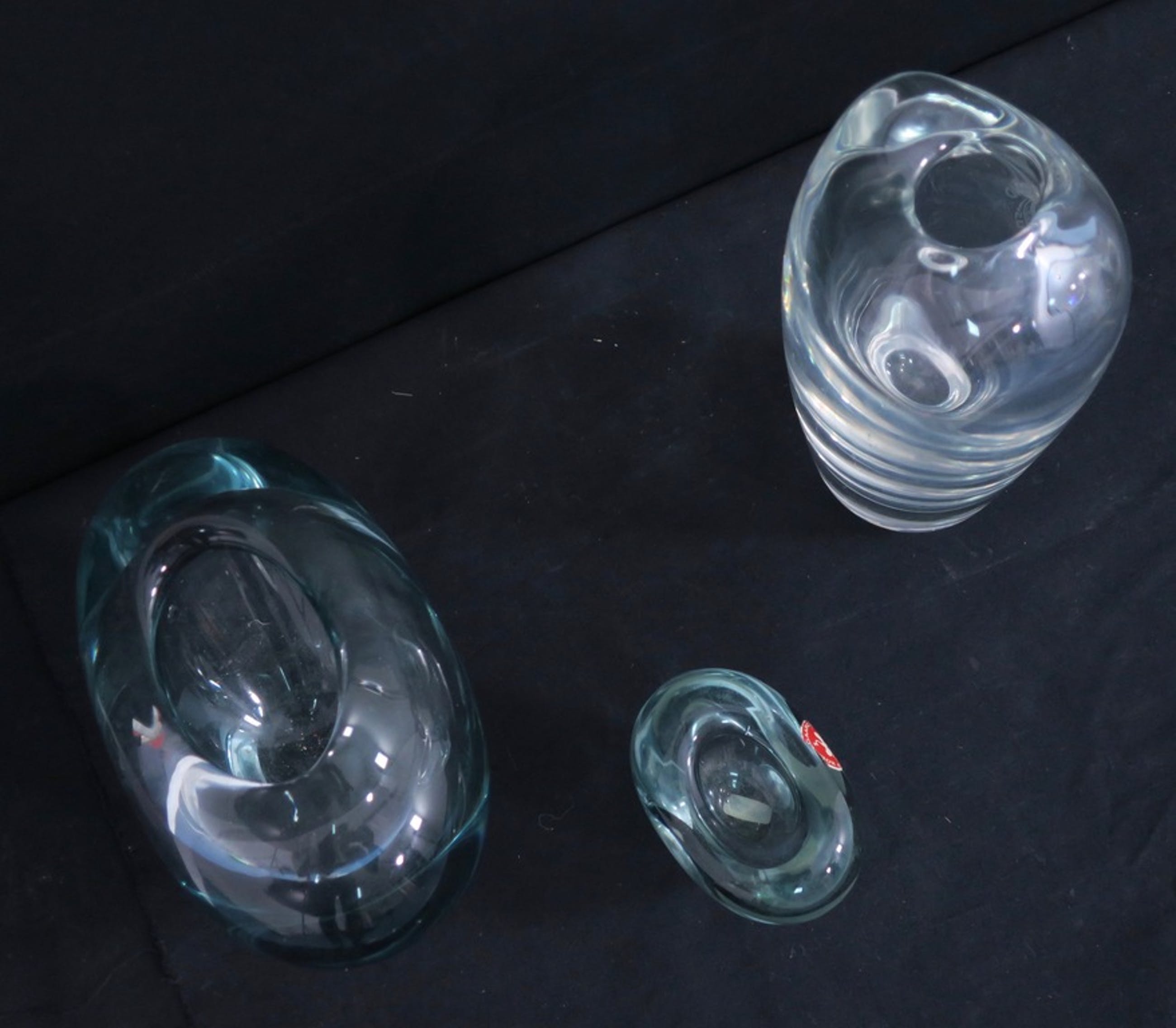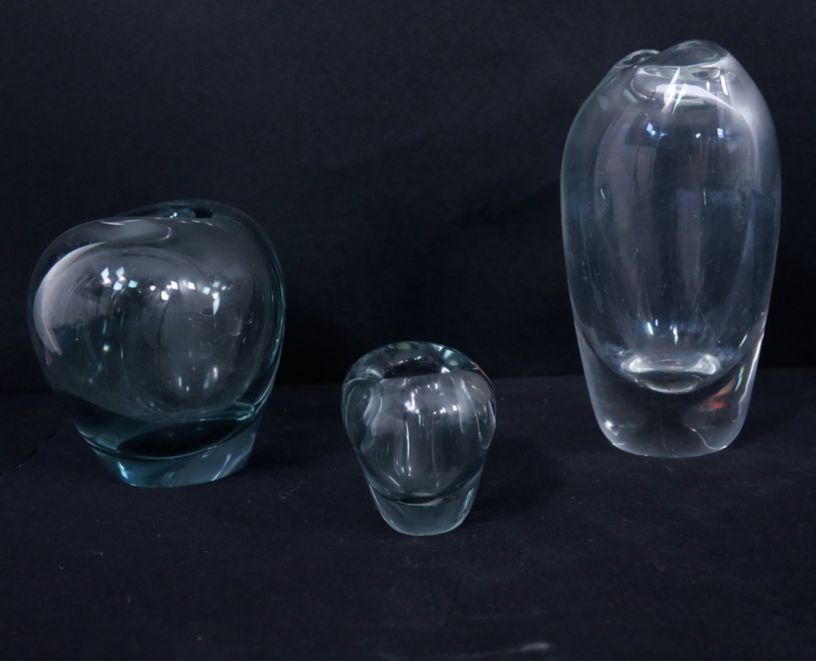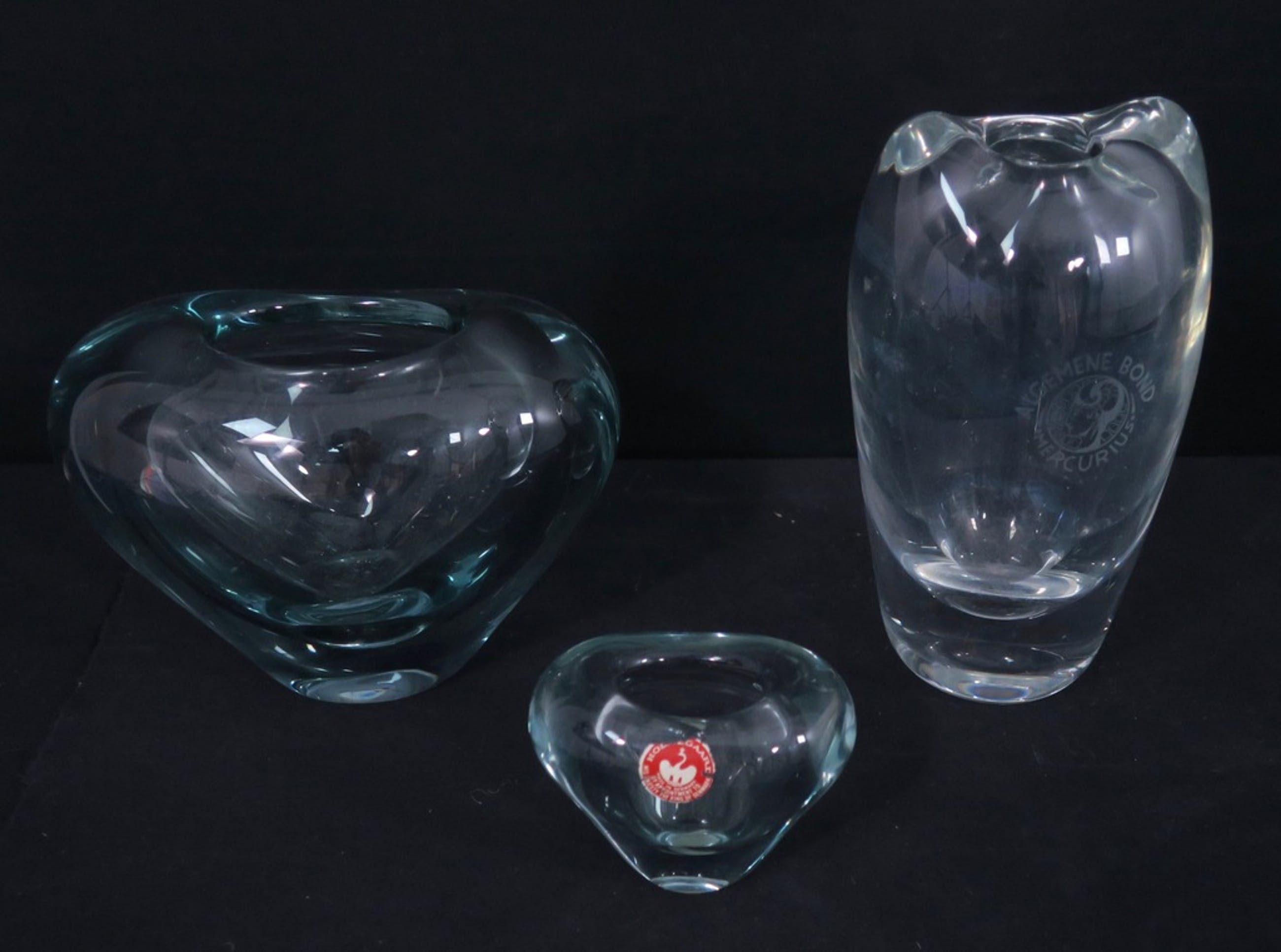 Titel: 2 hartvormige vaasjes van Holmegaard glaswerk, Denemarken