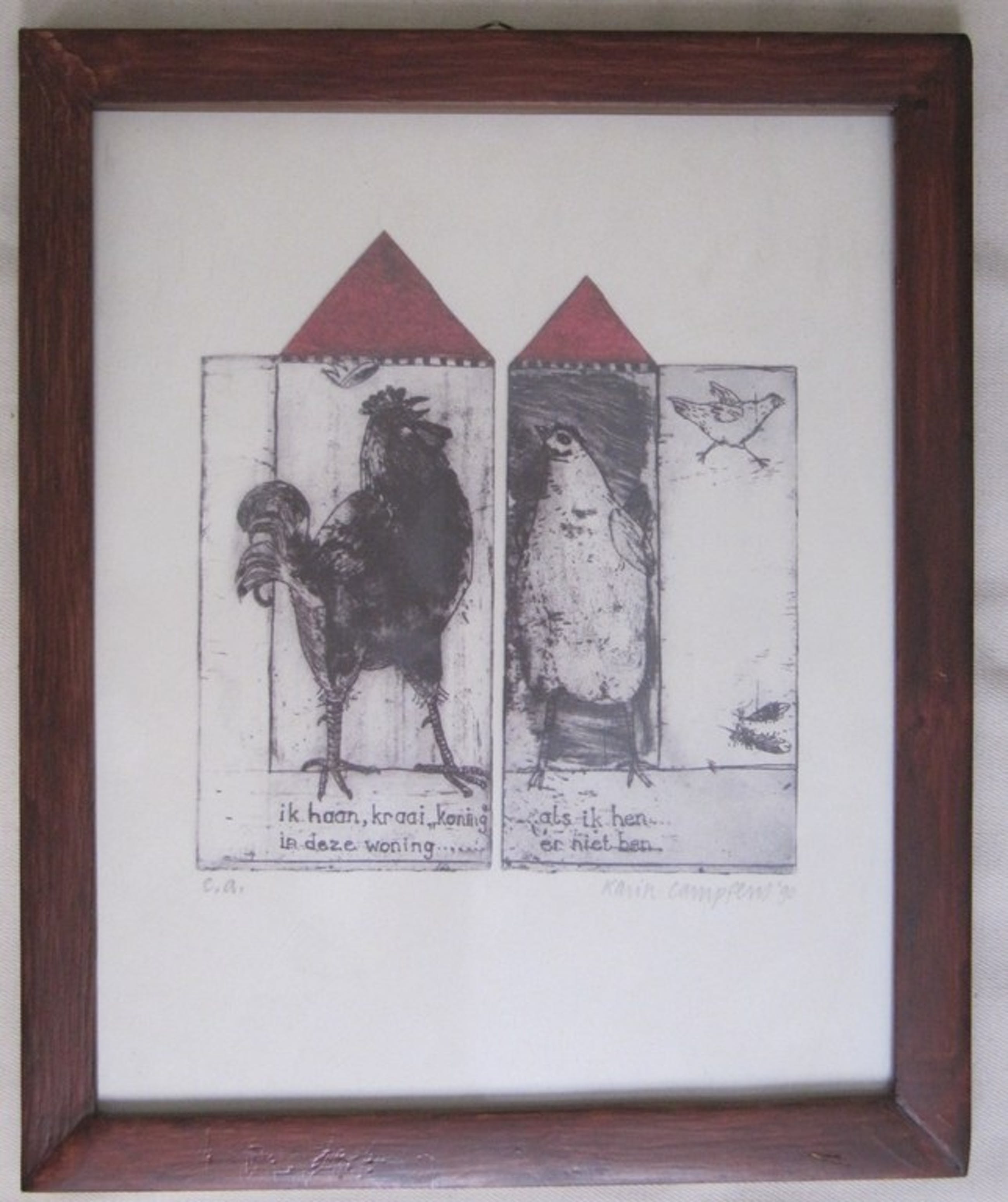 Litho 1 / Eigen afrdruk "Ik haan, kraai, koning in deze woning, als ik hen er niet ben" Vel 27 x 22 (hxb)