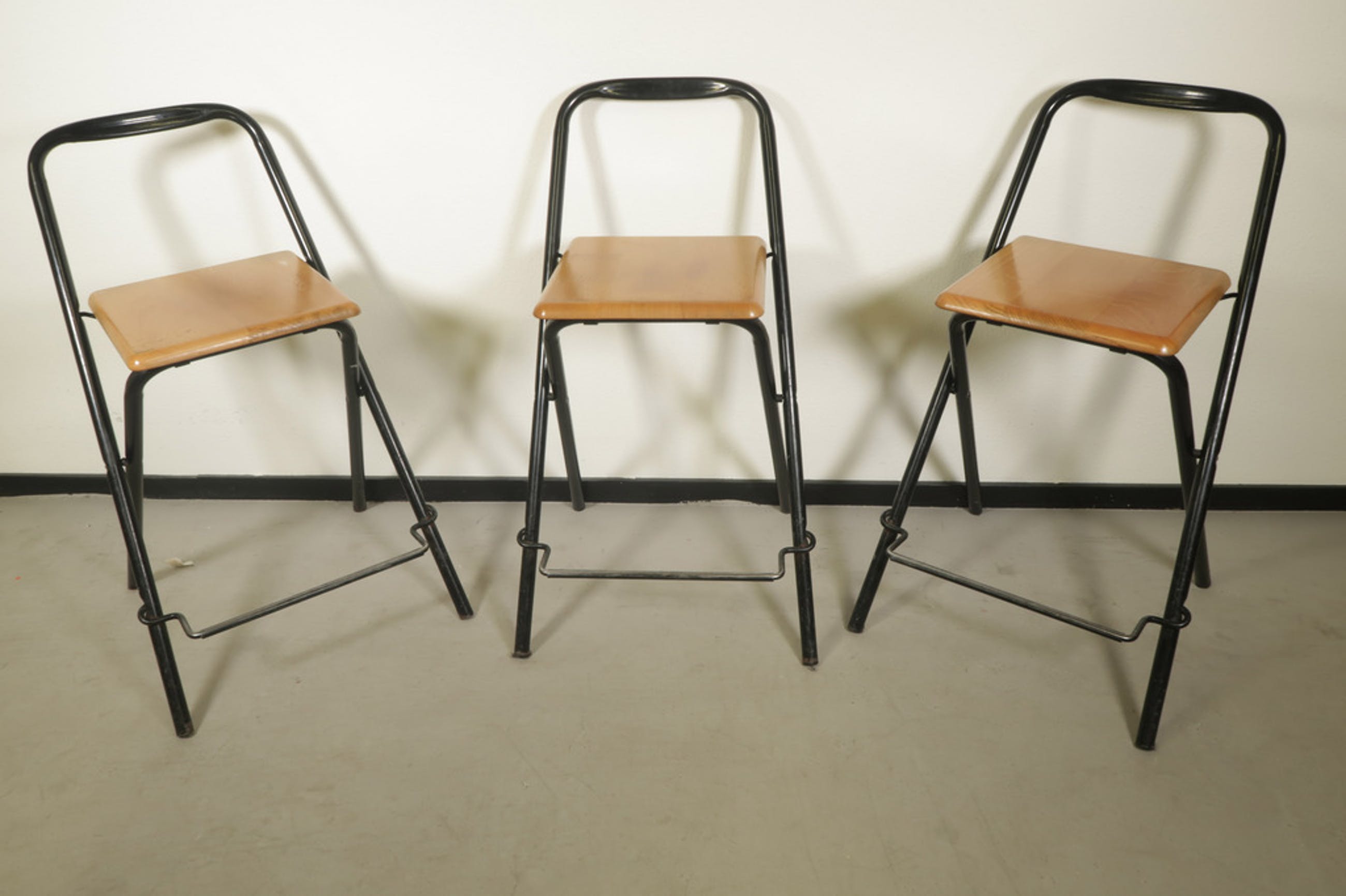 Deze drie krukjes zijn ontworpen door de Italiaanse ontwerper Francesco Favagrossa, de oprichter van het Italiaanse product design bedrijf ‘Fiam’. Deze krukjes zijn zowel binnen als buiten te gebruiken, en door het slimme ontwerp stapelbaar en opklapbaar. Hierdoor zijn deze krukjes ruimtebesparend. De krukjes bestaan uit een stalen frame voorzien van een zitting gemaakt van Europees hardhout. Door de hoge rugleuning en de voetensteunen zijn de krukjes bijzonder comfortabel.