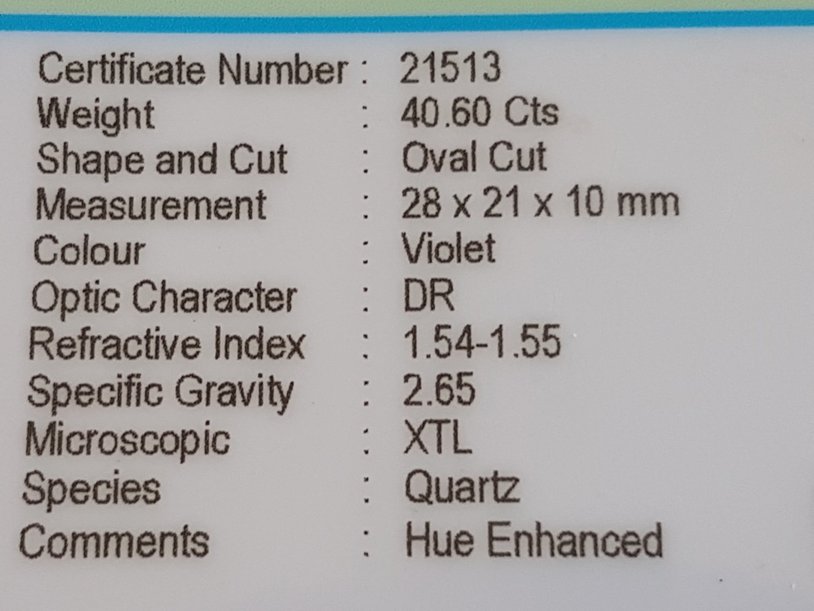 40.60 Ct Certified Oval Voilet Amethyst Gemstone