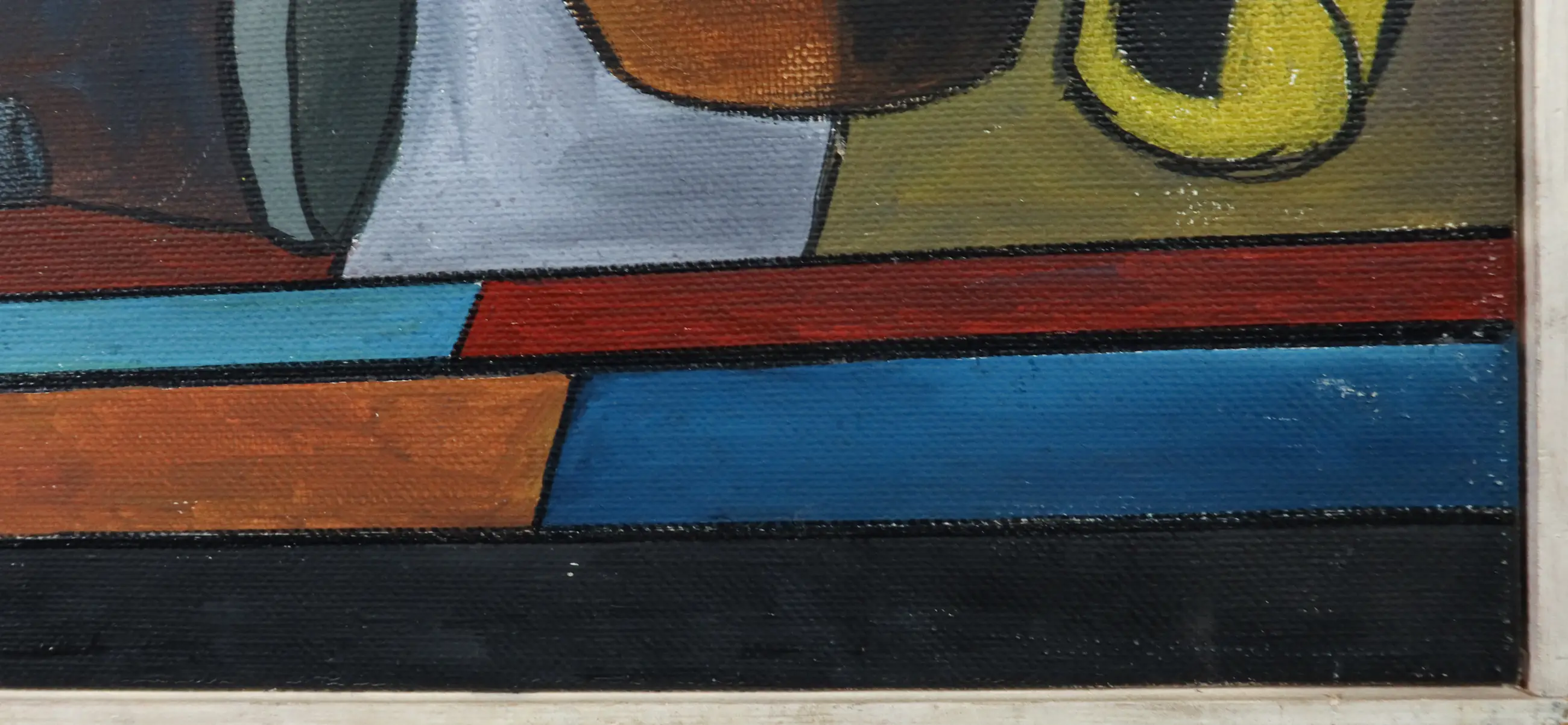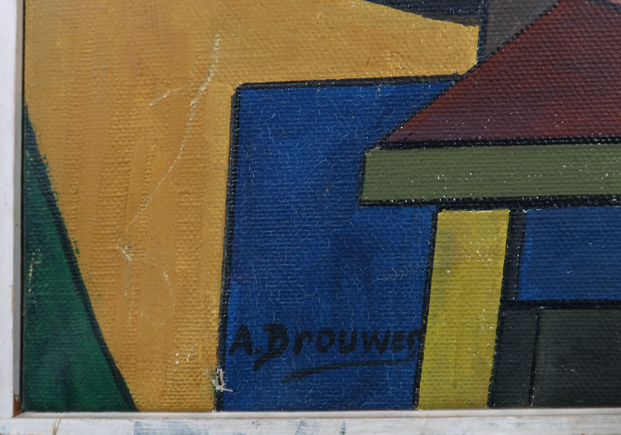 | Doek is wat bekrast en bevat craquelé. Bij het signatuur zit een gat in het doek. | |