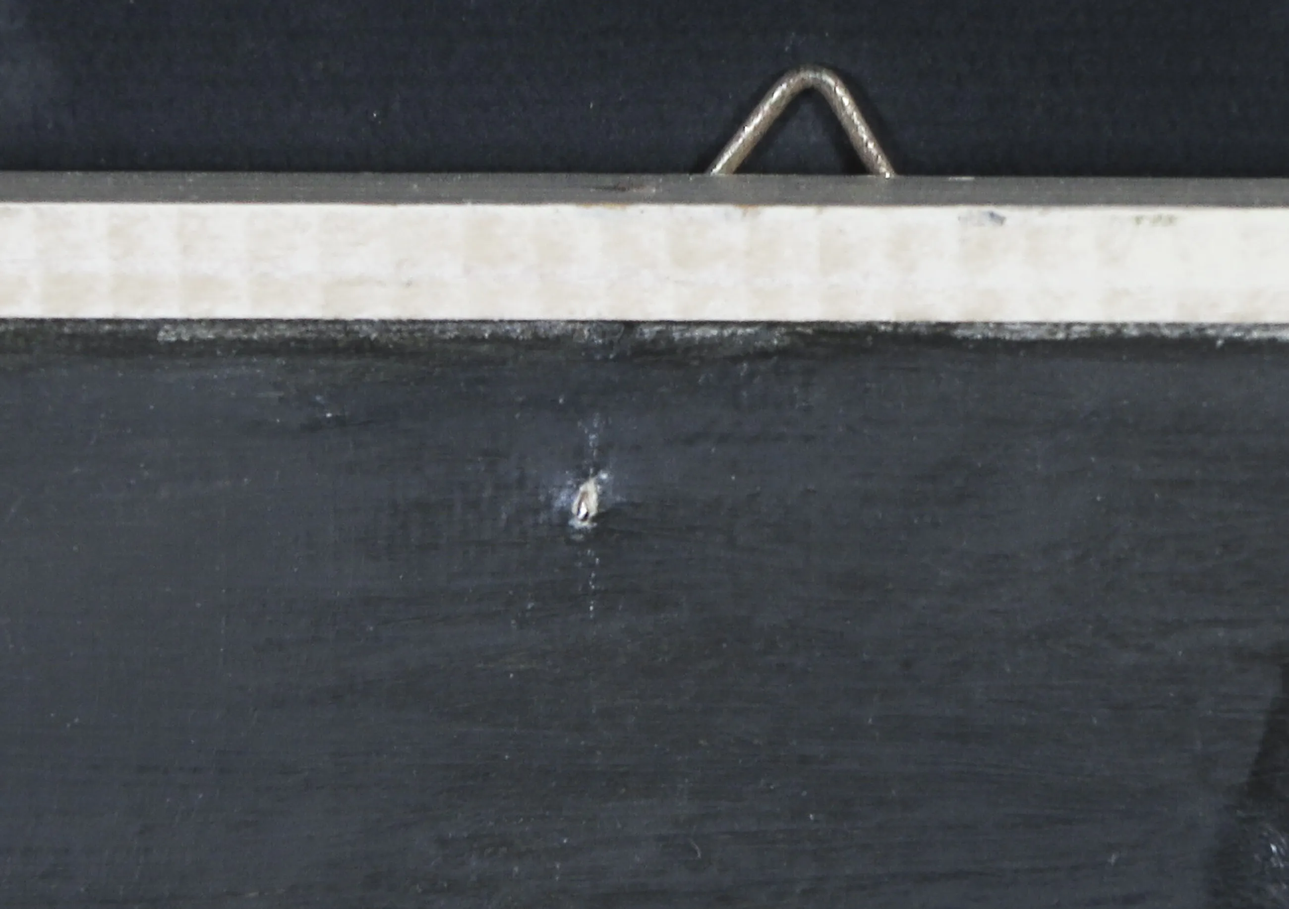 midden-boven zit een kleine perforatie (spijker) door het doek. Verder wat lichte oppervlakkige oneffenheden. | |