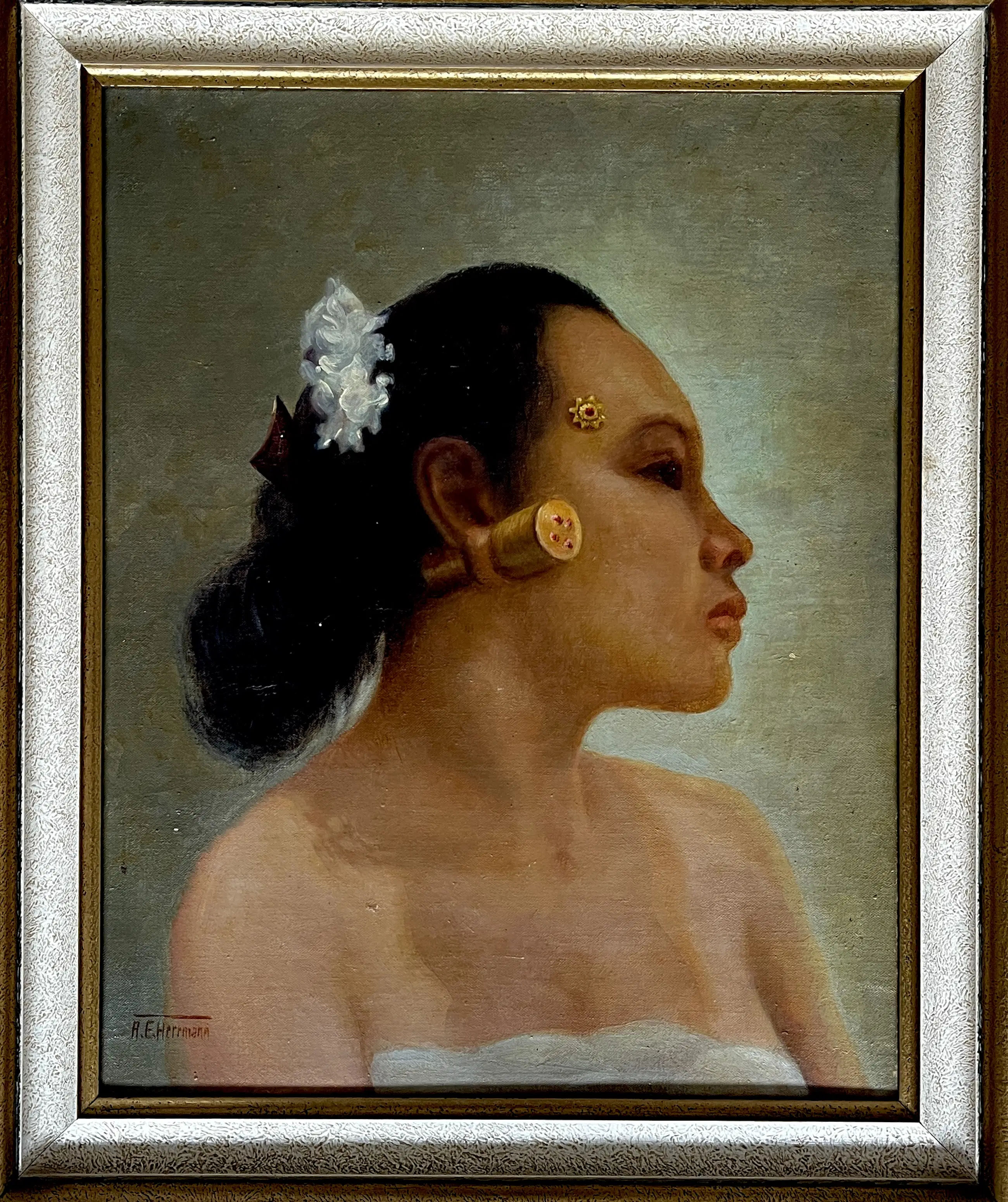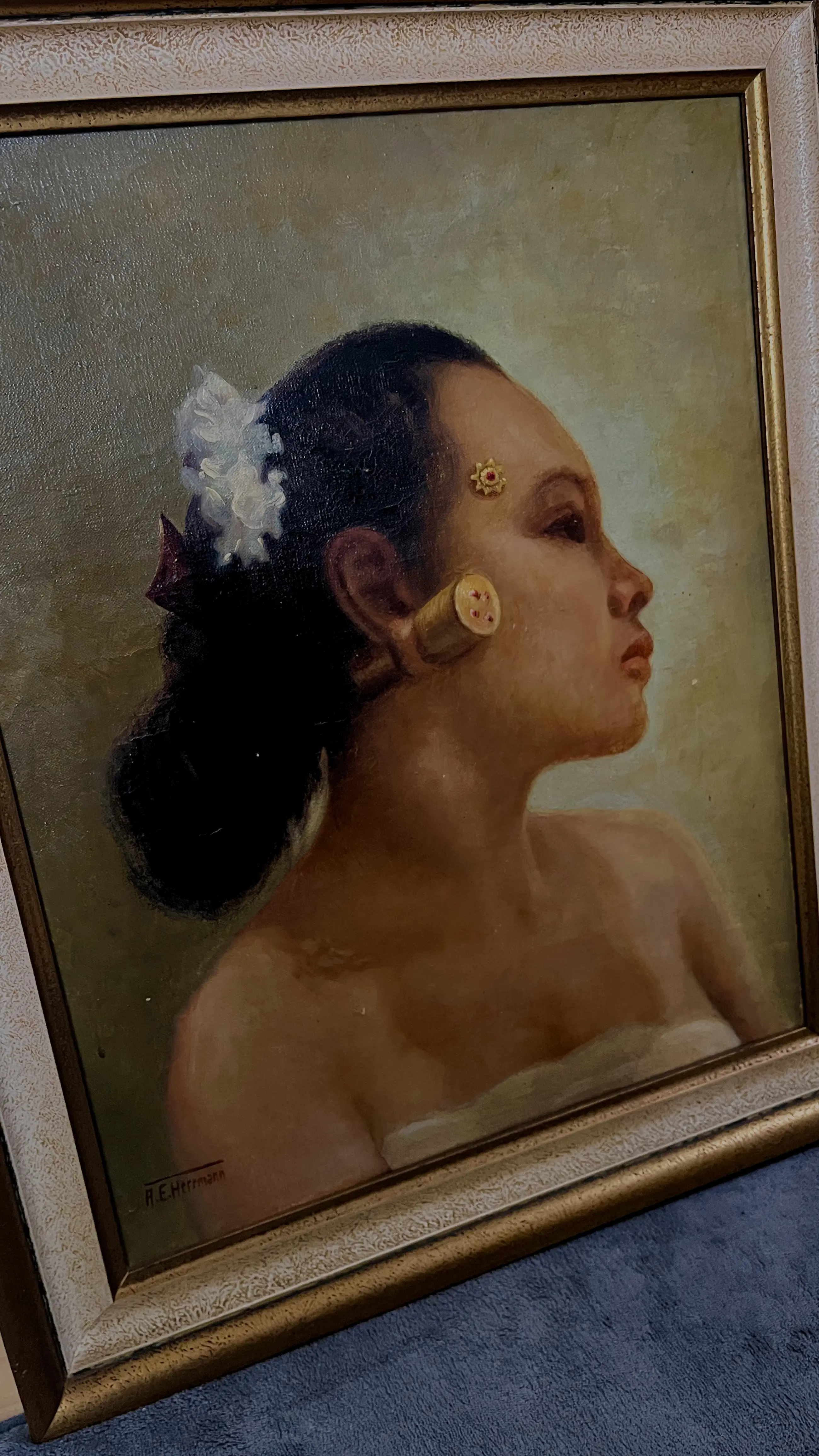 Mooi vrijwel onbeschadigd schilderij (portret) van een Javaanse of Balinese vrouw