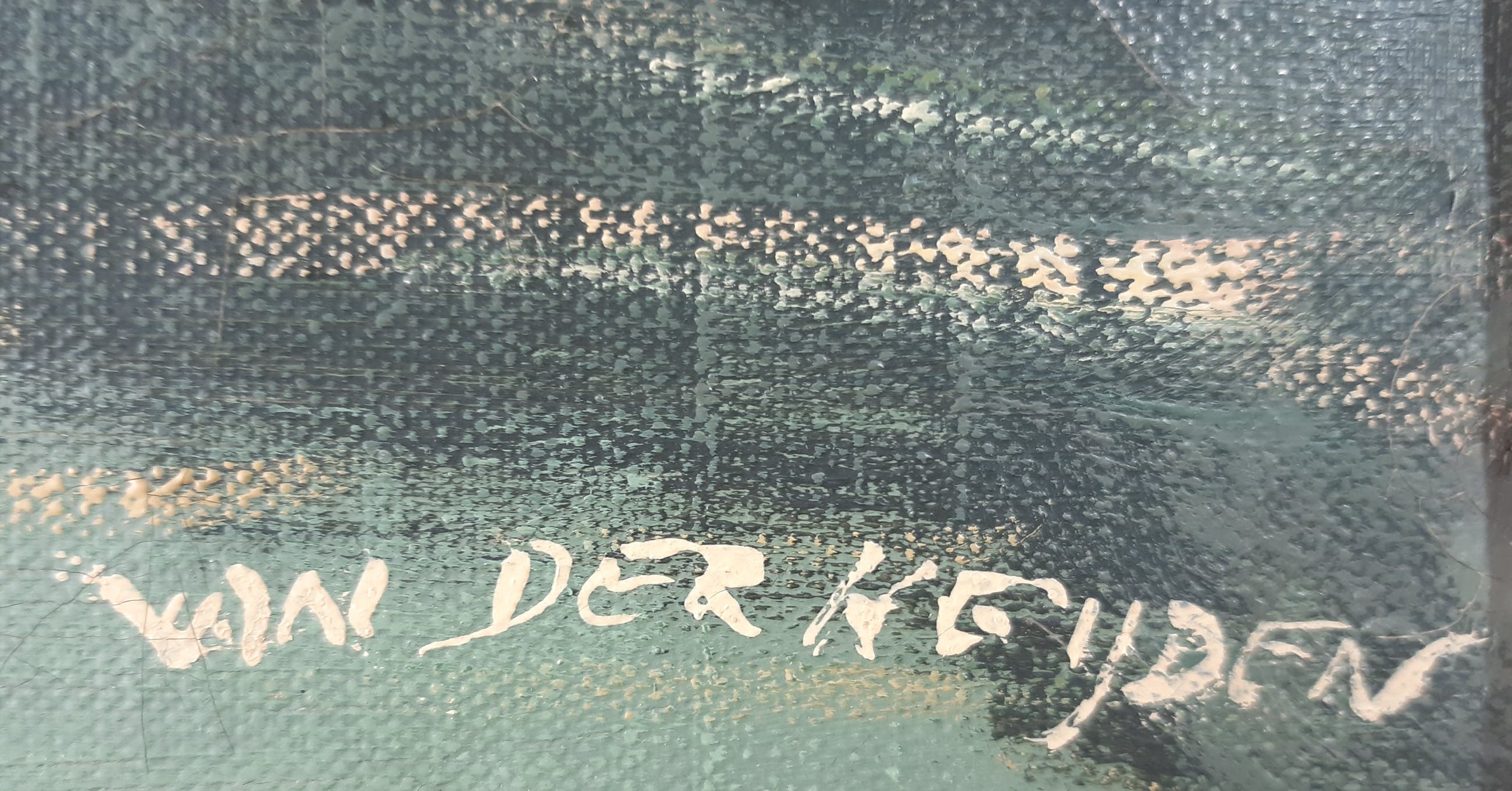 Het doek is zonder meer in goede staat. De lijst heeft heel lichte gebruikssporen.