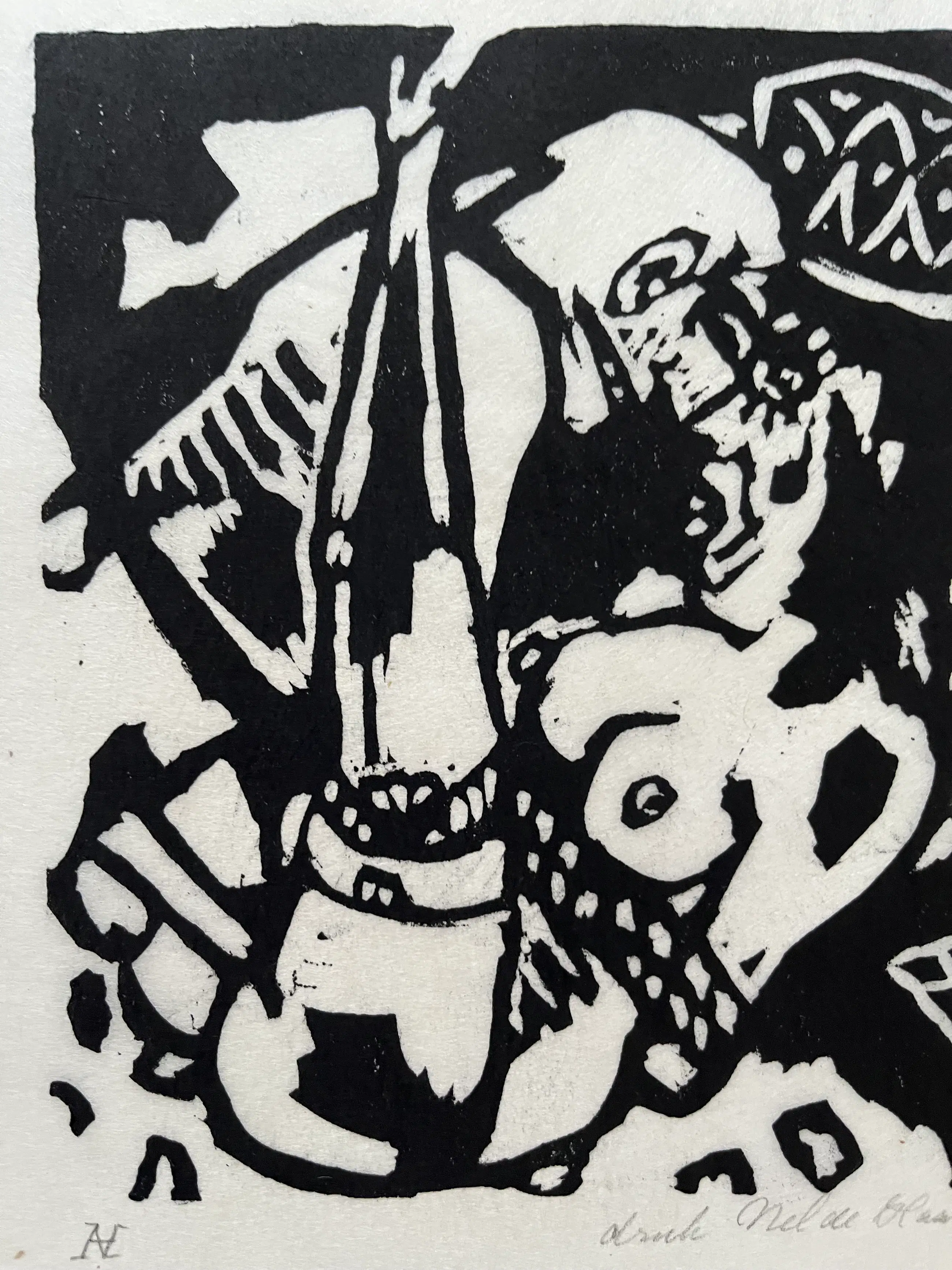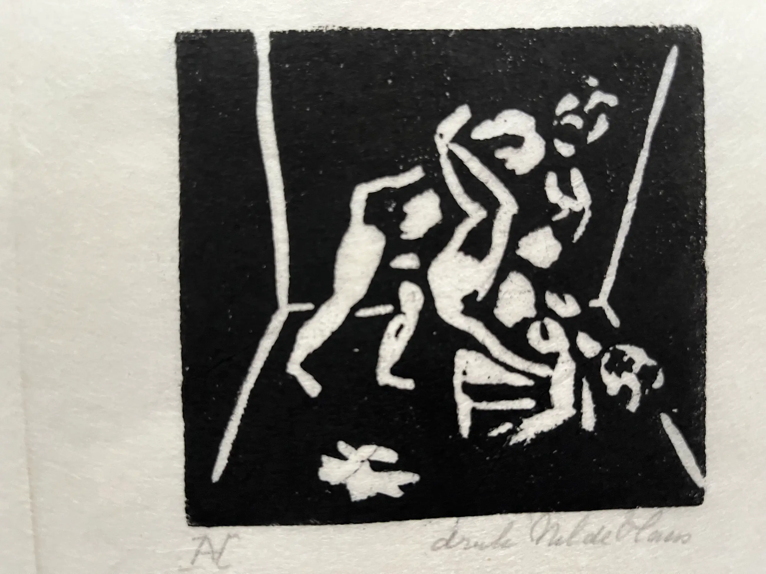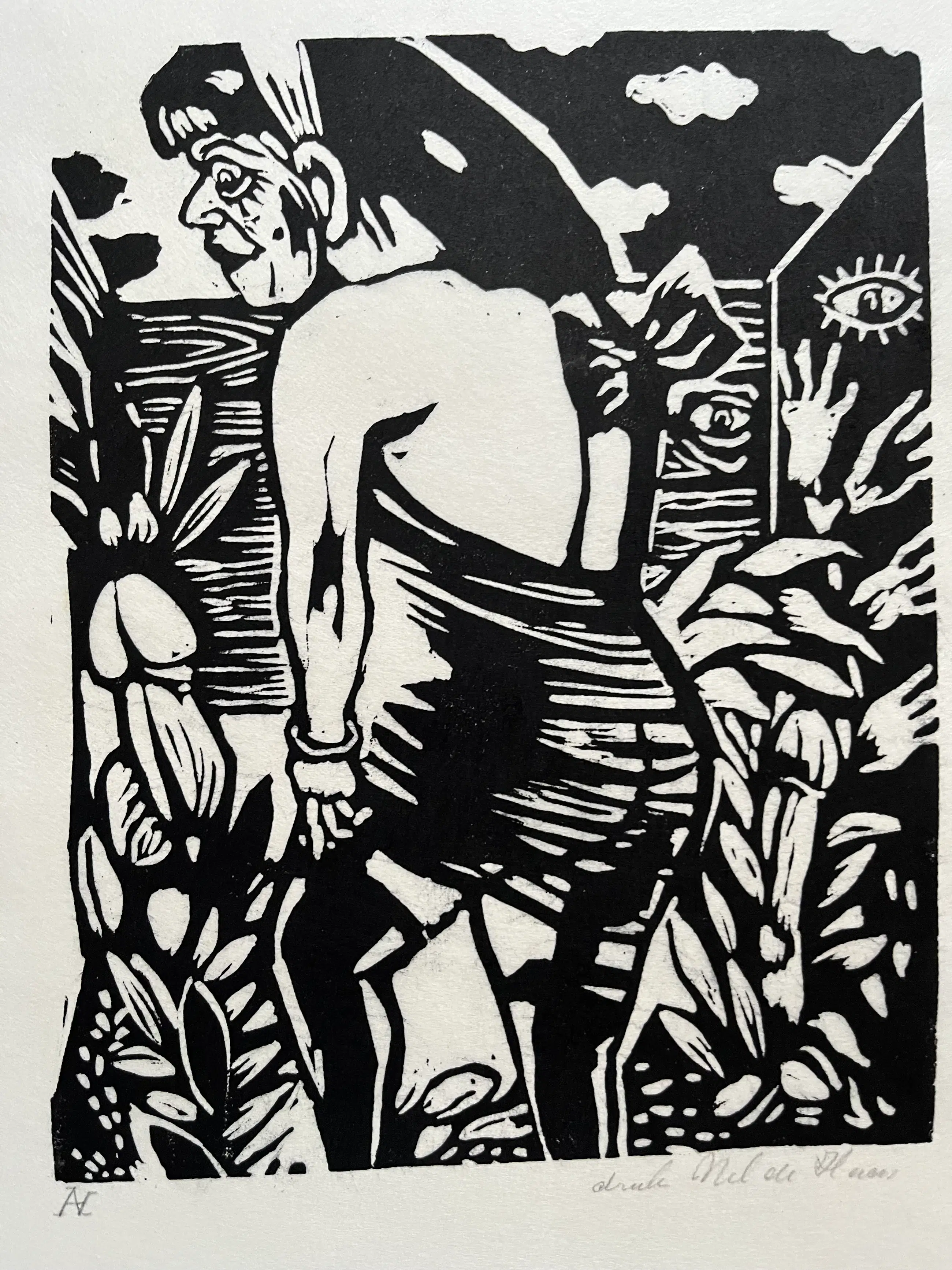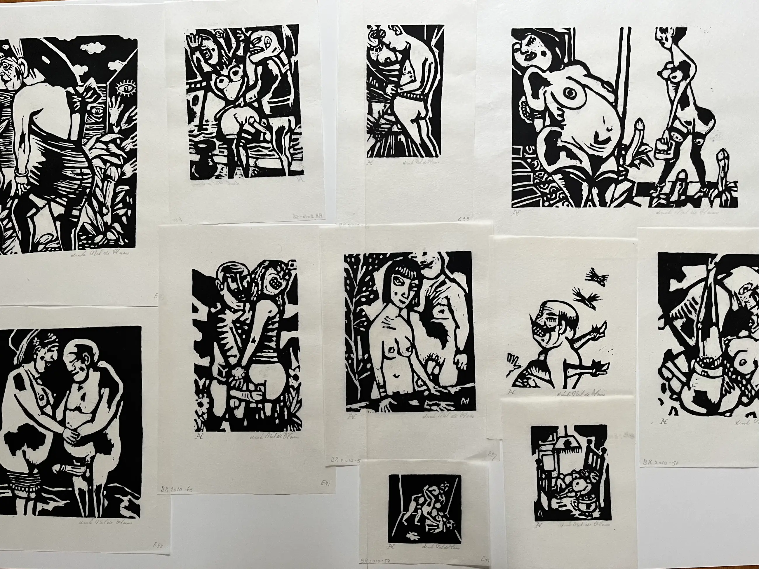Elf linodrukken, gedrukt door Nel de Haas op dun Japans papier. Linodrukken zijn van verschillende afmetingen en zitten los van elkaar. Grootste blad 30 x 35 cm. Beeld 20 x 25 cm. Kleinste blad 11,5 x 15 cm. Beeld 7,5 x 8 cm.