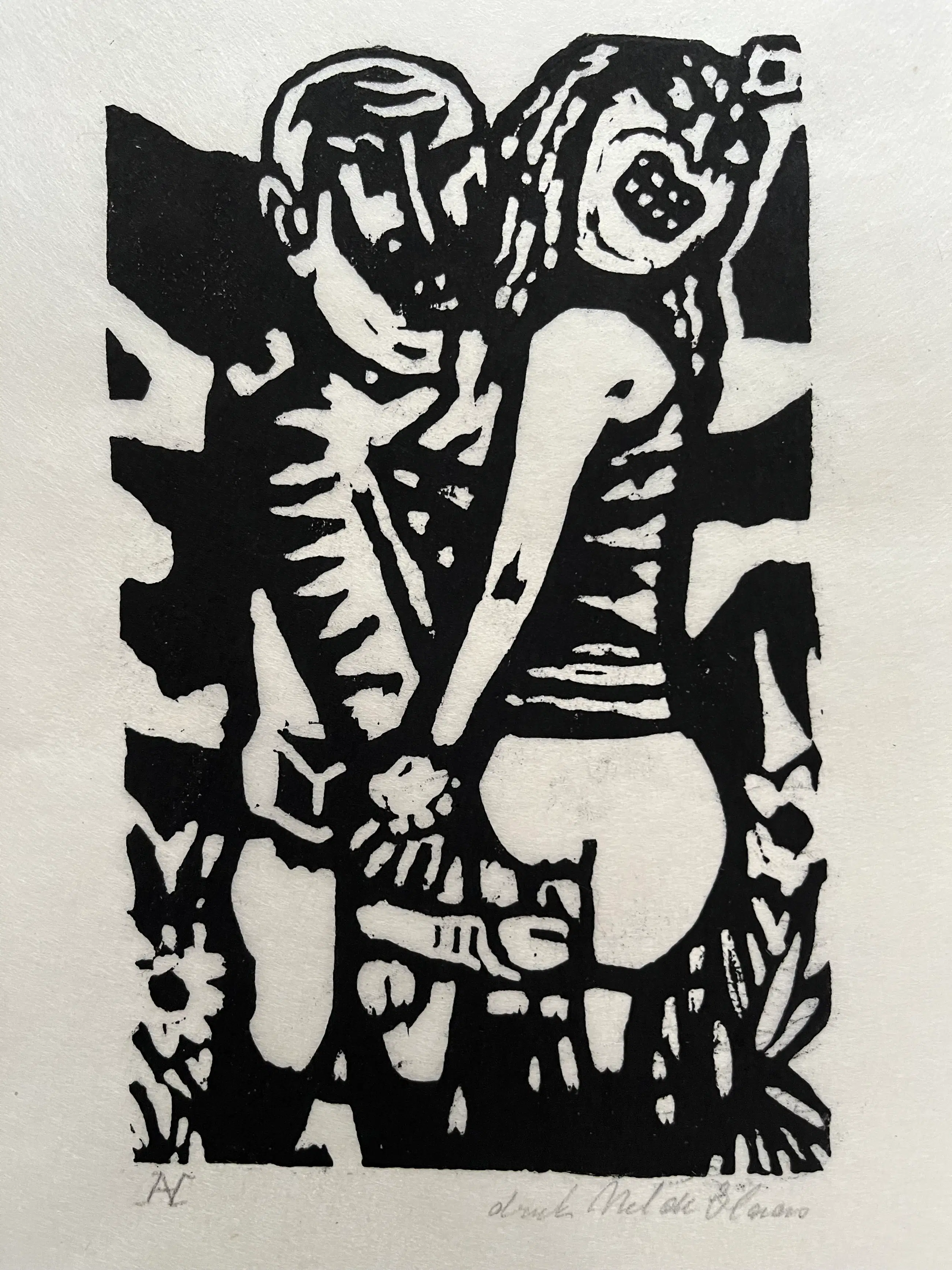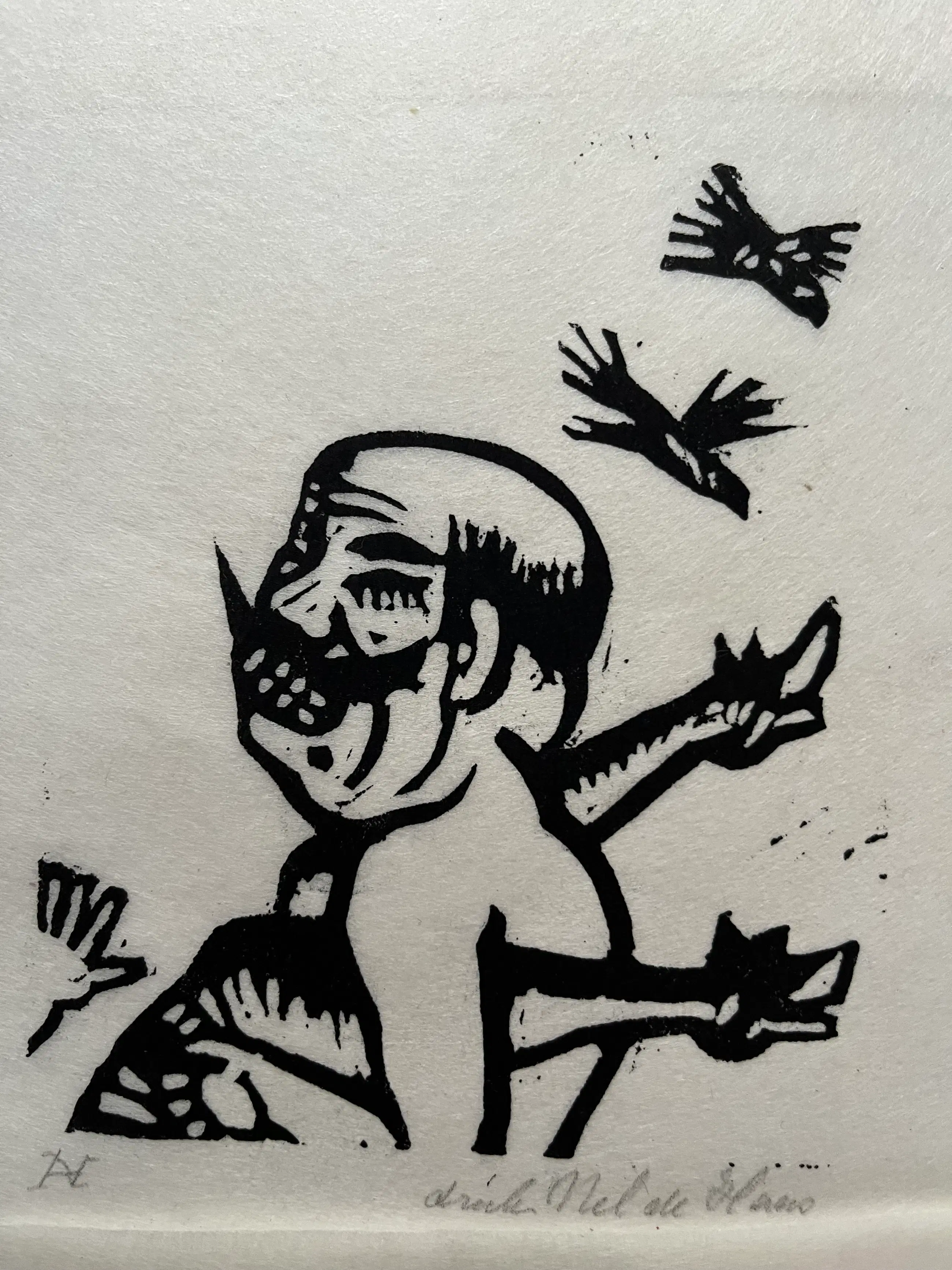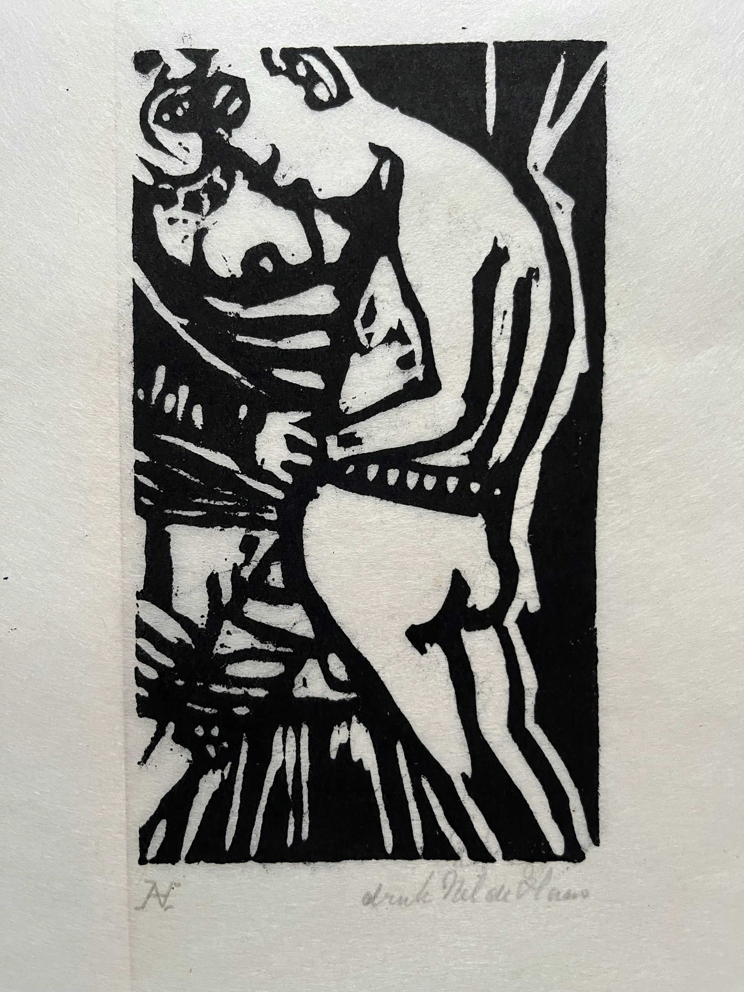 Elf linodrukken, gedrukt door Nel de Haas op dun Japans papier. Linodrukken zijn van verschillende afmetingen en zitten los van elkaar. Grootste blad 30 x 35 cm. Beeld 20 x 25 cm. Kleinste blad 11,5 x 15 cm. Beeld 7,5 x 8 cm.