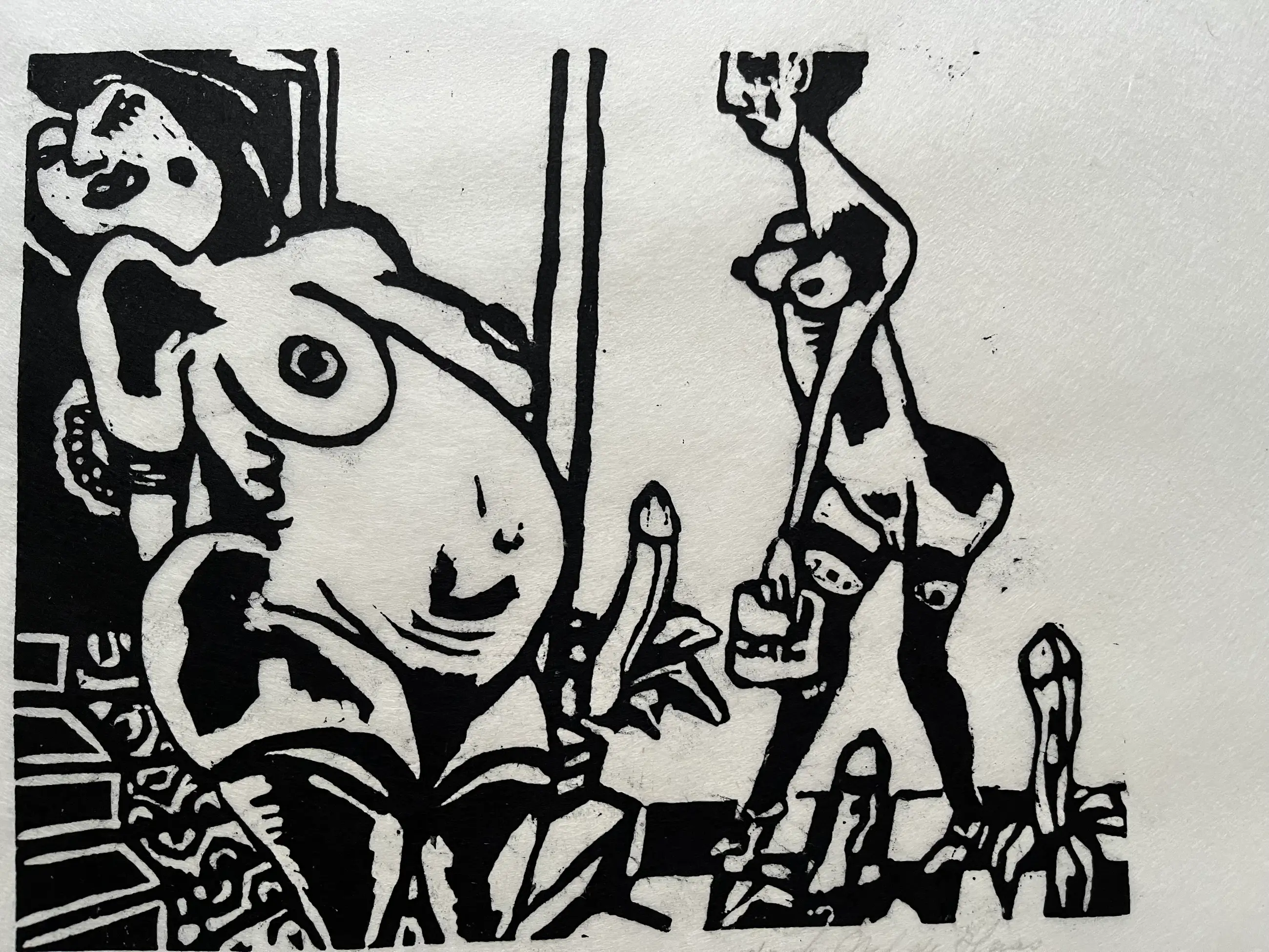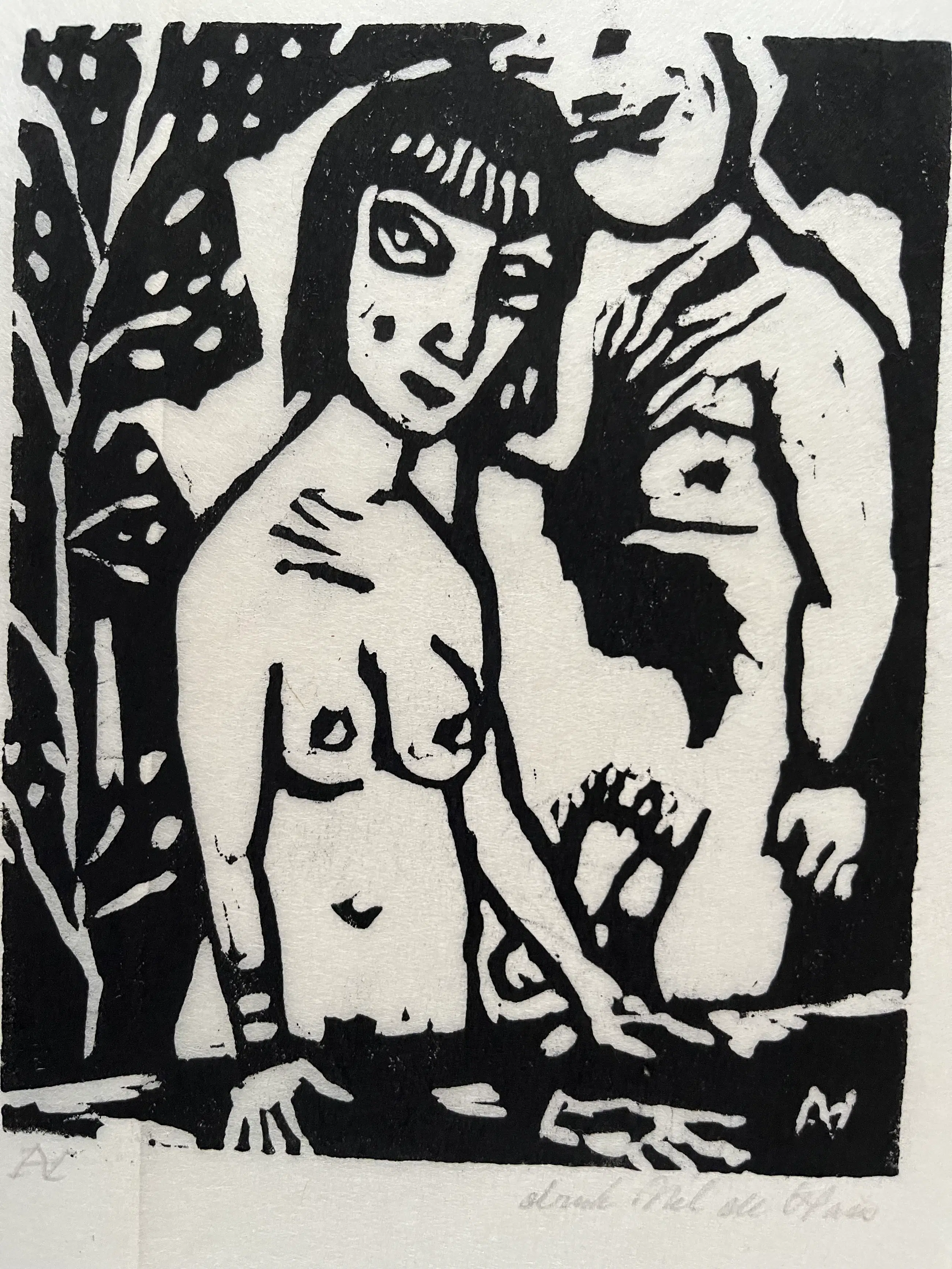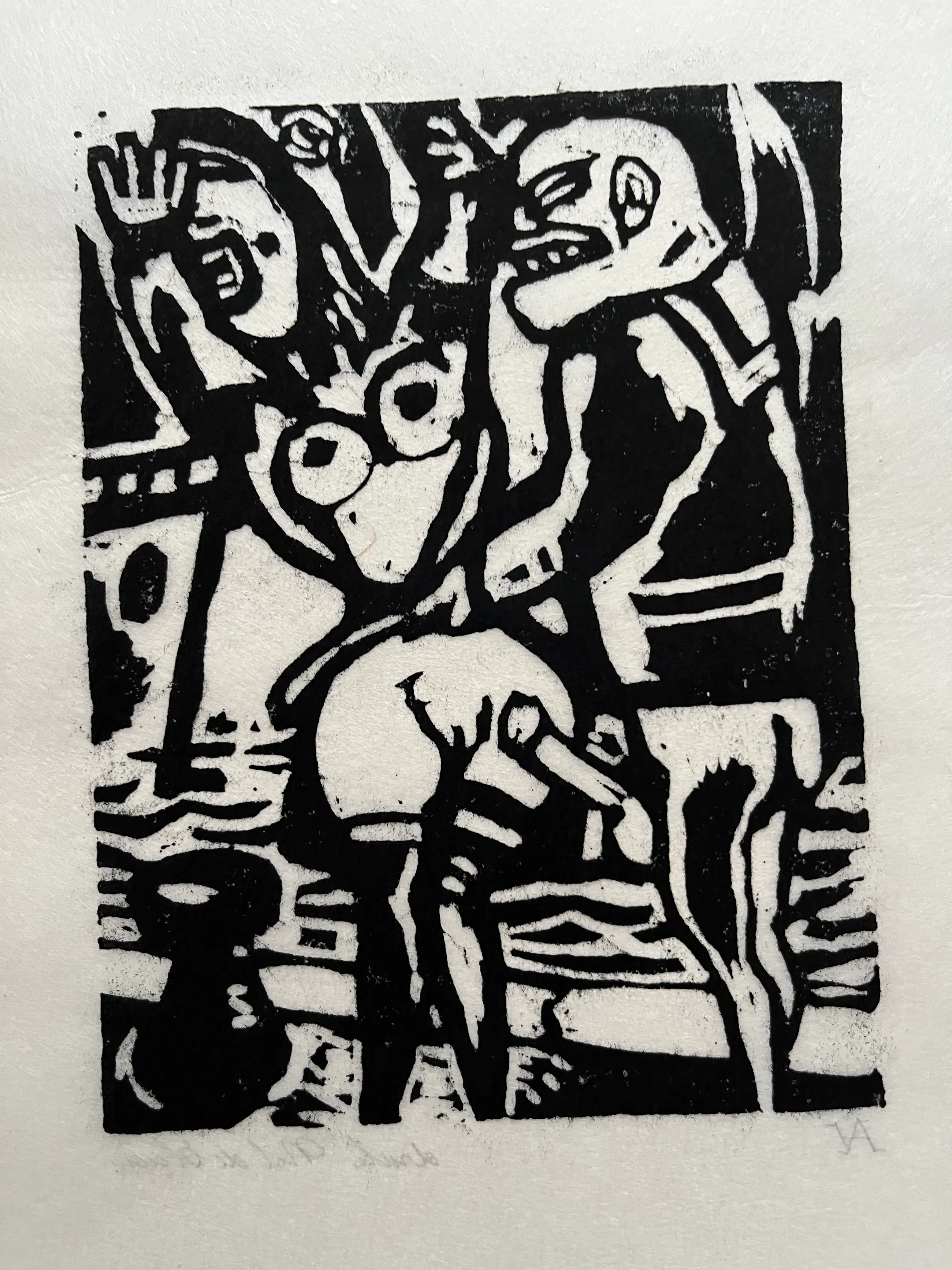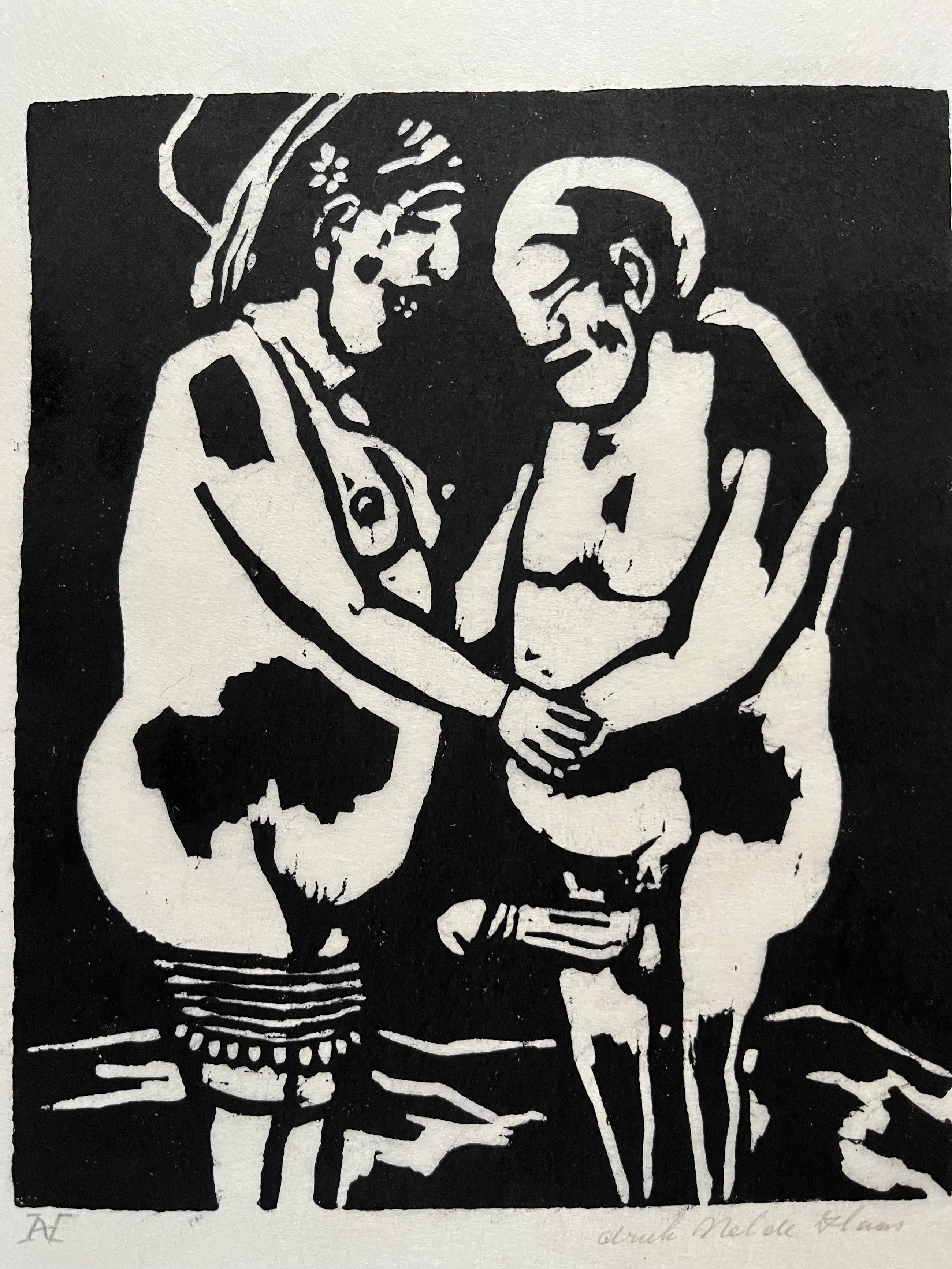 Elf linodrukken, gedrukt door Nel de Haas op dun Japans papier. Linodrukken zijn van verschillende afmetingen en zitten los van elkaar. Grootste blad 30 x 35 cm. Beeld 20 x 25 cm. Kleinste blad 11,5 x 15 cm. Beeld 7,5 x 8 cm.