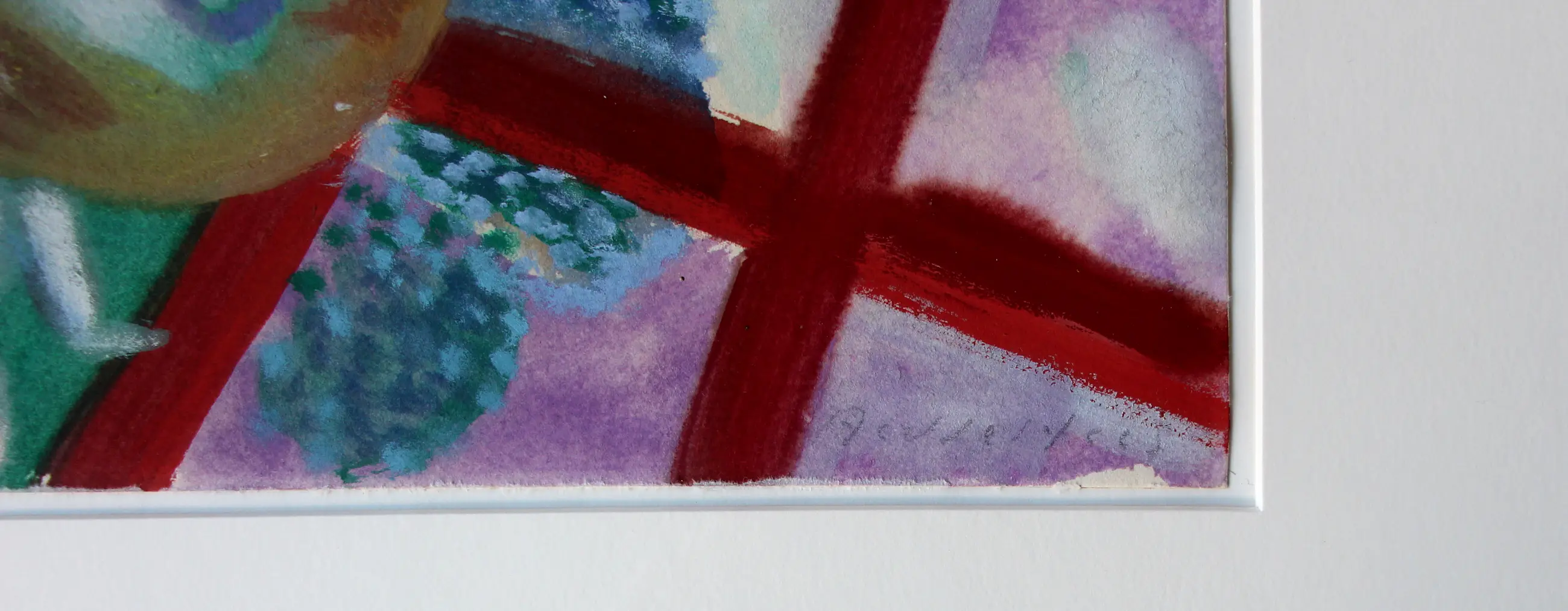 Lijsten: Beschadigingen aan lijsten worden niet beschreven. Indien een werk achter glas is ingelijsten het glas is kapot, zal dit wel vermeld worden. Bij foto's van ingelijste werken kan spiegeling zichtbaar zijn.