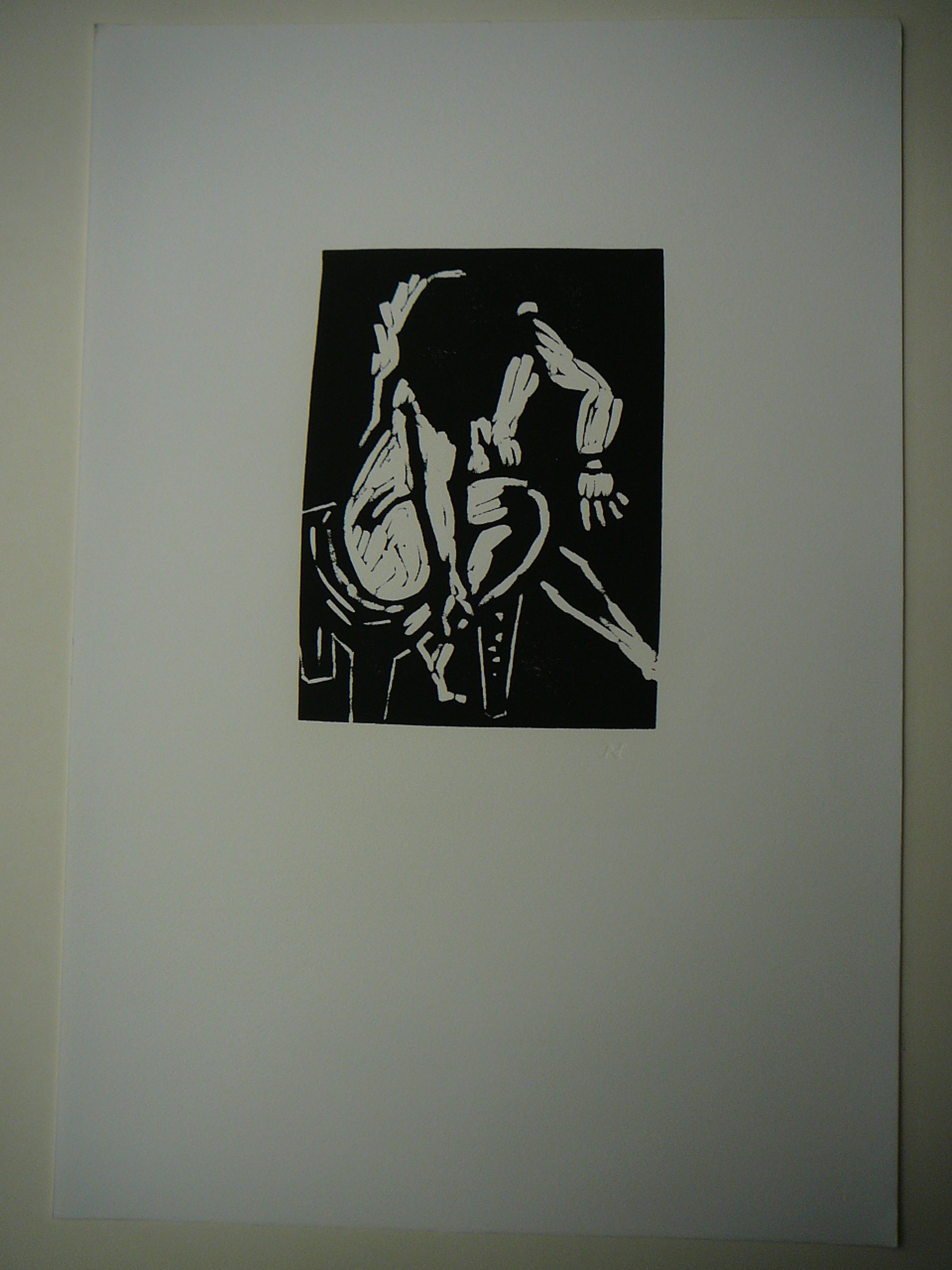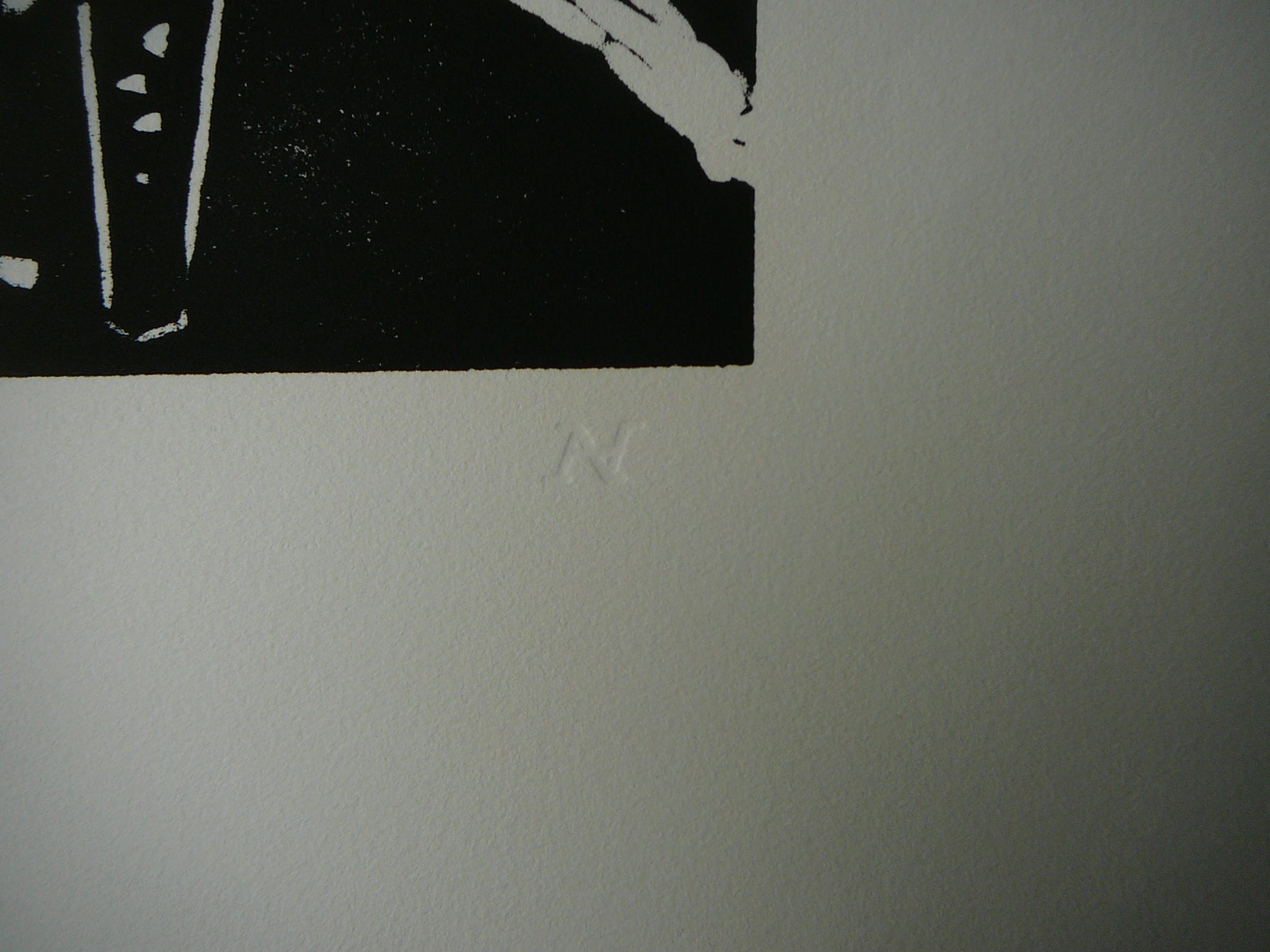 Zeer mooie linosnede van Aad de Haas Met blindstempel Nel de Haas afm papier H 56 Br 38 cm