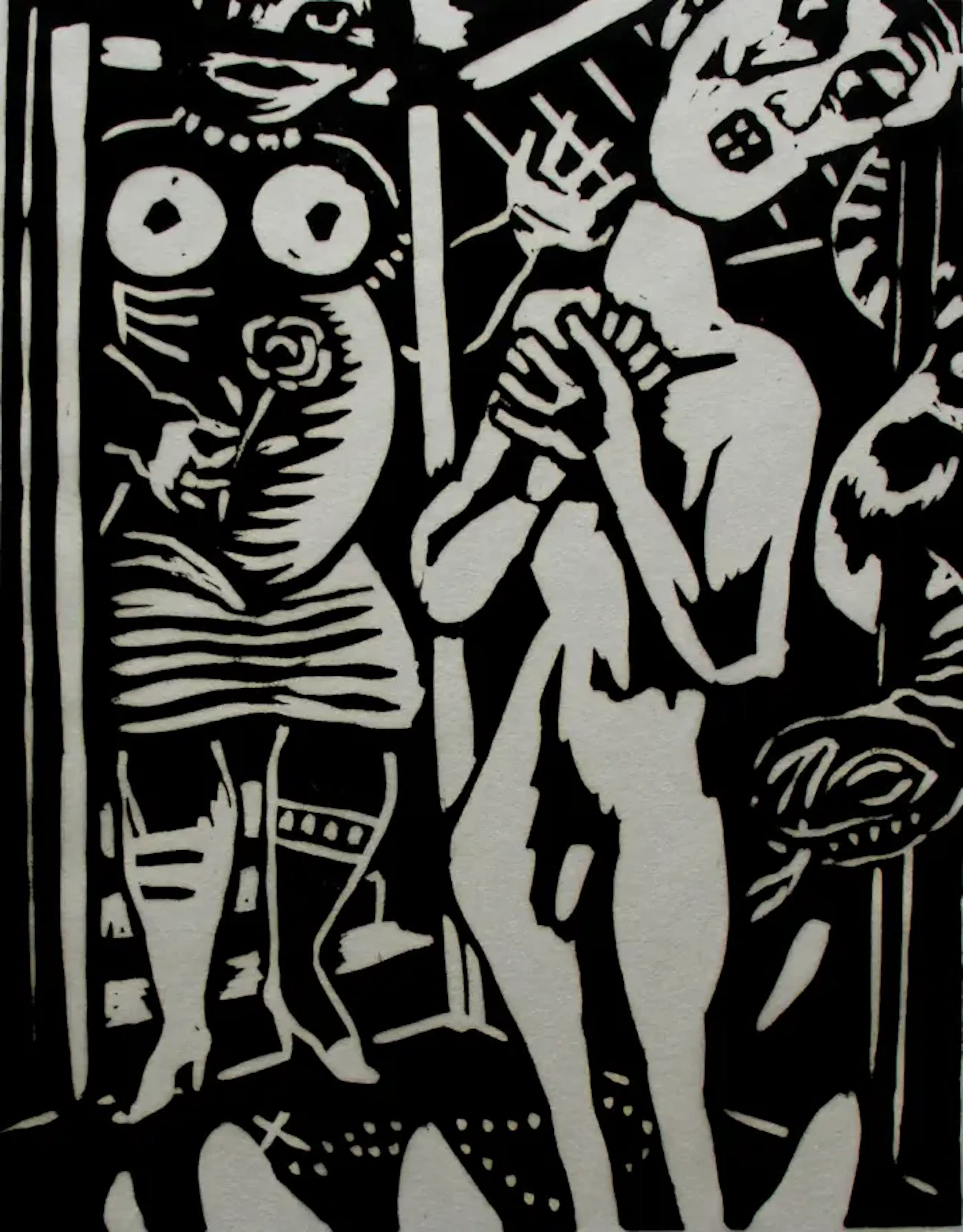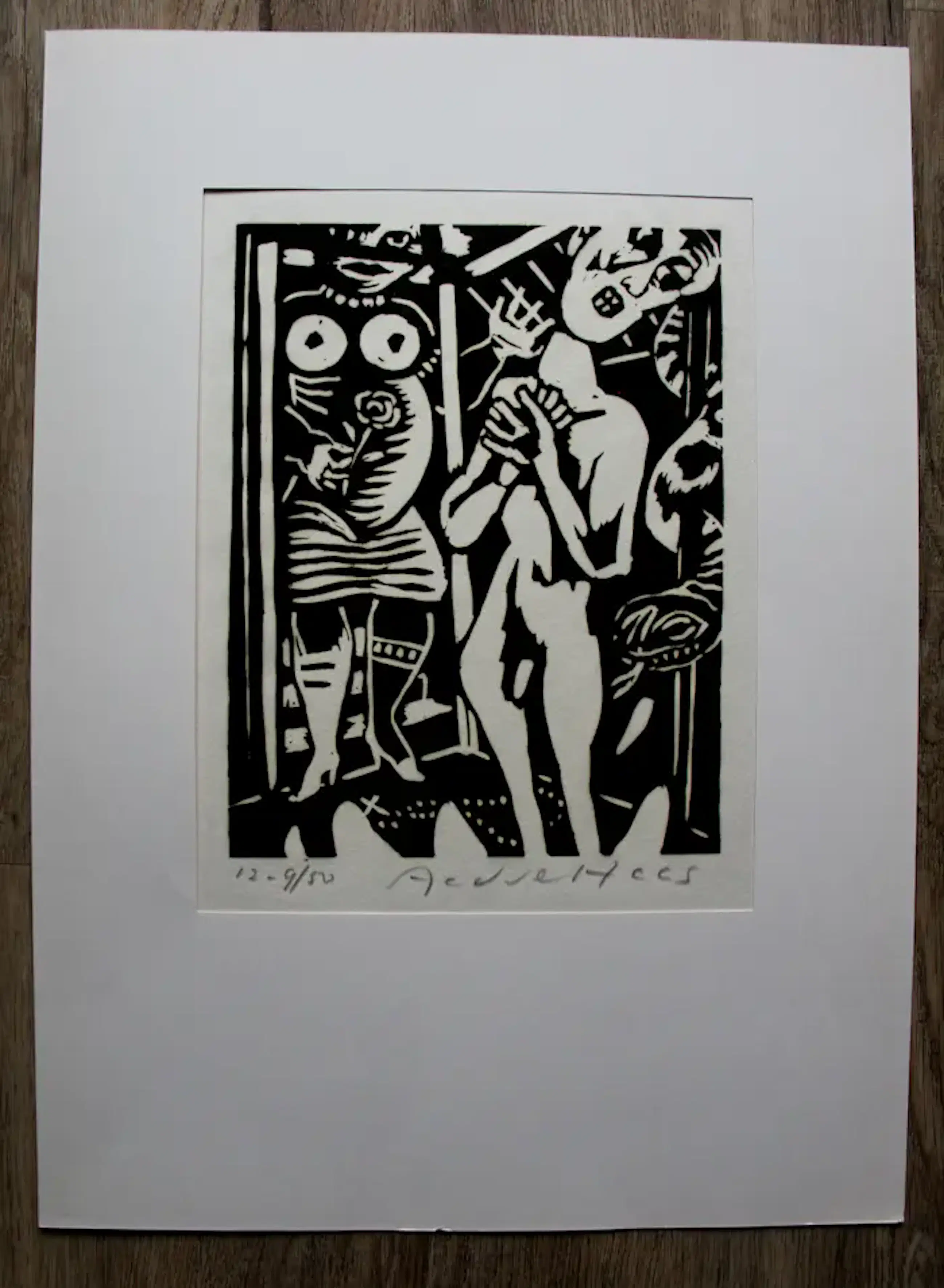 Linosnede van Aad de Haas. Titel: Zwart-wit. Jaar: 1966. Oplage: 9/50. Nummer: 3. Afmetingen incl passe-partout: H55 x b40cm. Afmetingen voorstelling: H28.5 x b22cm. Het werk is rechtsonder gesigneerd door de kunstenaar. De authenticiteit van het aangeboden werk wordt volledig gegarandeerd. Een certificaat van echtheid kan, op aanvraag, worden gemaild.