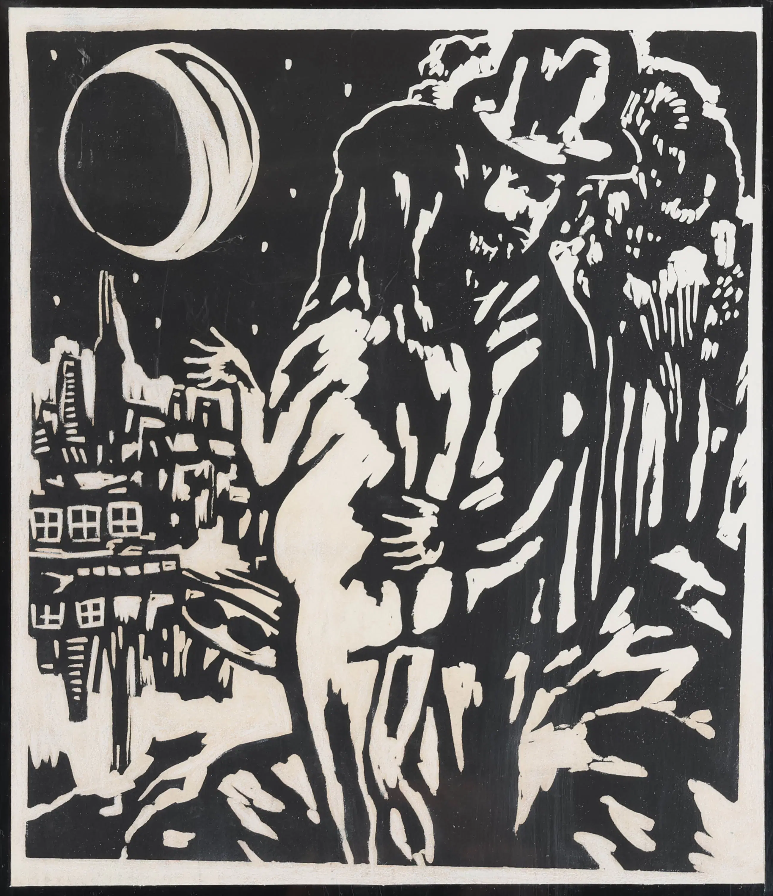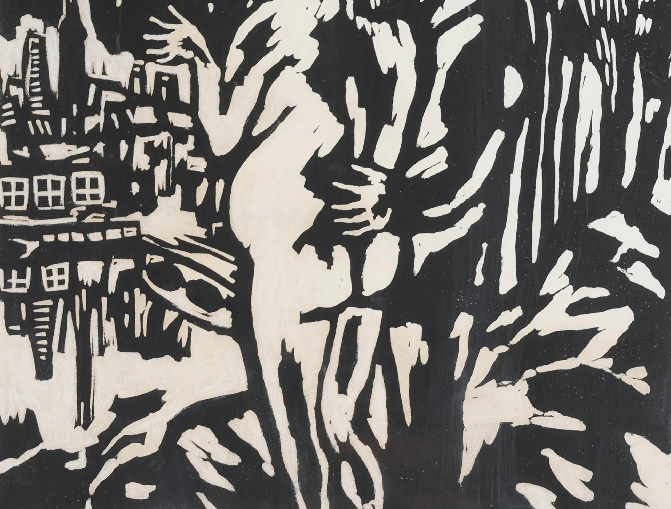 Lino Maastricht In zijn linoleumsneden ''Maastricht'' komt De Haas’ stijl helder naar voren. Met scherpe sneden en krachtige contouren vangt hij het karakter van de stad in een vereenvoudigde, expressieve vormentaal. Het sterke spel van licht en donker geeft het werk dynamiek en dramatiek, terwijl de architectuur en sfeer van Maastricht herkenbaar blijven.
