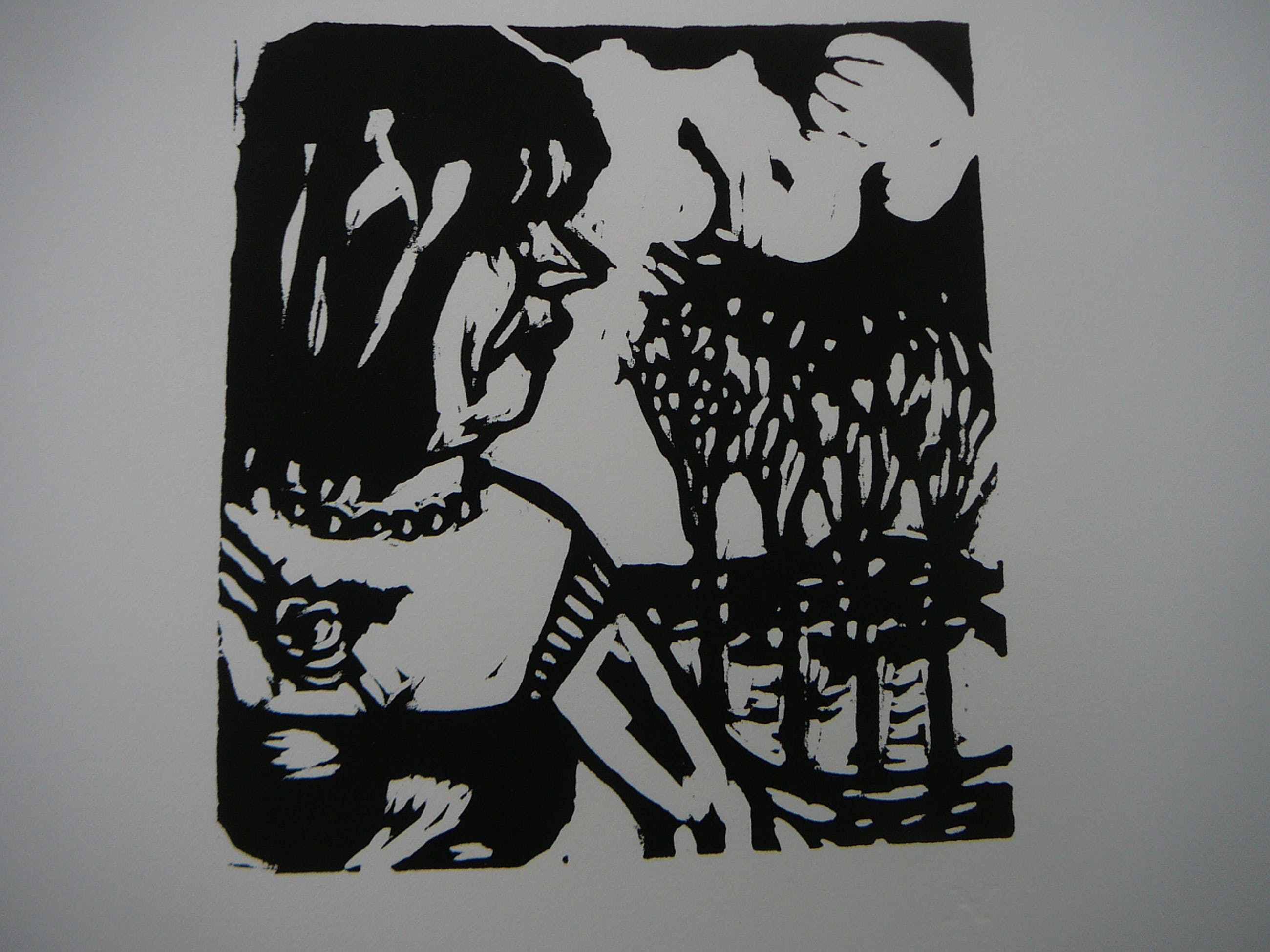 Zeer mooie linosnede van Aad de Haas Met blindstempel Nel de Haas afm papier H 56 Br 38 cm