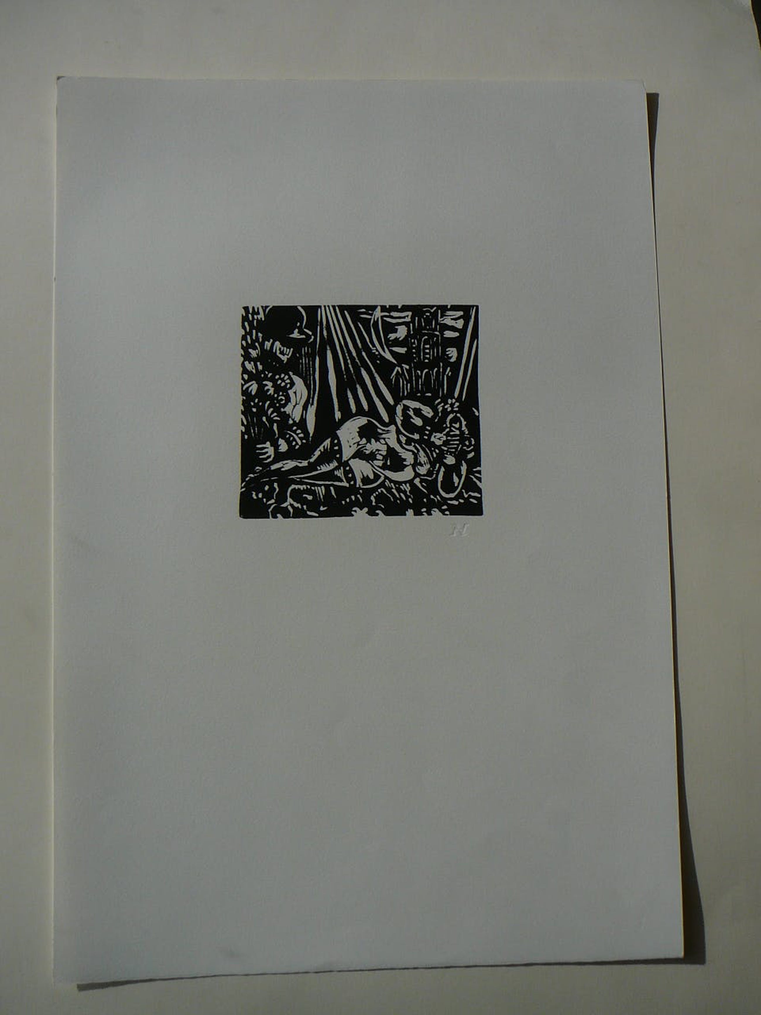 Zeer mooie linosnede van Aad de Haas Met blindstempel Nel de Haas afm papier H 56 Br 38 cm