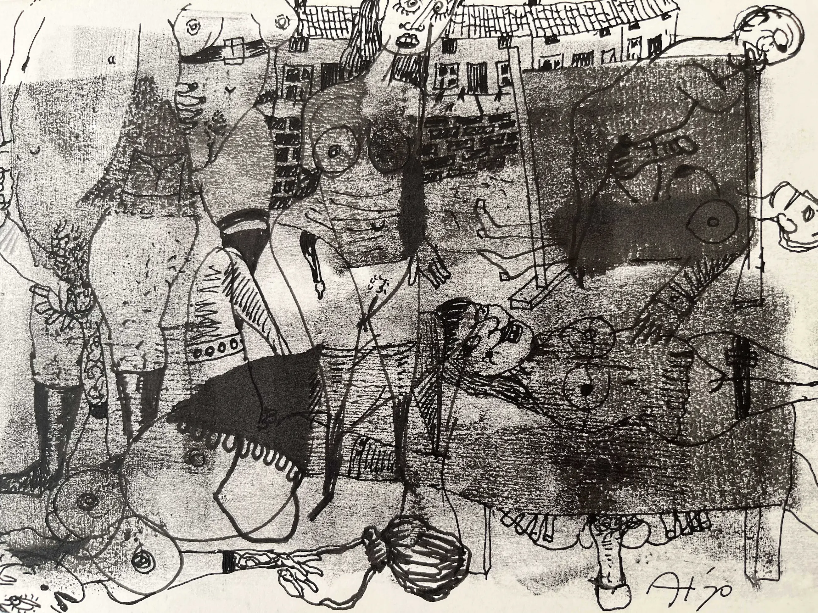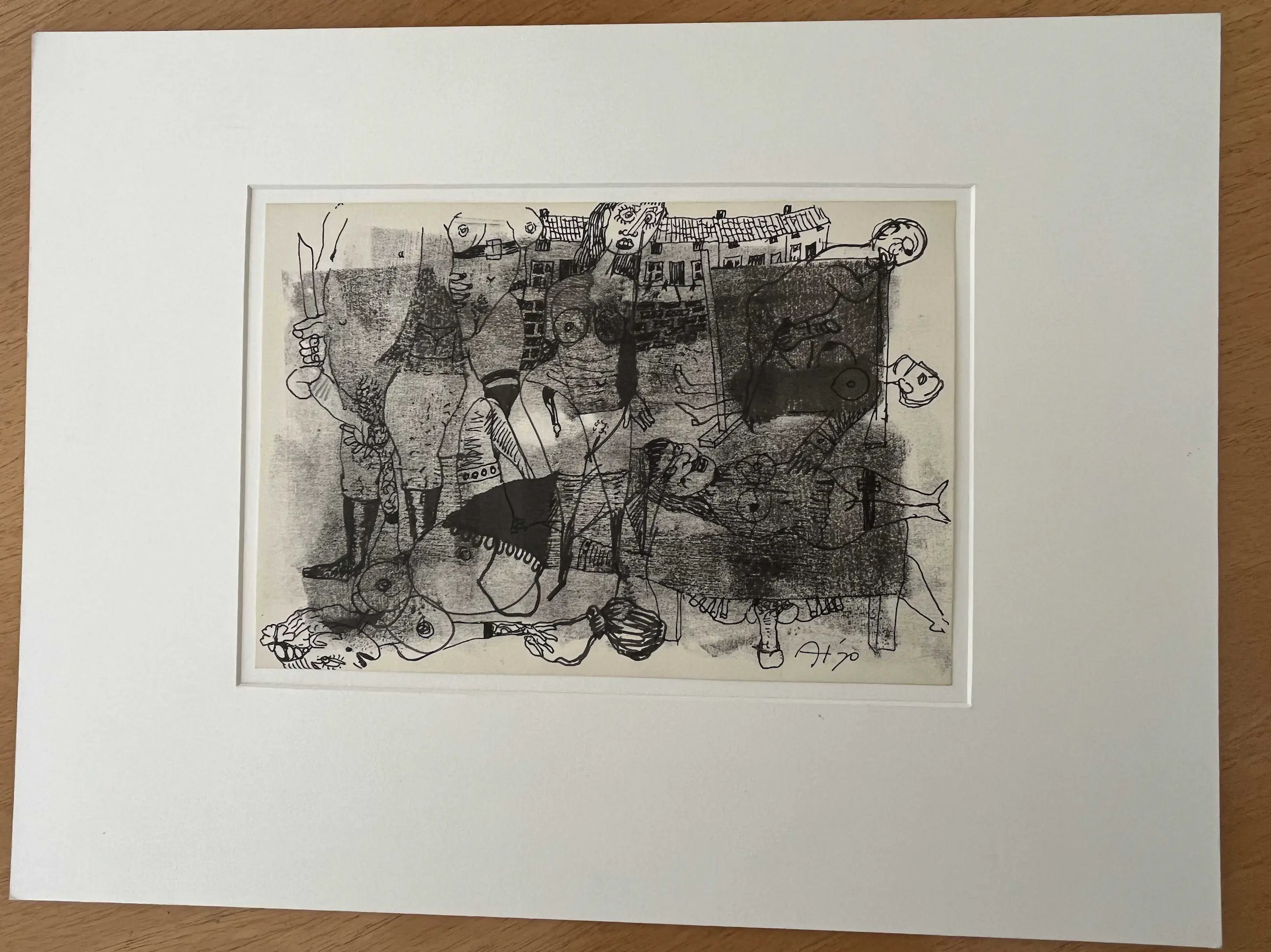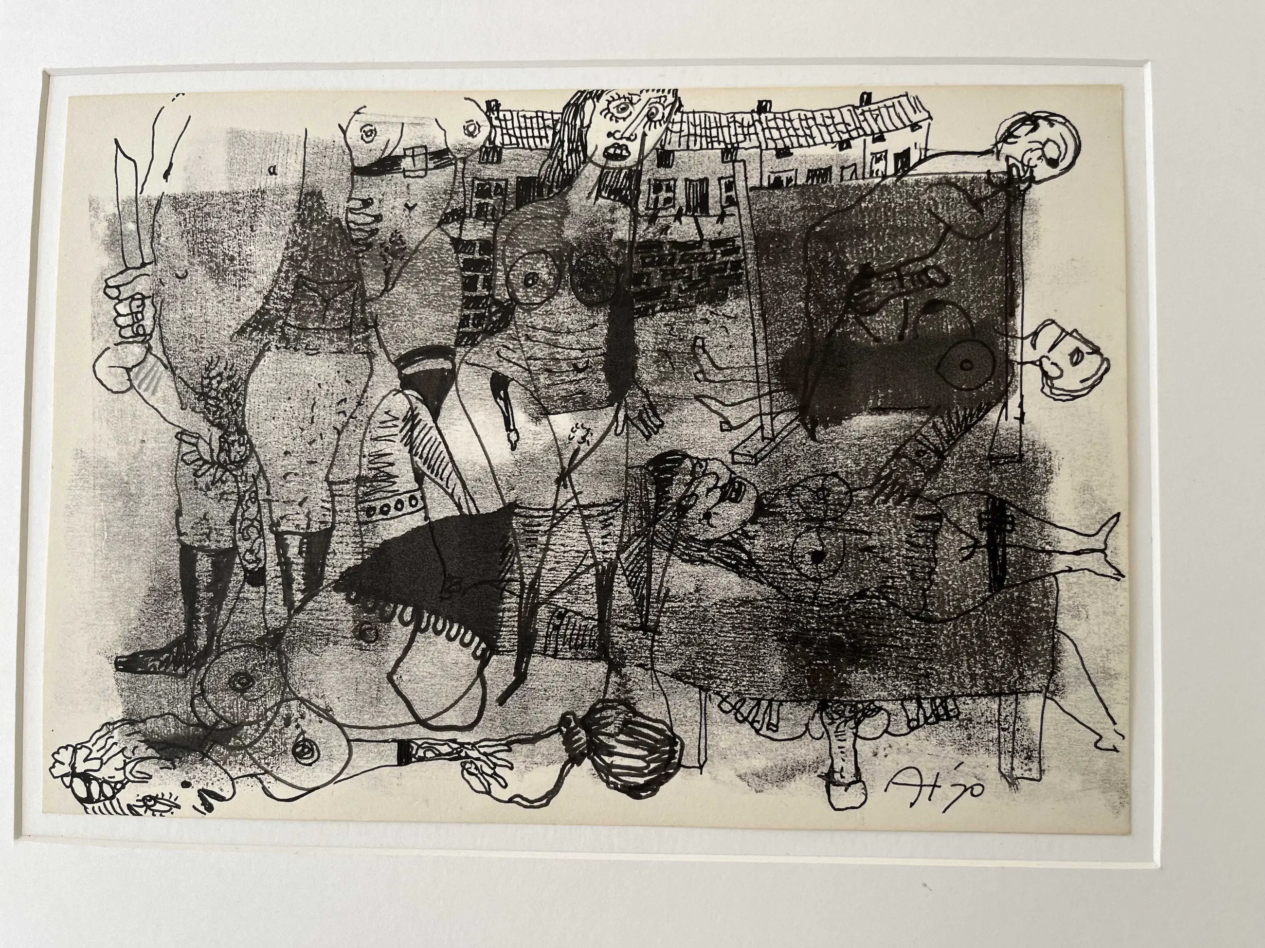 Gewaagde ets met een orgie als onderwerp. Ets is niet genummerd. Komt uit een goede collectie. Ets is geplakt in passe partoute. Ziet er perfect uit. Afmeting afbeelding 16 x 23 cm. Inclusief passe partoute 30 x 40 cm. Gesigneerd met initialen rechtsonder