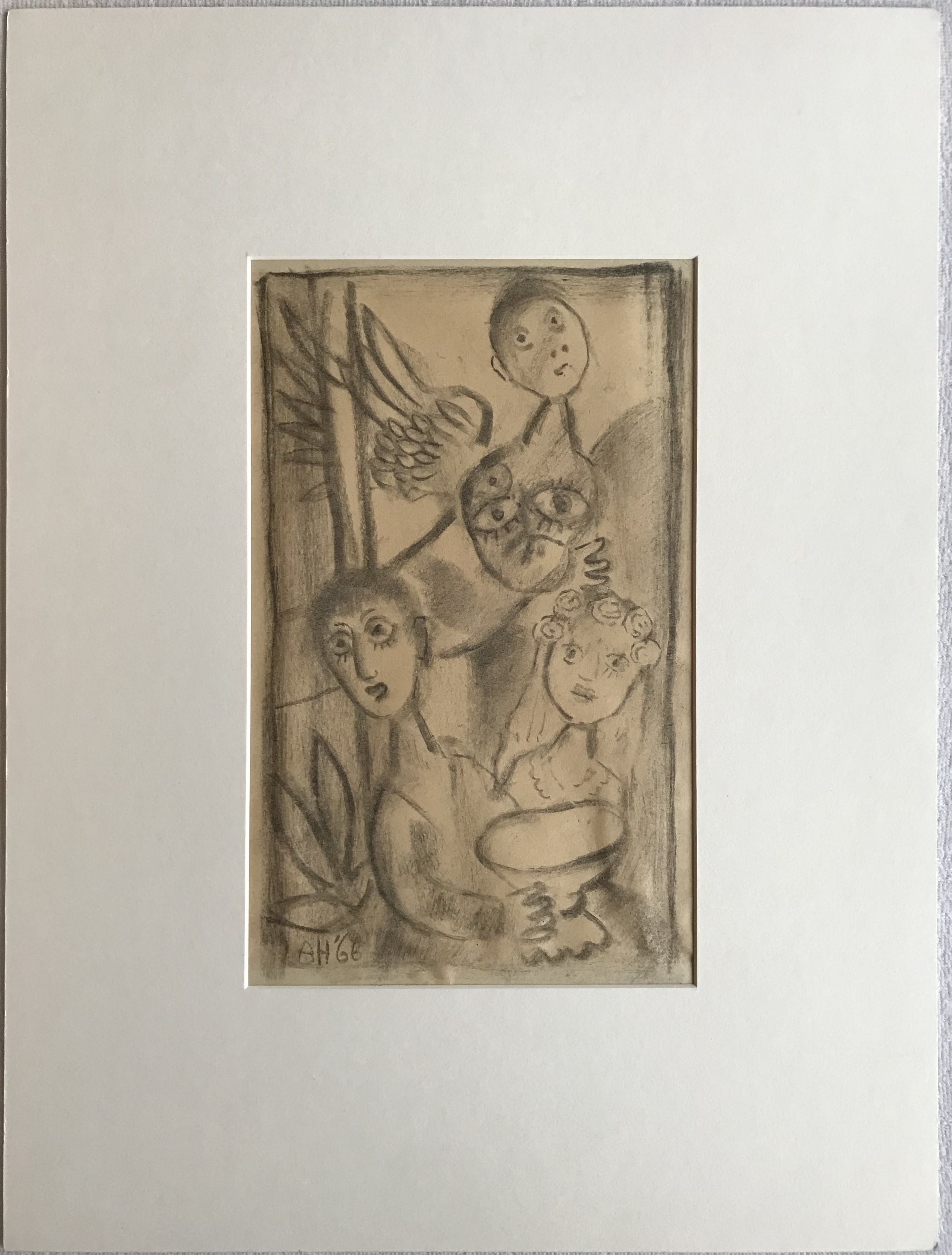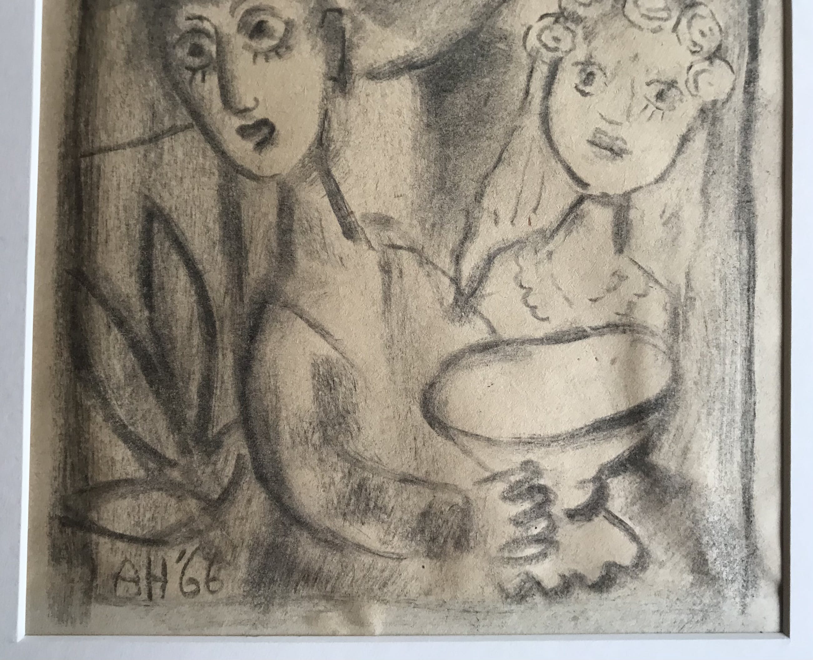 Tekening in goede staat. Papier is wat vergeeld. Zit nog strak in passe-partout.