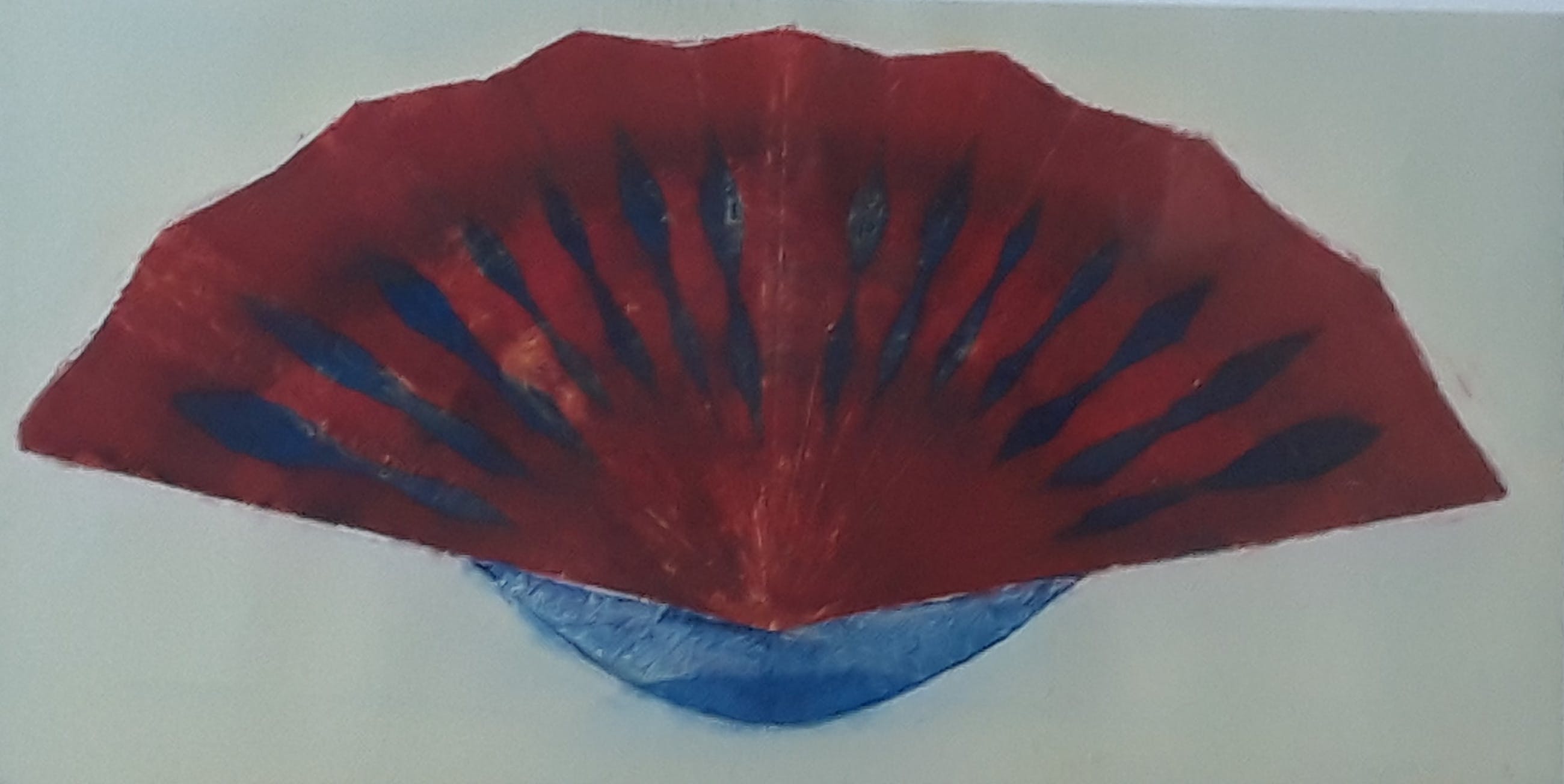 Gemengde techniek 'Red fanning blues' van Aafke Kelly.
