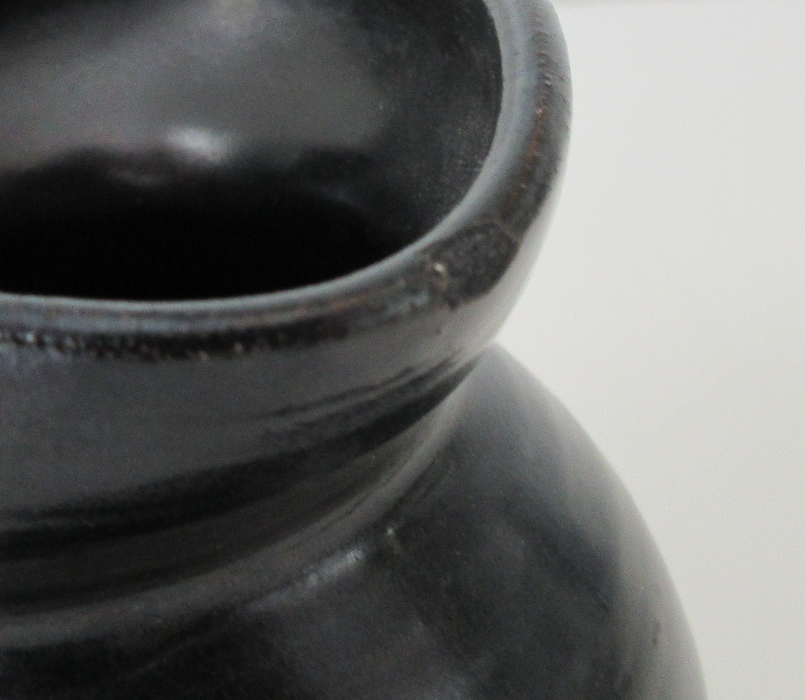 Mooie en zeldzaam zwart aardewerken kan model 22 van Klinkenberg uit Zeist. Heeft een chipje op de tuit en een glazuur flinter op de rand verder in prima conditie. Aan de onderzijde gemerkt Z en genummerd 22.