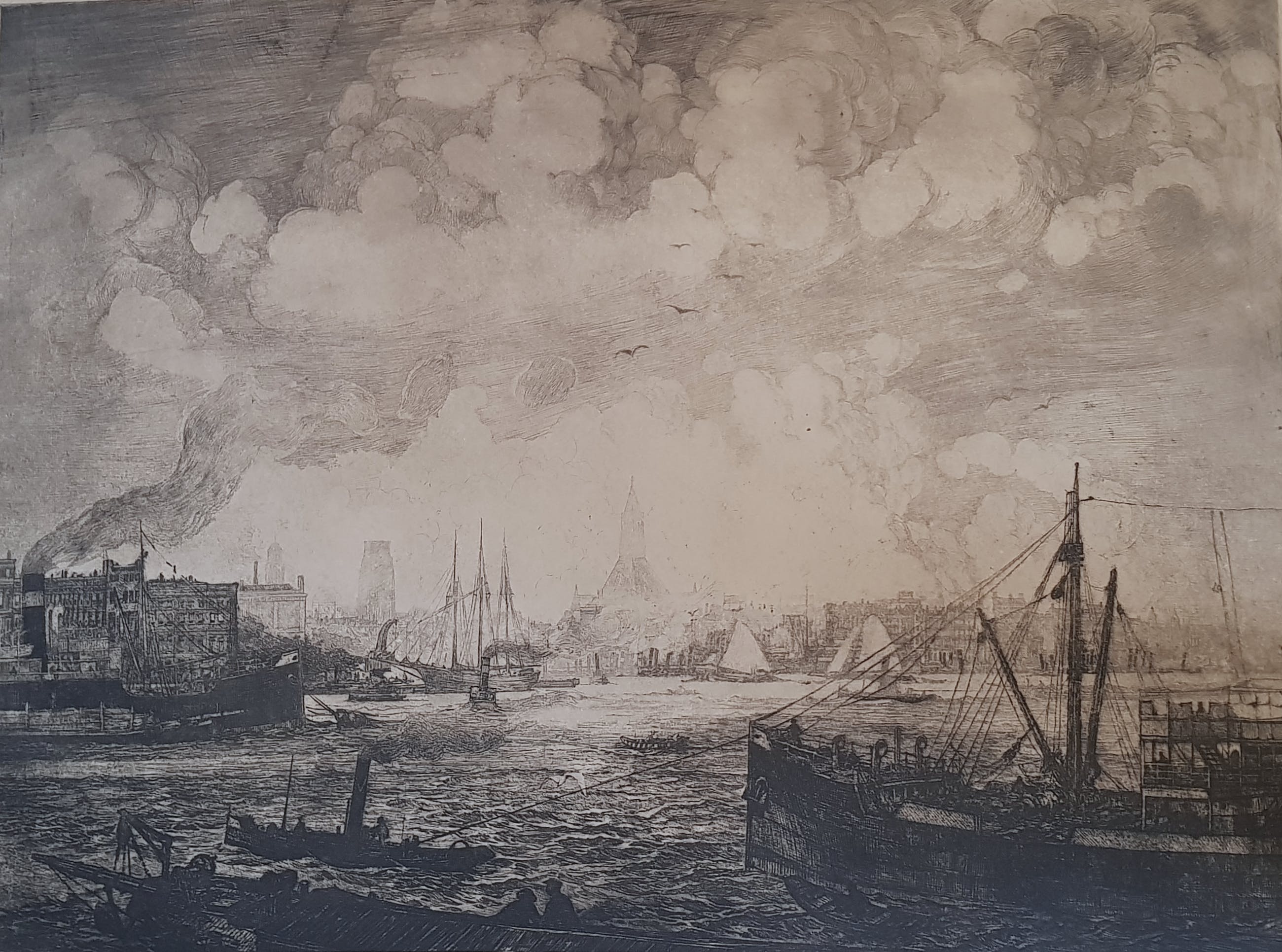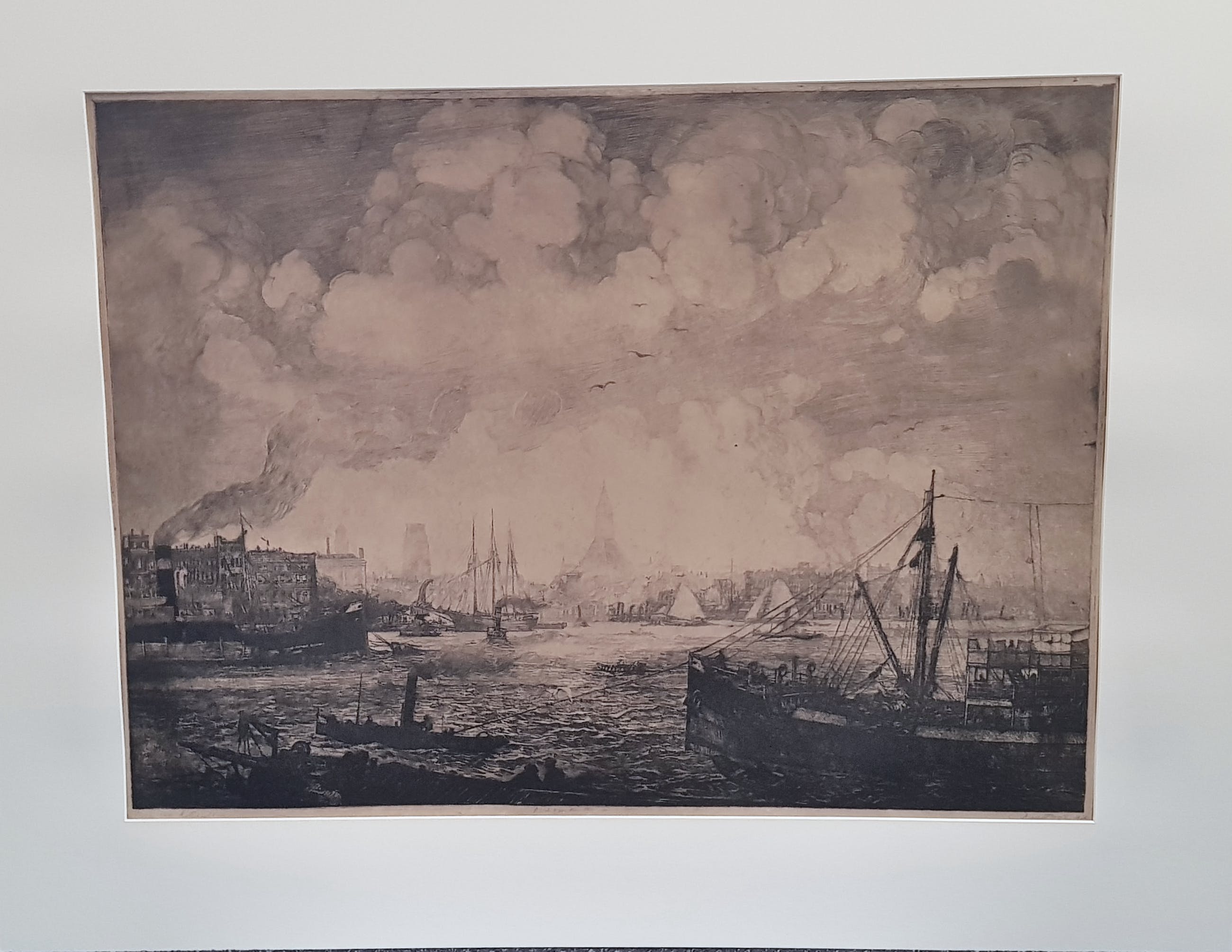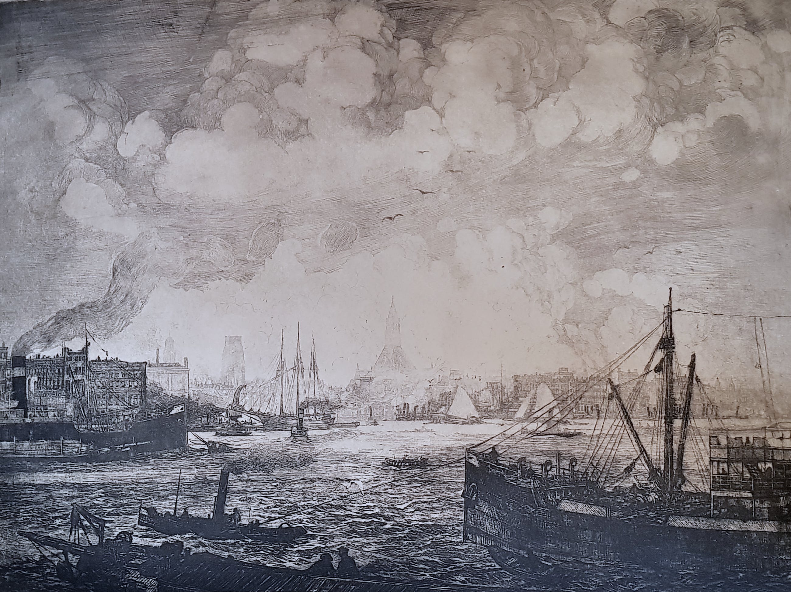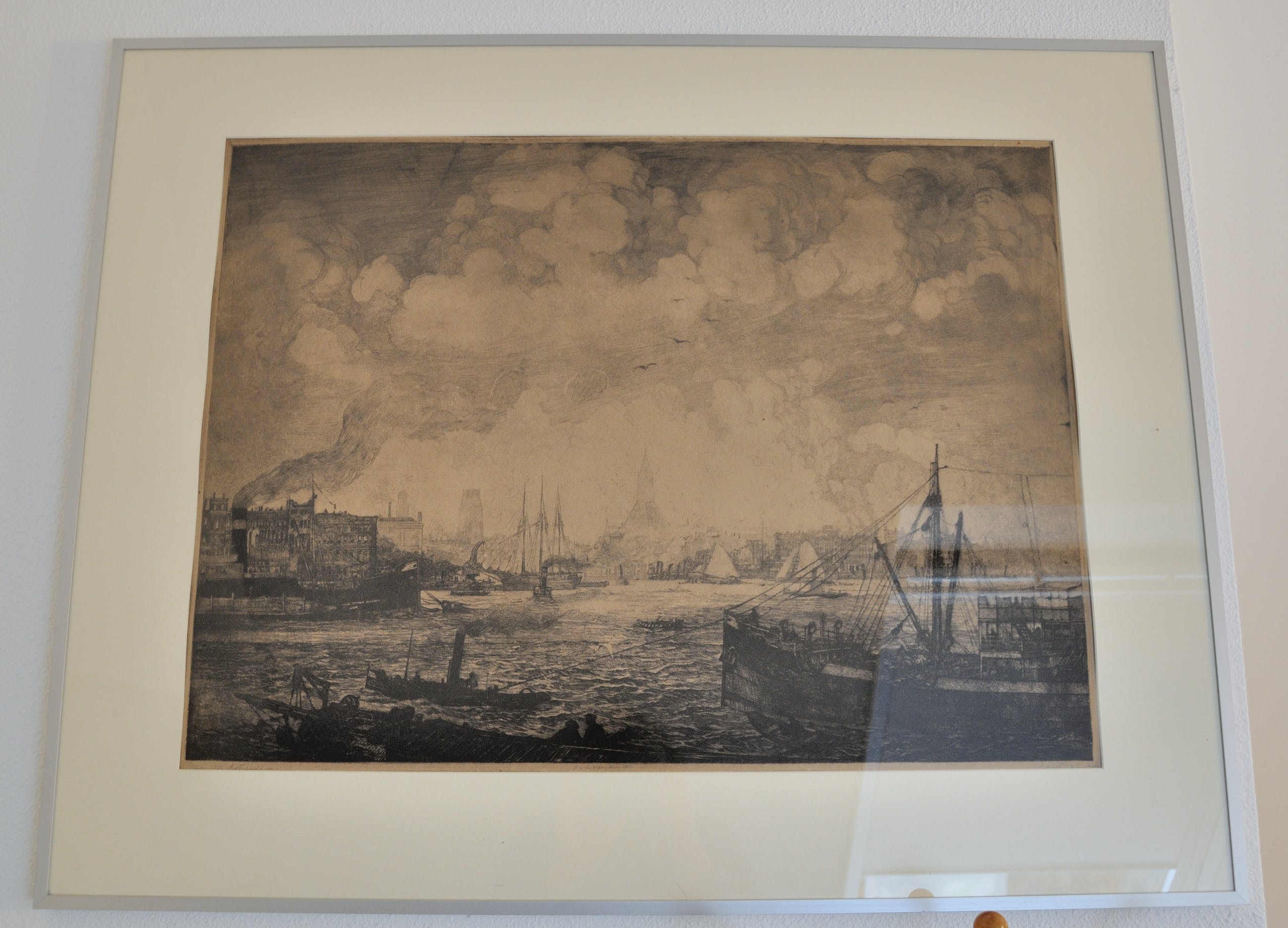 dan één scheepvaartkantoor in Rotterdam de directiekamer sierde. De ets maakt
