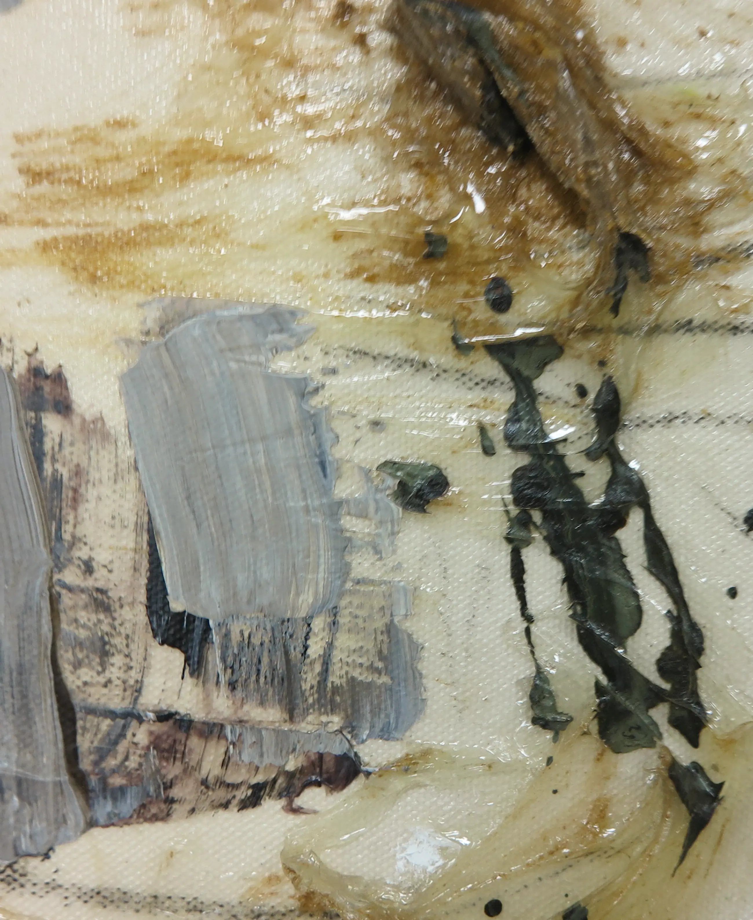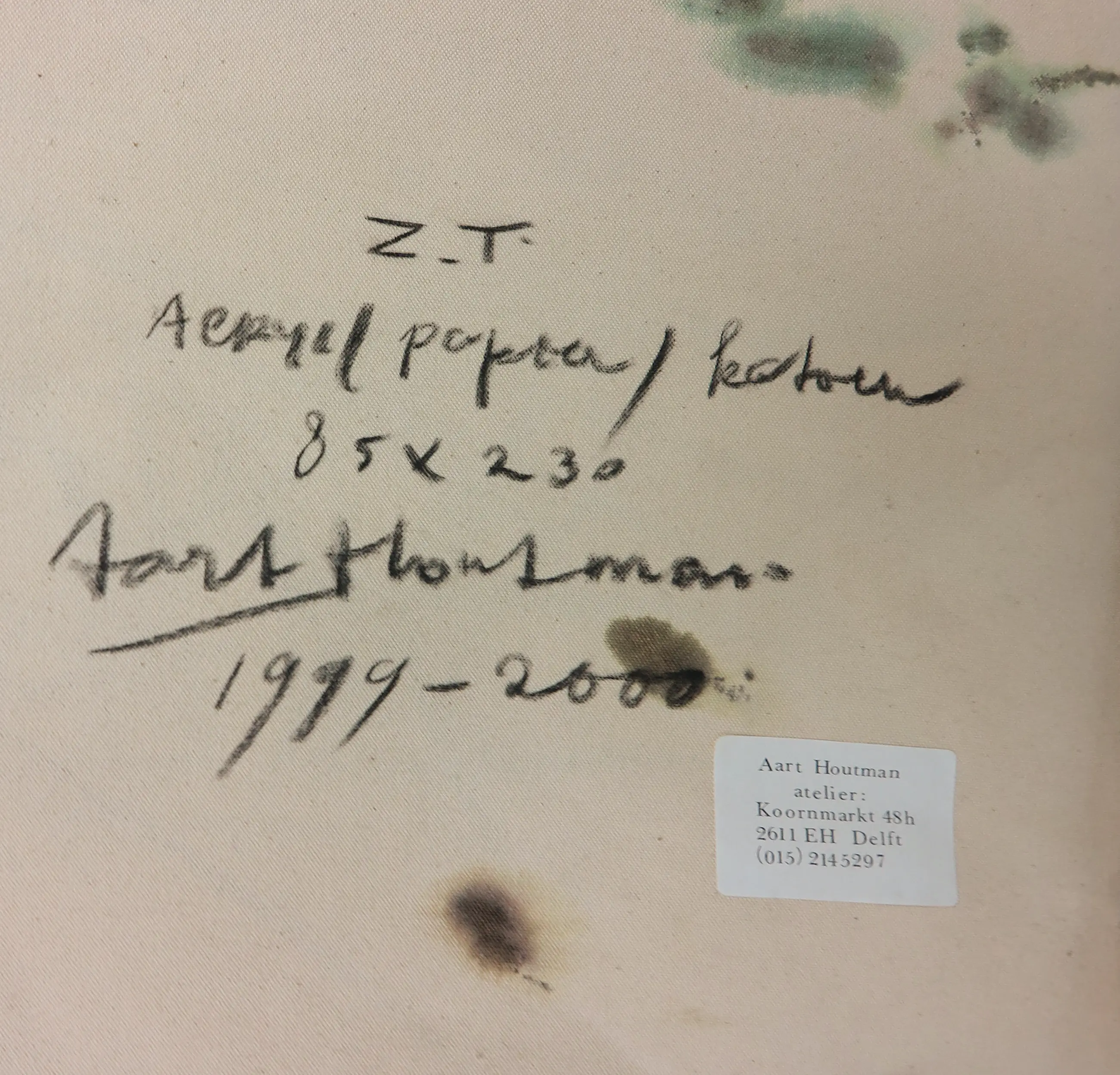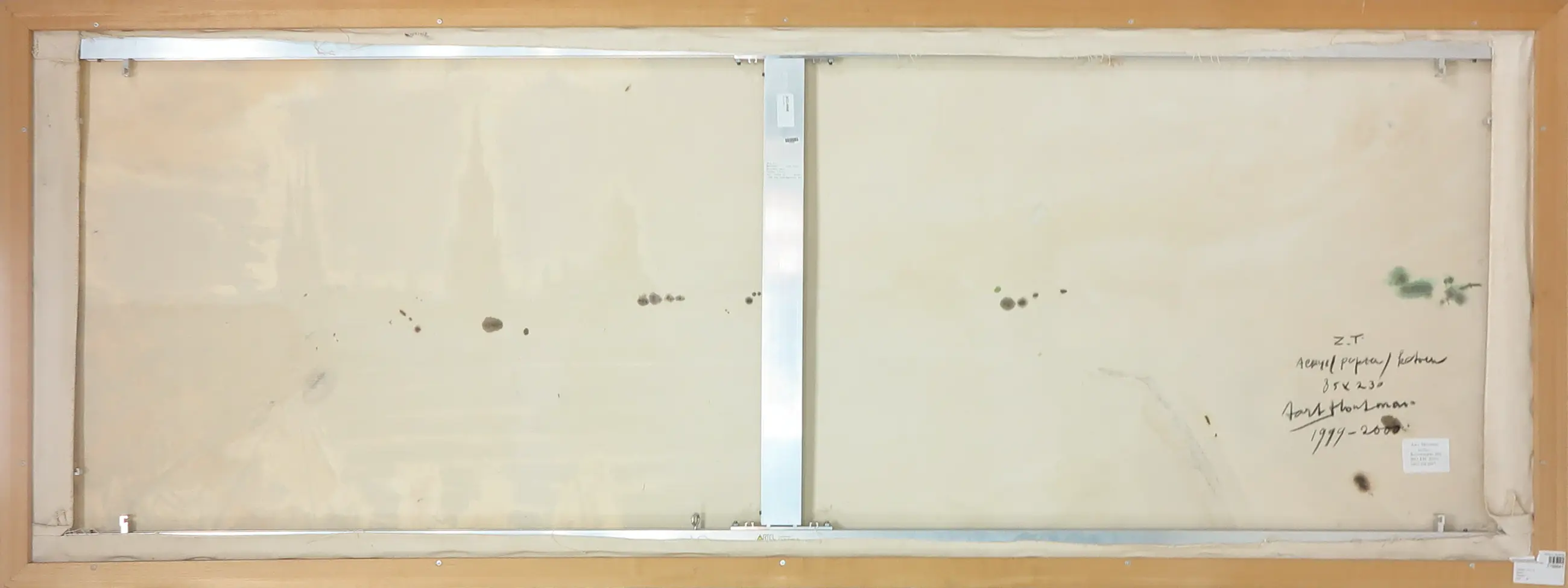 | Het werk is wat vuil en heeft wat lichte vegen aan de randen van het doek. | |