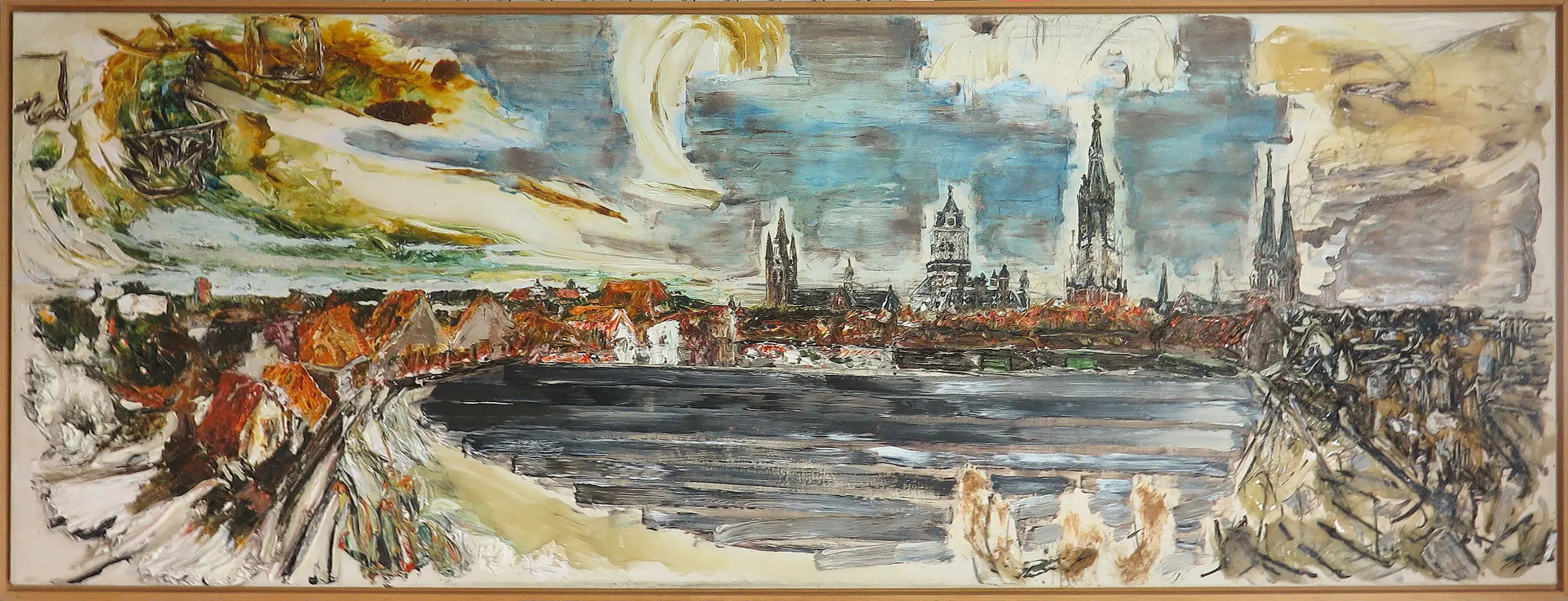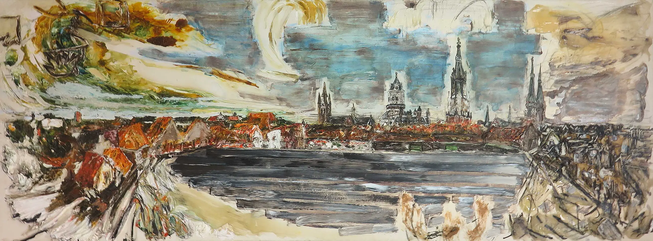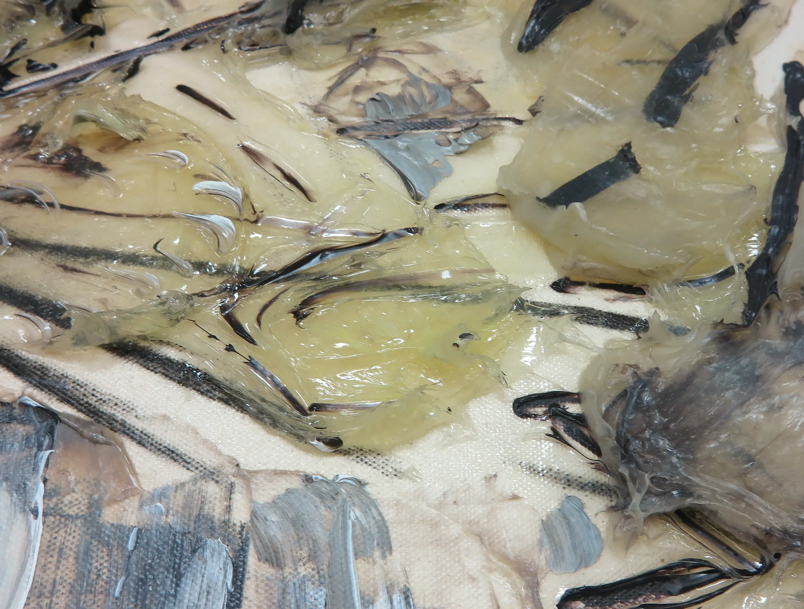 | Het werk is wat vuil en heeft wat lichte vegen aan de randen van het doek. | |