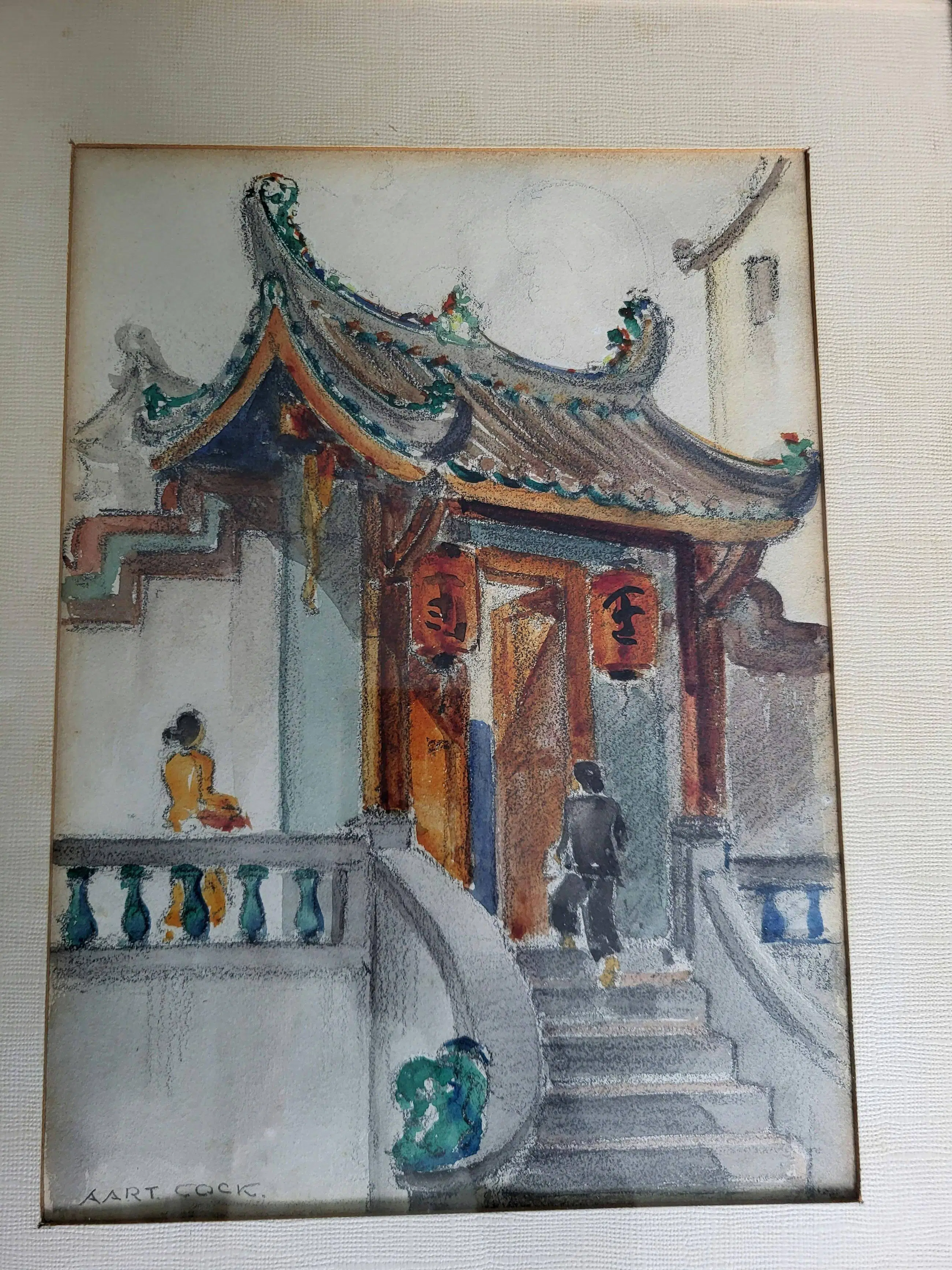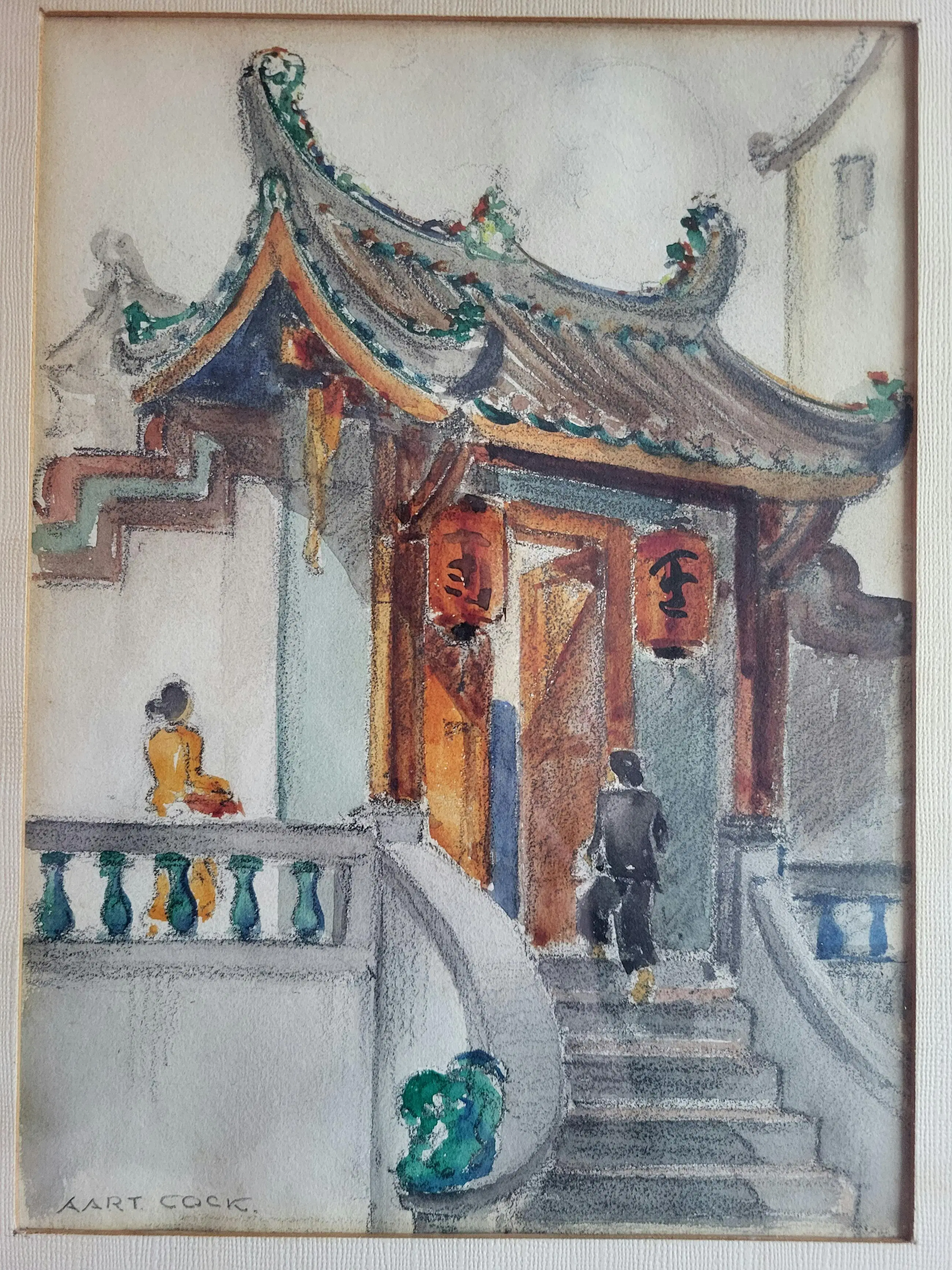 Pastel, indo-art. Aart Johannes Cock 1905-1981. Naam pastel onbekend.