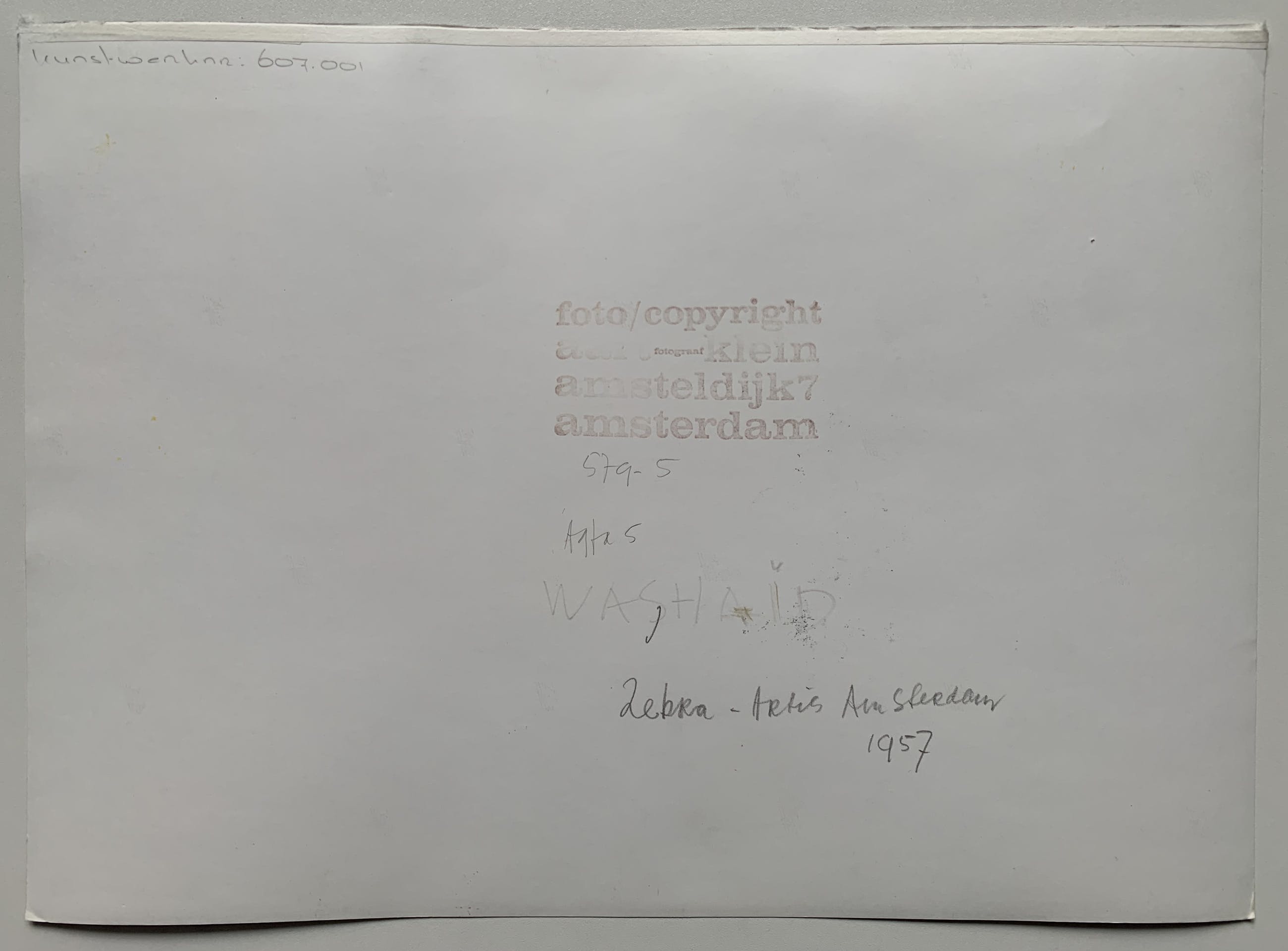 Aan de achterzijde voorzien van de stempel van Aart Klein en verder met potlood getiteld en voorzien van extra informatie.
