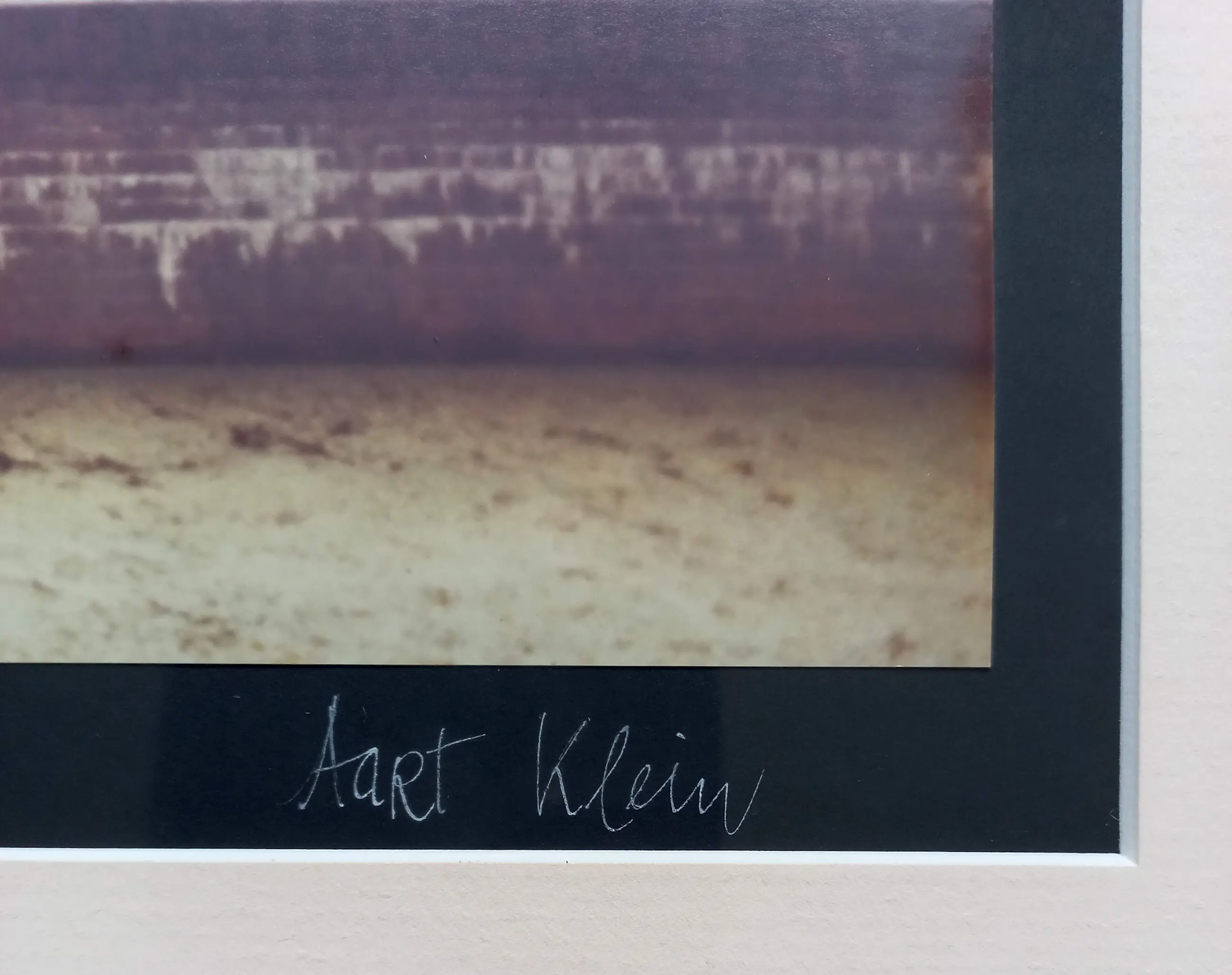 Mooie foto van Aart Klein, te dateren vroege jaren 70. Kleurenfoto, met witte inkt gesigneerd en gesitueerd. Netjes ingelijst door Don Hartman Fine Picture Framing (Monterey, Californië), achter glas en met smetteloos, zuurvrij passe-partout. Alles in goede conditie.