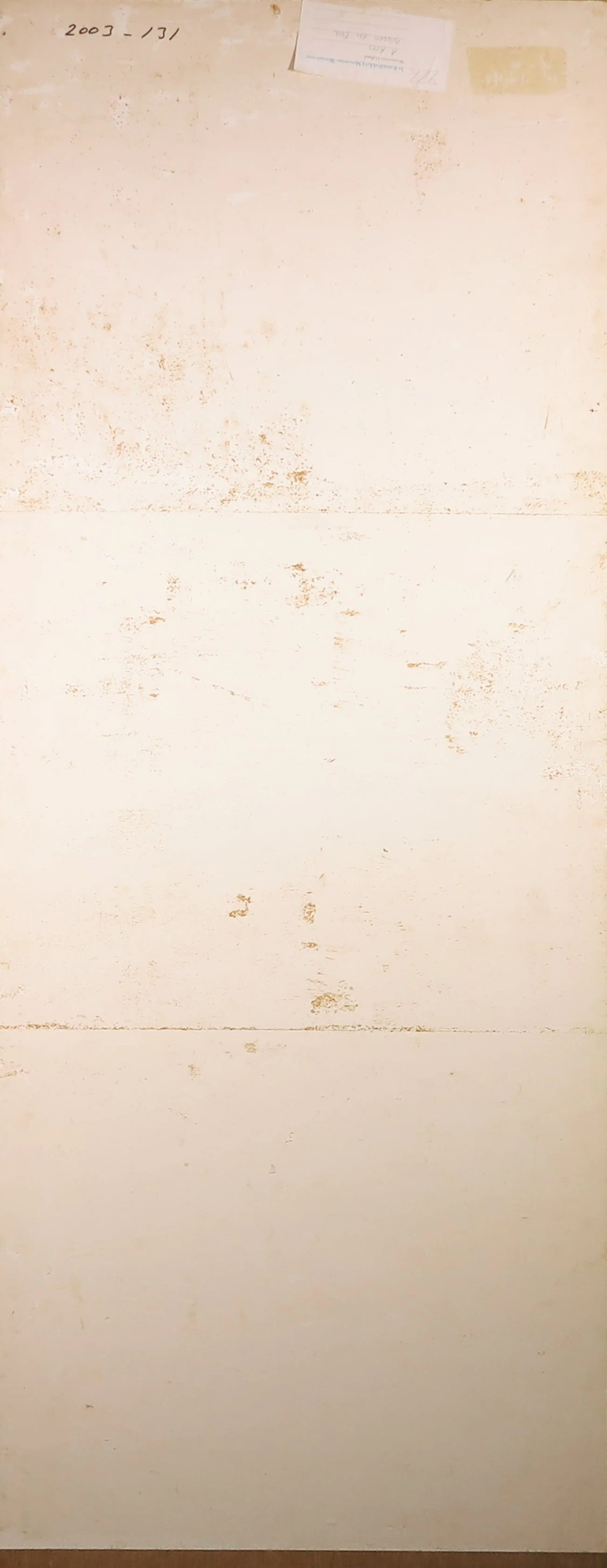 | Het papier is verkleurd en op enkele plekken lijkt het papier weggesleten. Zie hiervoor de detailfoto's. In de rechter bovenhoek lijkt er eveneens wat papierschade te zitten. | |