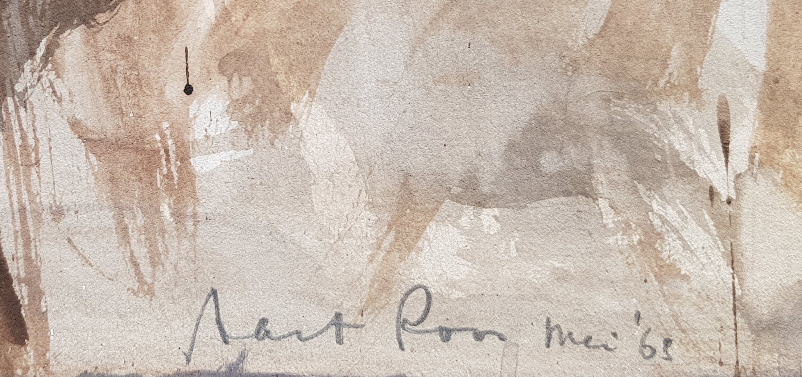 Aart RoosGouache Titel: "Mens"Jaar: mei 1963R.o. gesigneerd Aart Roos Conditie: erg goed, geen beschadigingen/verkleuringen op het werk