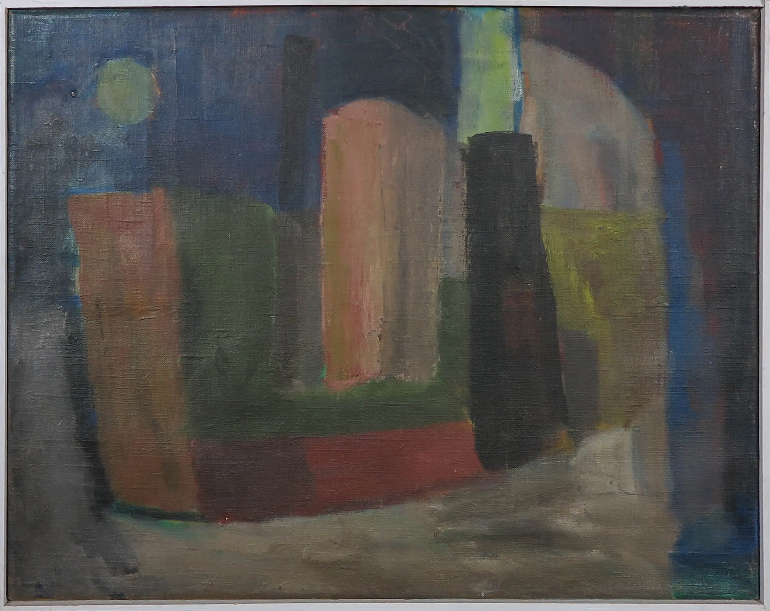 Olieverfschilderij met fabrieken van Aart Roos. Dit werk wordt geleverd met een monografie van de kunstenaar.