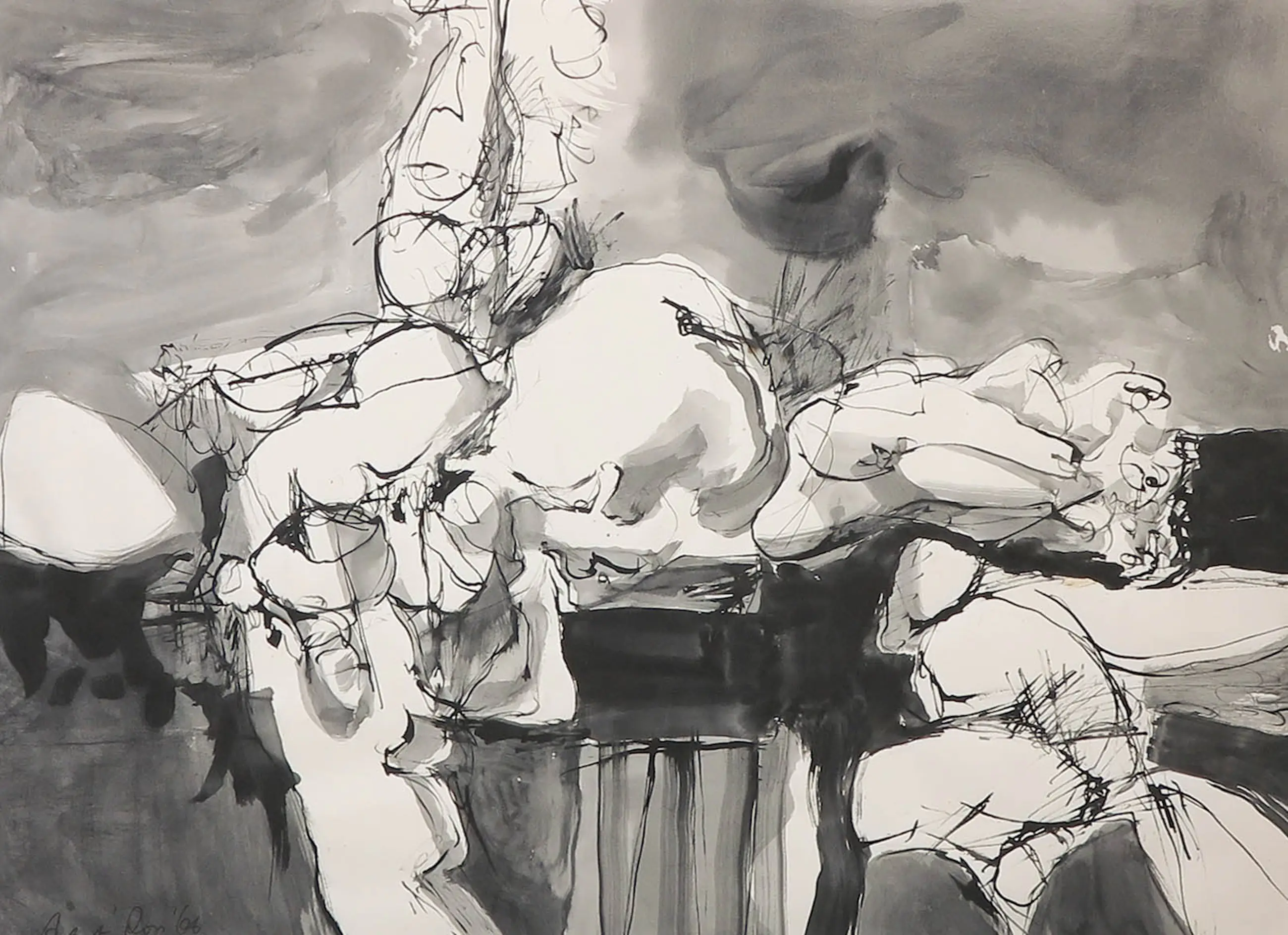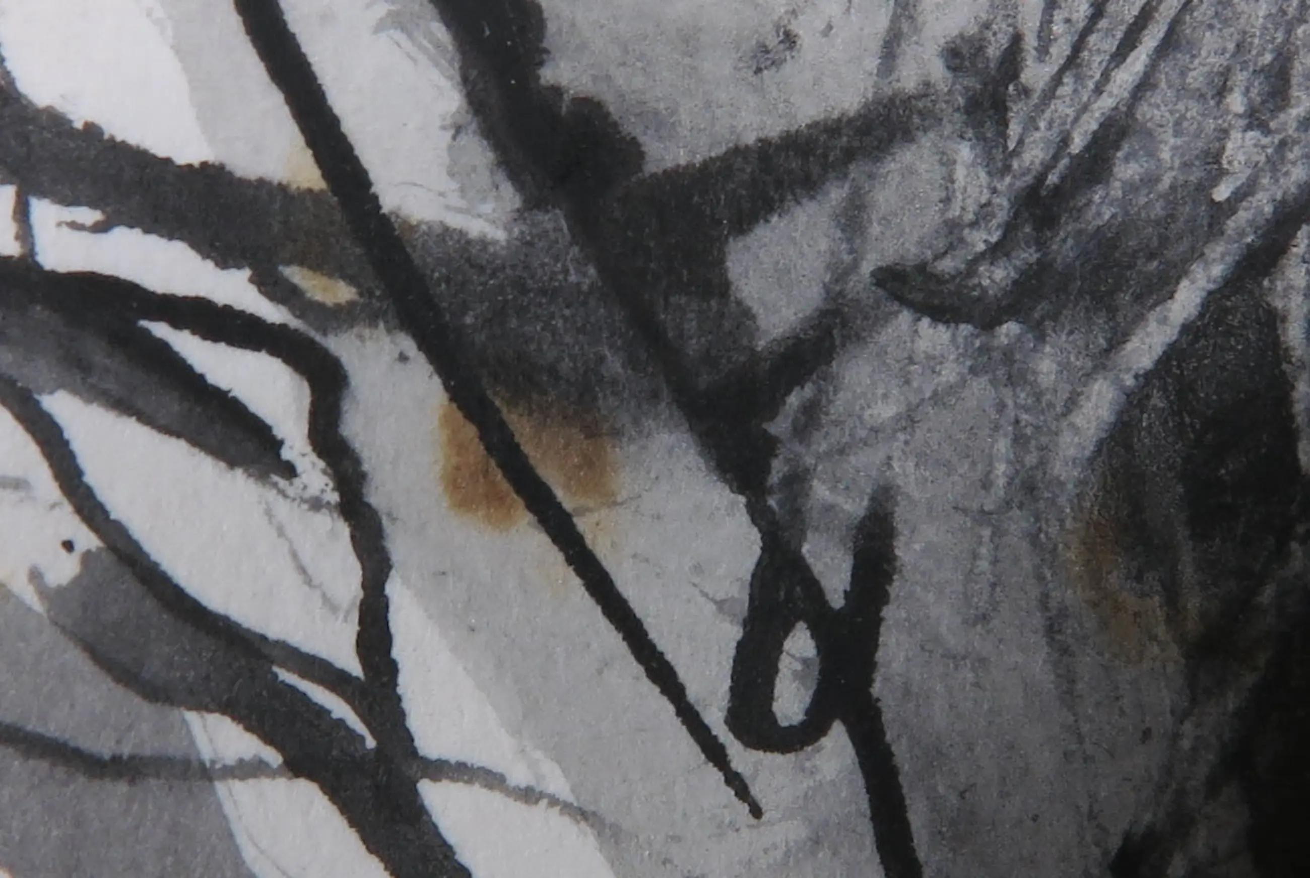 Tekening van inkt op papier door kunstenaar Aart Roos.