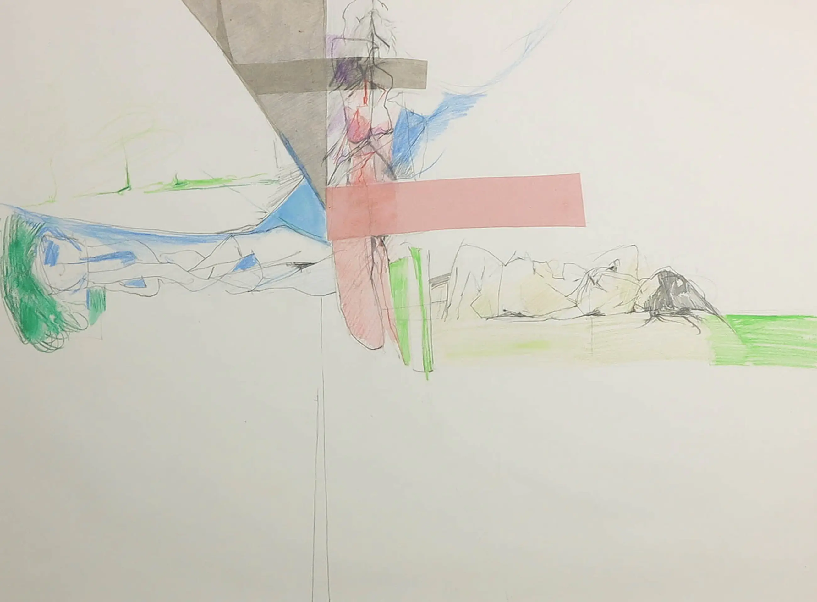 Potloodtekening en collage op papier door kunstenaar Aart Roos.