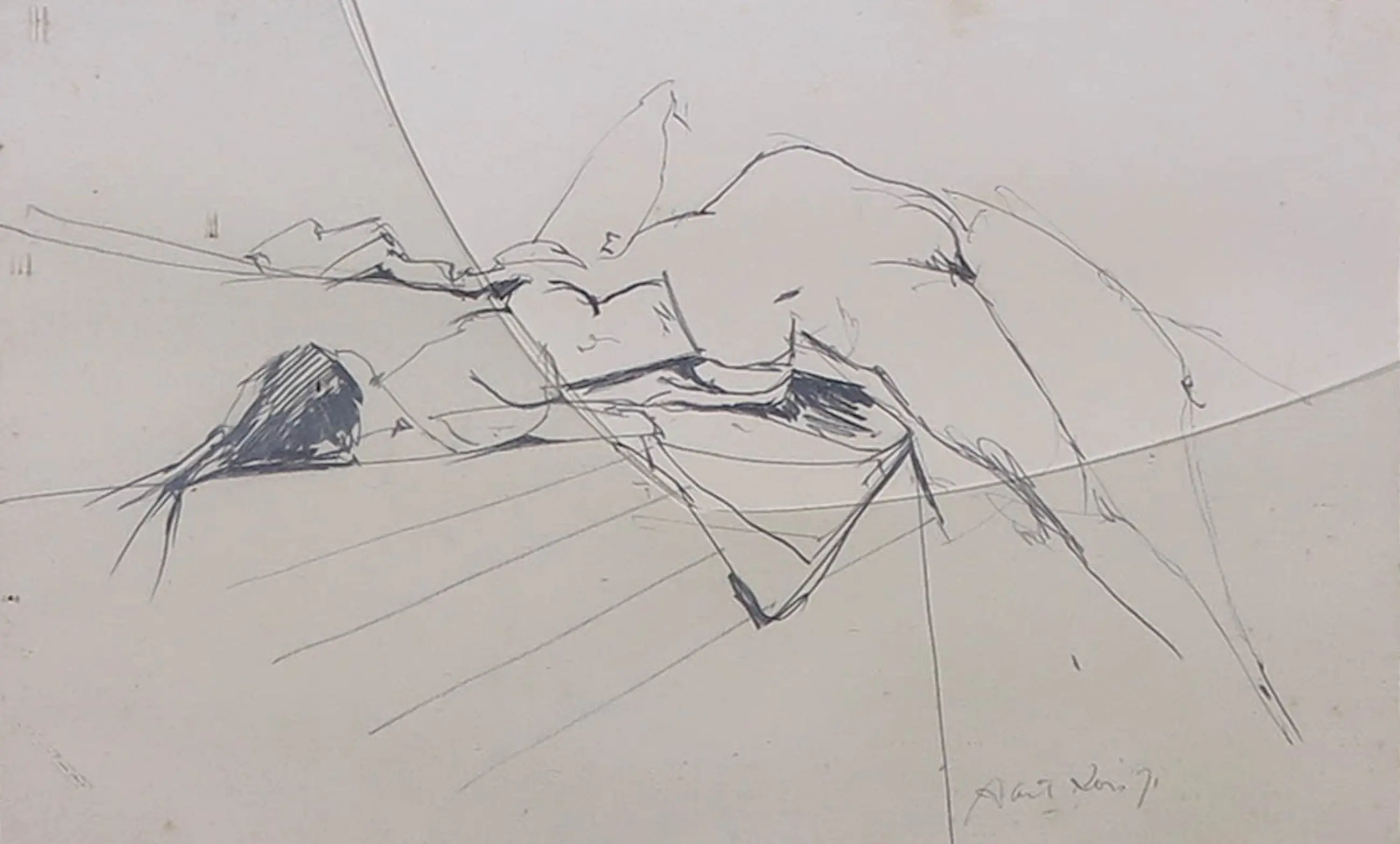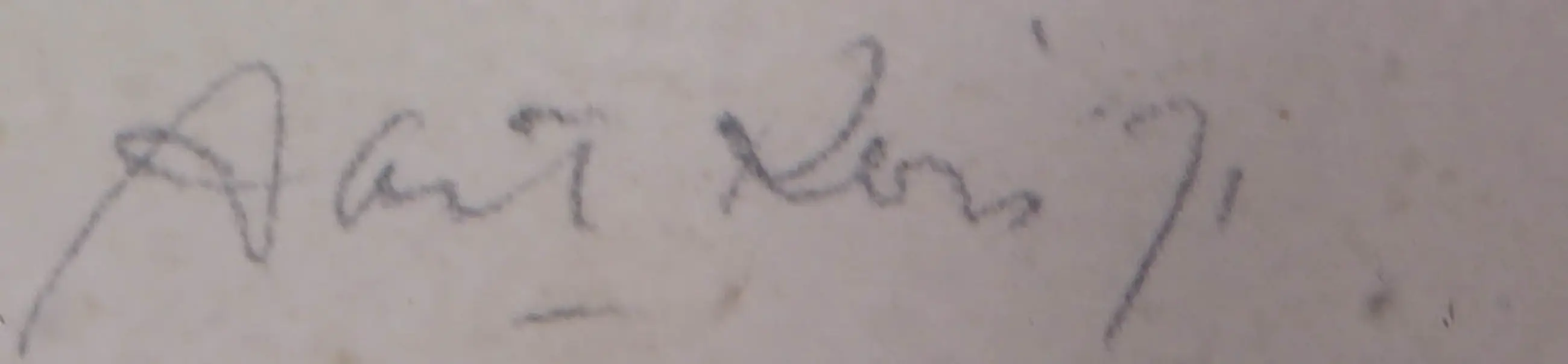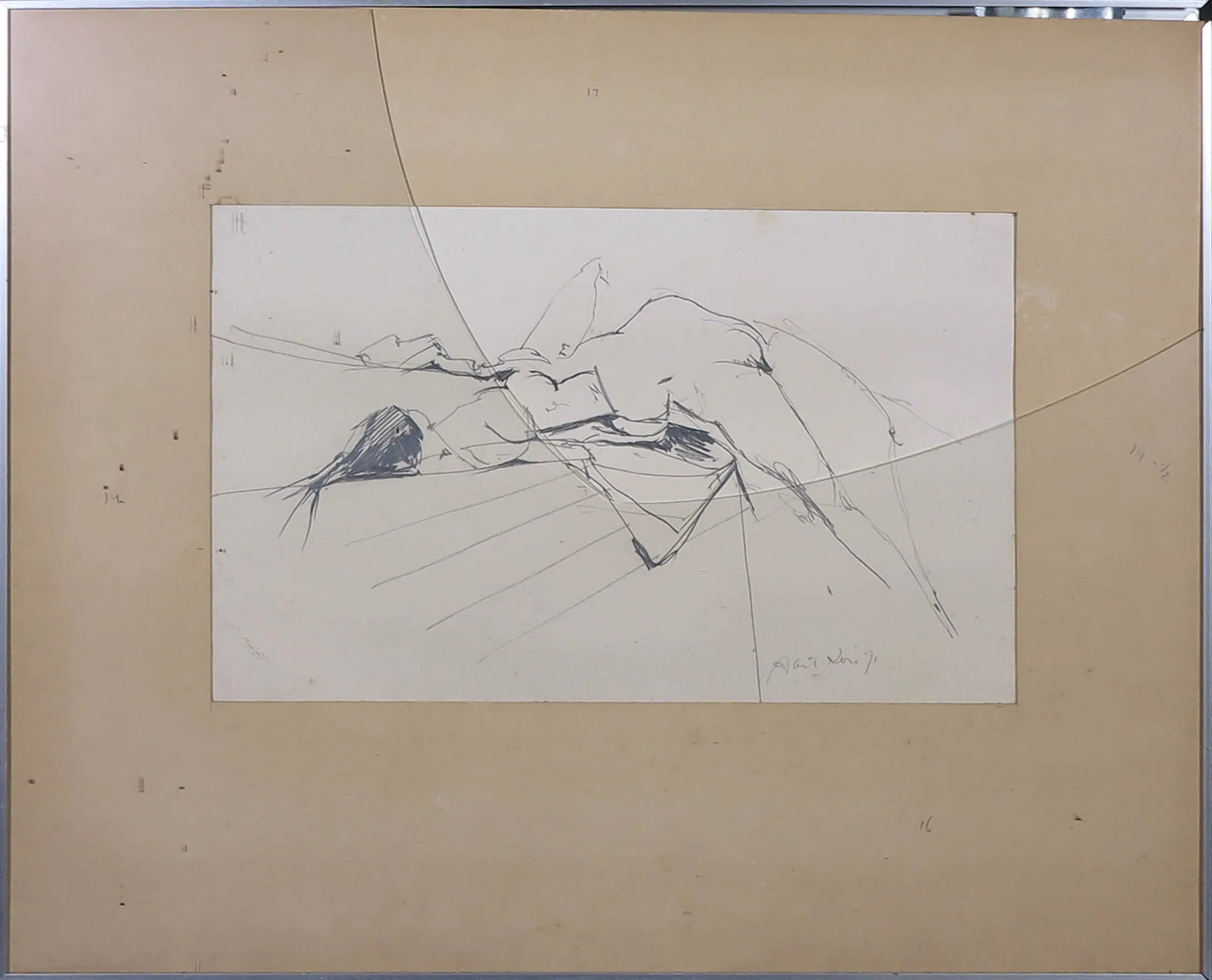Potloodtekening van Aart Roos. Dit werk wordt geleverd met een monografie van de kunstenaar, zie foto's. Let op: het werk is ingelijst, maar heeft glasschade en zit daardoor niet meer helemaal mooi in de lijst.