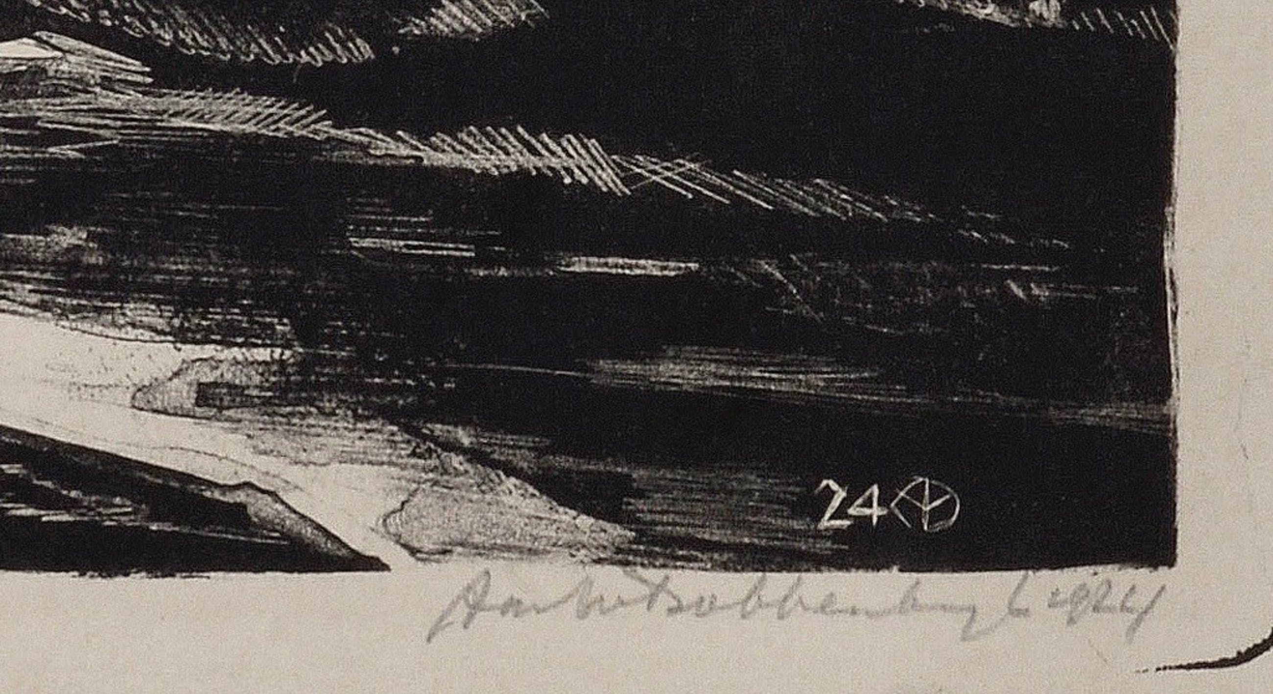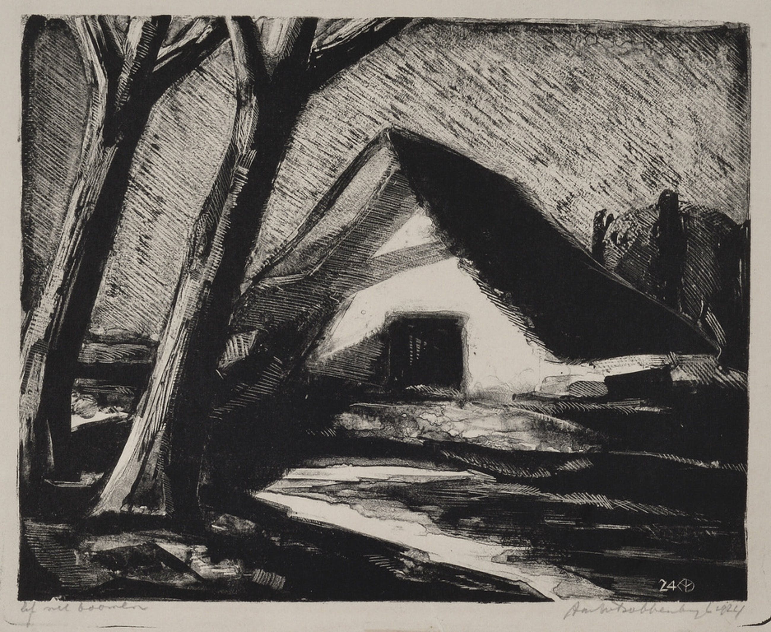 Gesigneerd en gedateerd in potlood: 8/14, Erf met boomen, AartvanDobbenburgh 1924