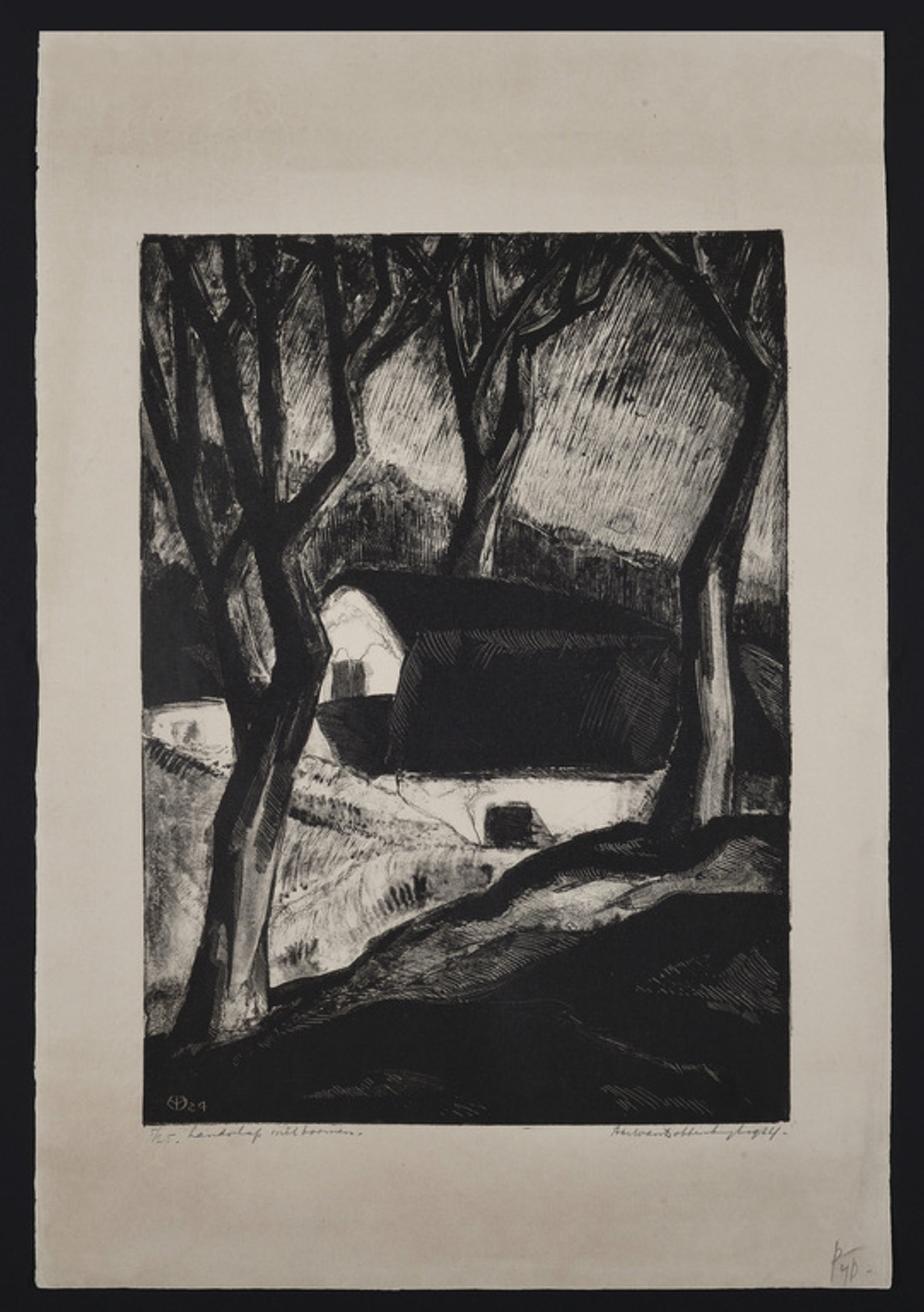 Genummerd, gesigneerd en gedateerd in potlood: 5/25, Landschap met boomen, AartvanDobbenburgh 1924