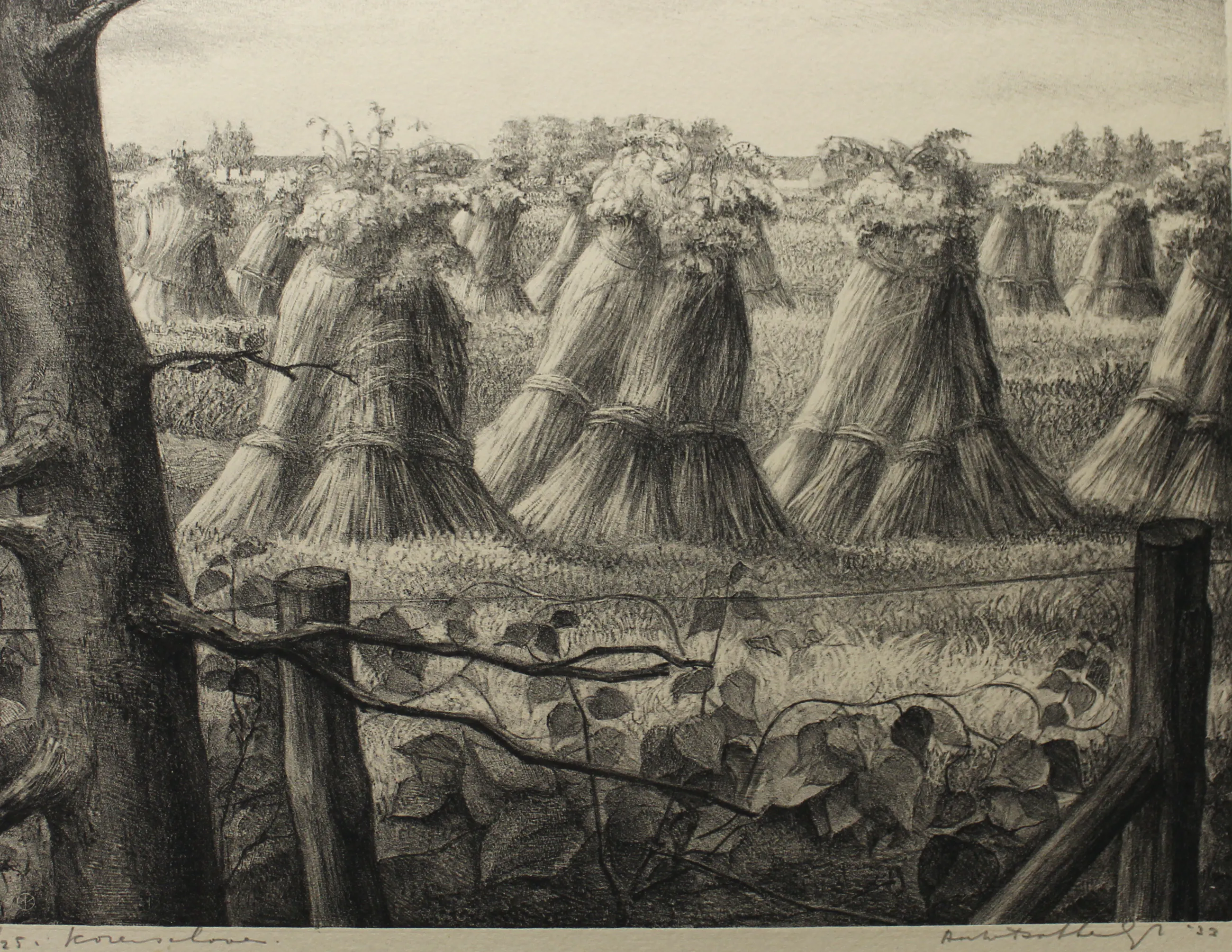Prachtige litho van Van Dobbenburgh uit 1933. Ingelijst met zuurvrije materialen. Zwart houten lijst met passepartout. De litho verkeert in een uitstekende conditie. Handgesigneerd en tevens met monogram in de druk. Handgeschreven titel. Beeldmaat: 21 x 28 cm. Bladmaat: 27 x 34 cm.
