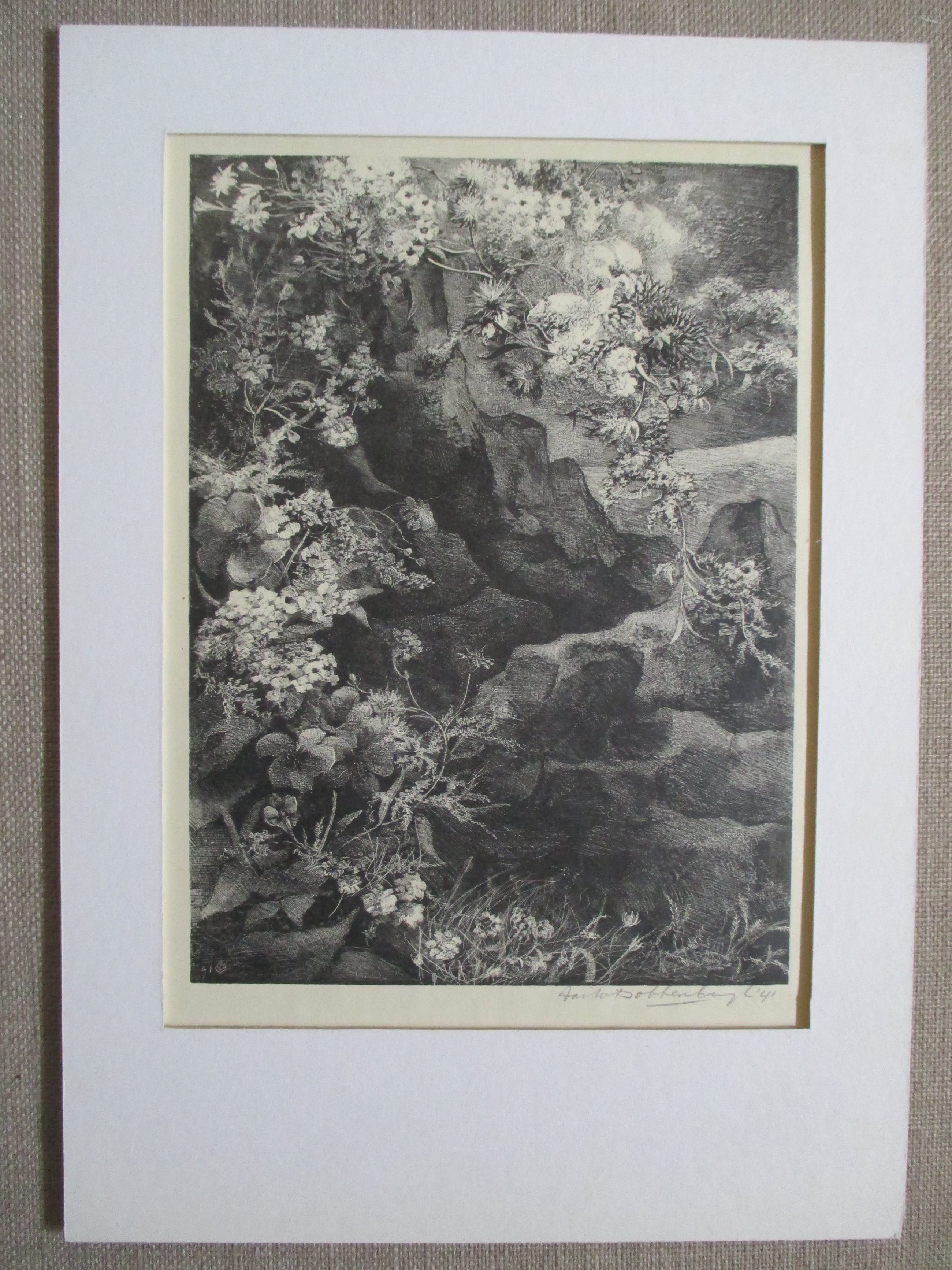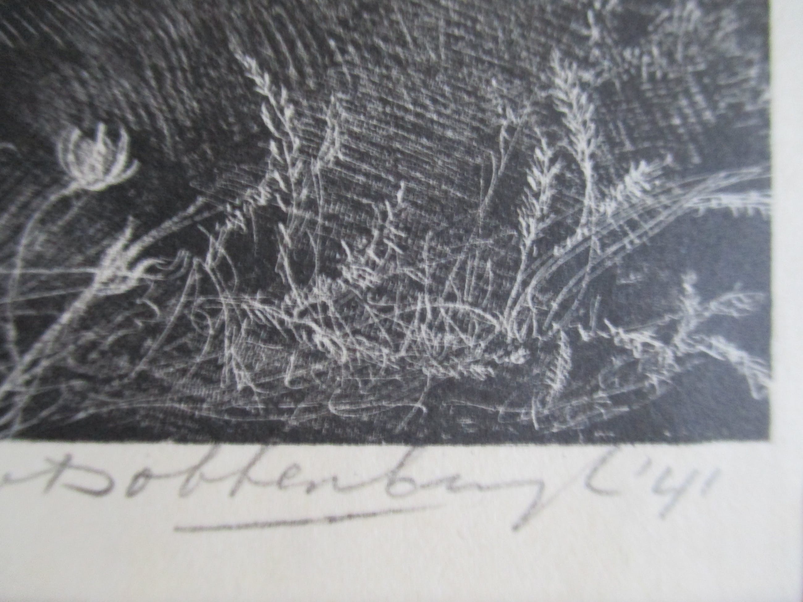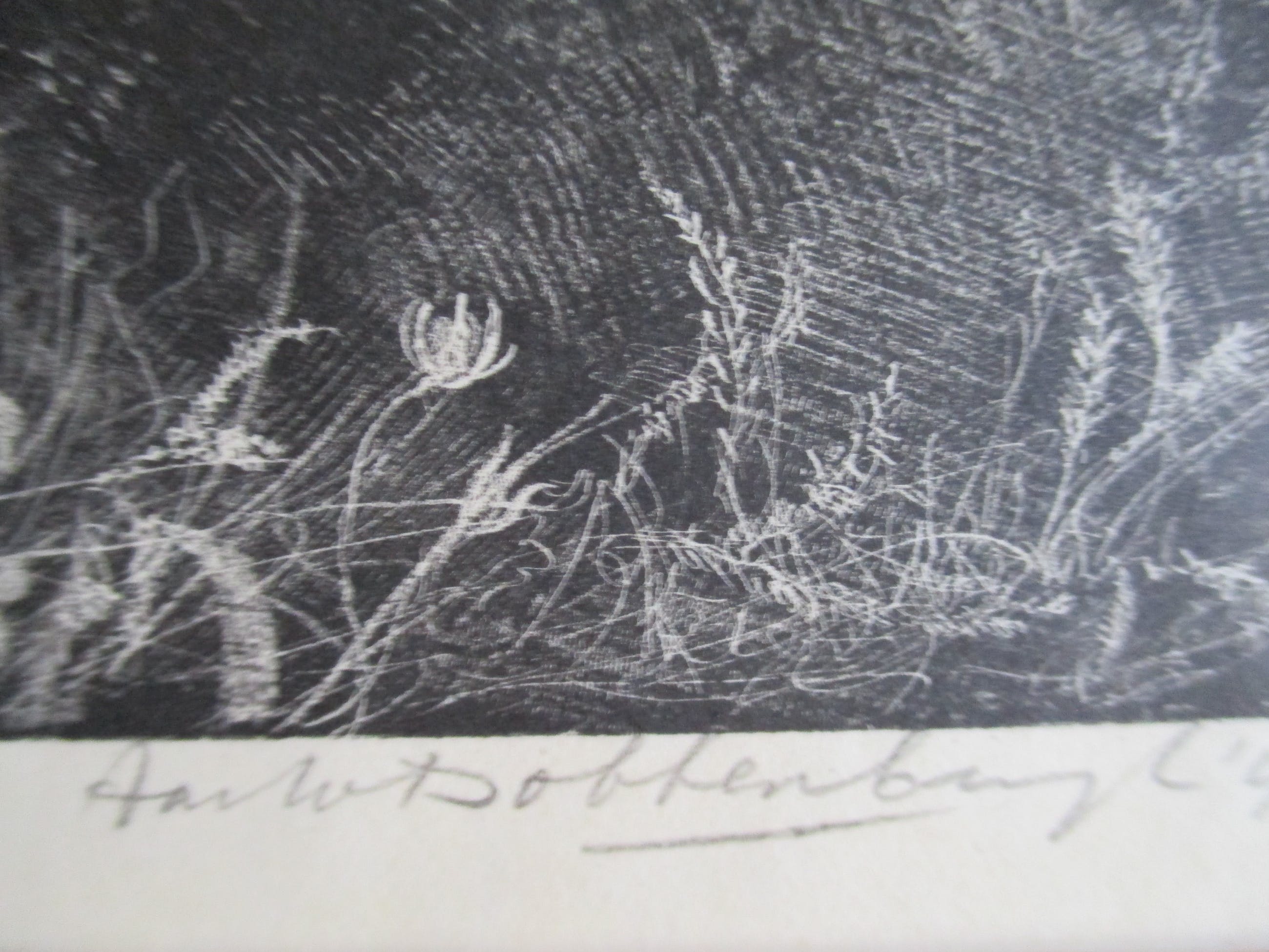 Litho van Aart van Dobbenburgh, gesigneerd en gedateerd in potlood. Geplaatst achter eenvoudig witkartonnen passe-partout. Verzending tussen twee plaatjes, 4,80, aangetekend 9,15