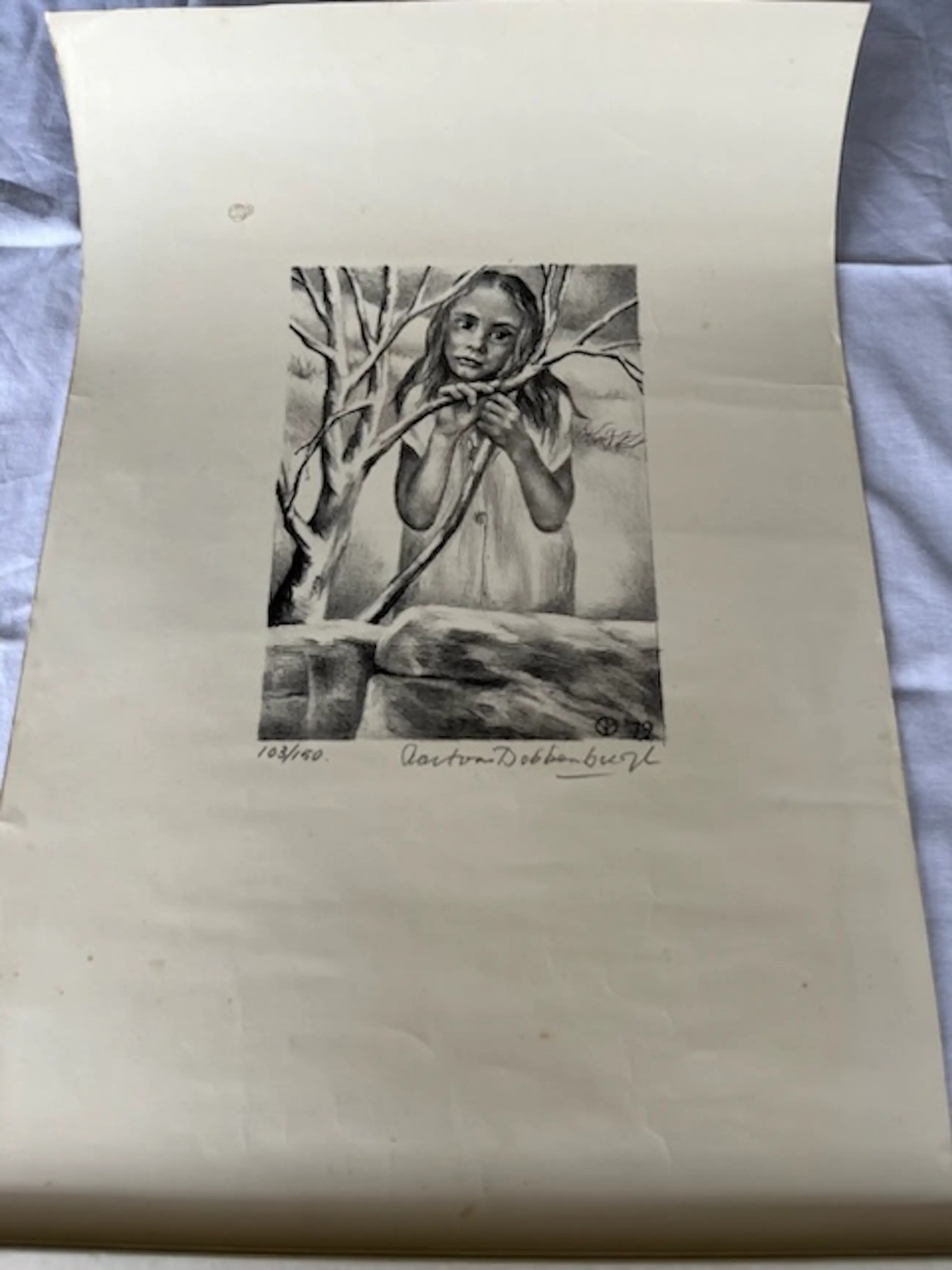 Rondom het werk is het papier een beetje gekreukeld + vlekje links boven het werk: zie foto’s
