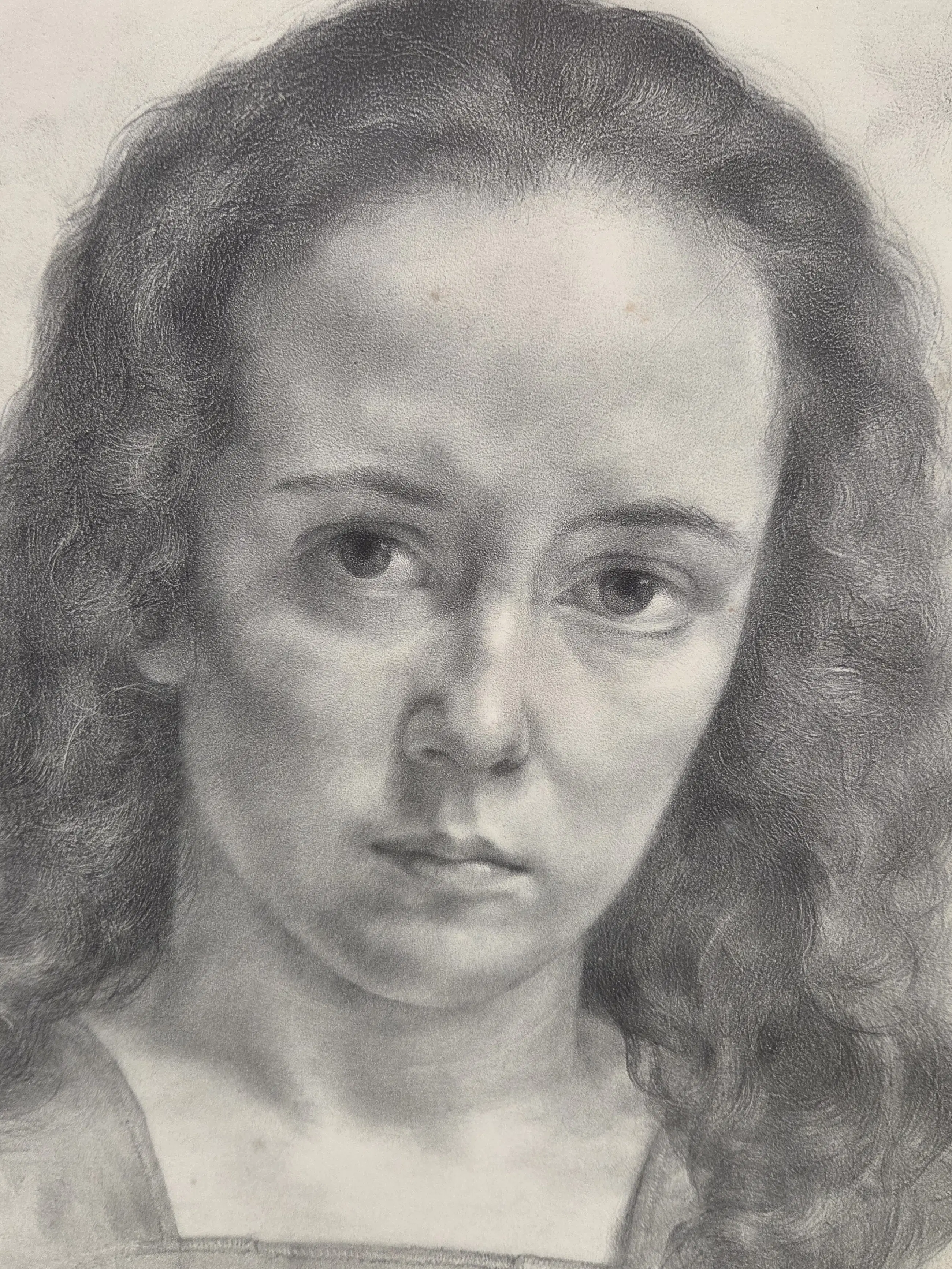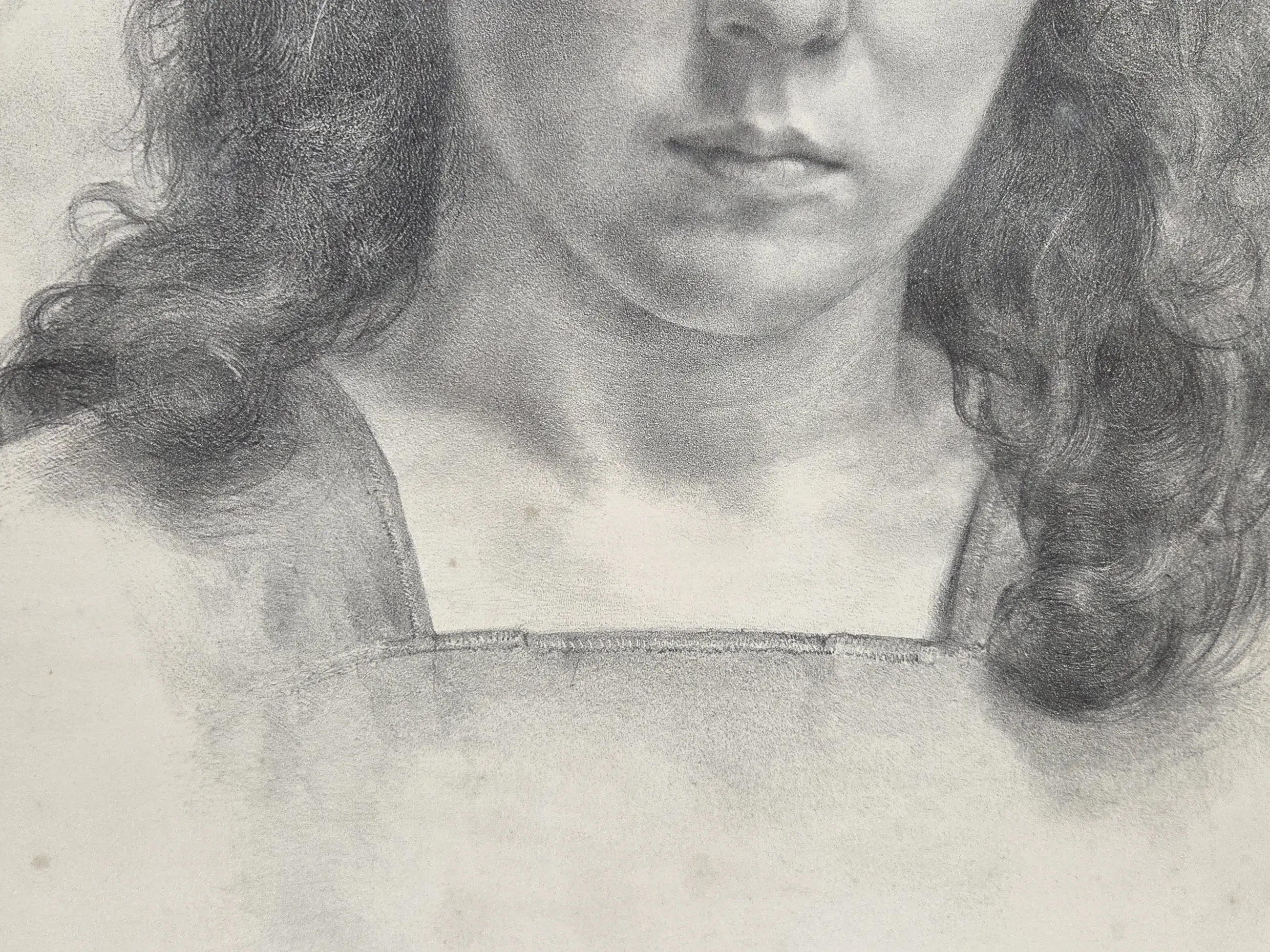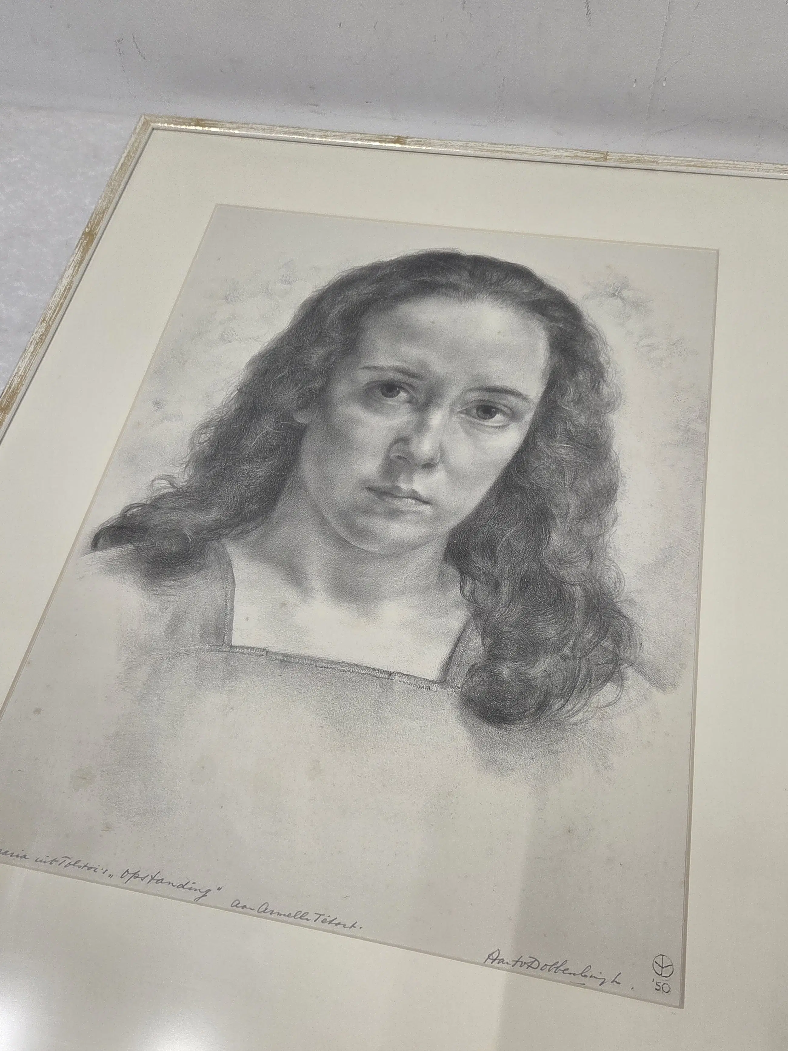 Ingelijst in houten lijst achter matglas en passe-partout