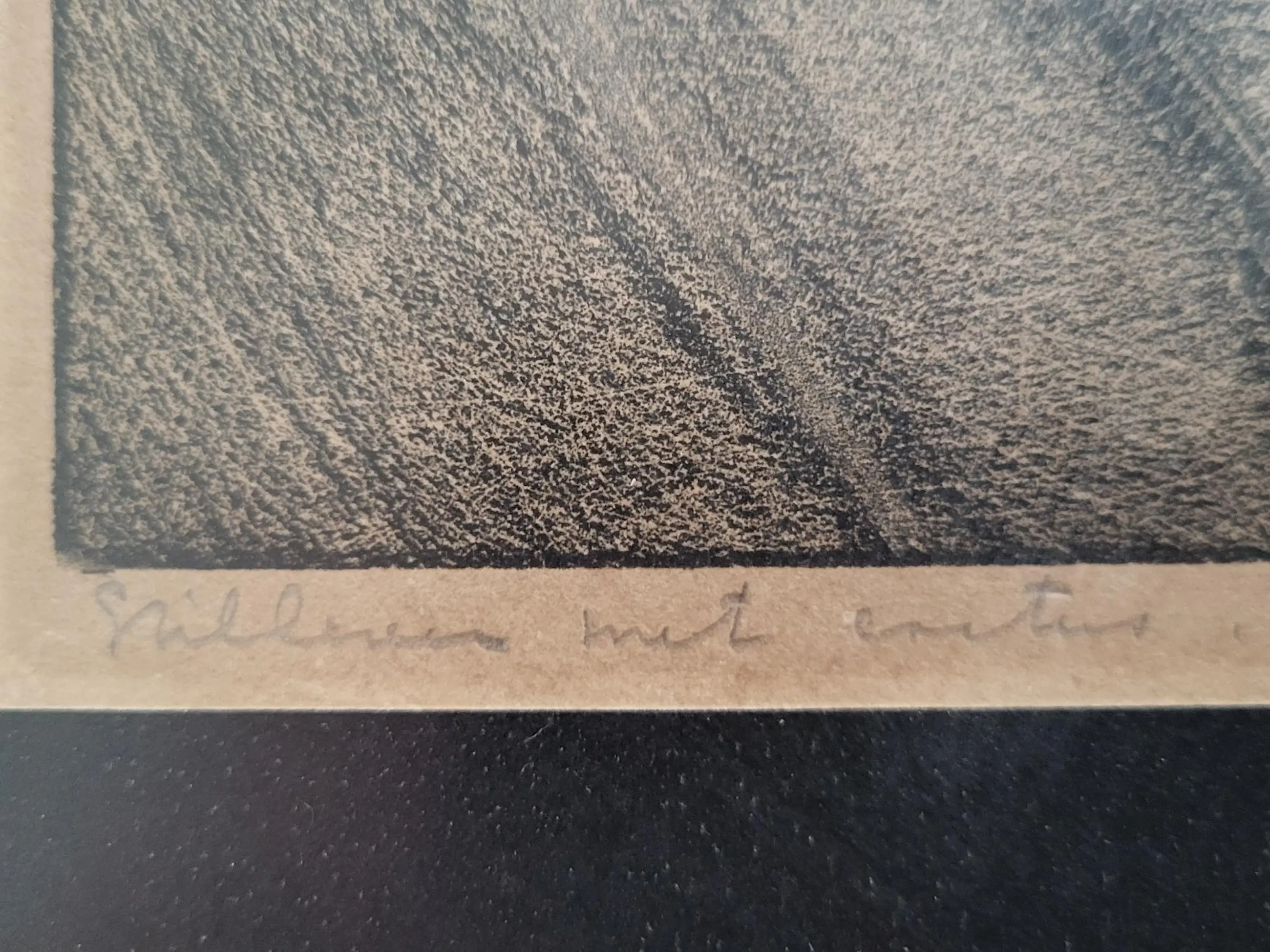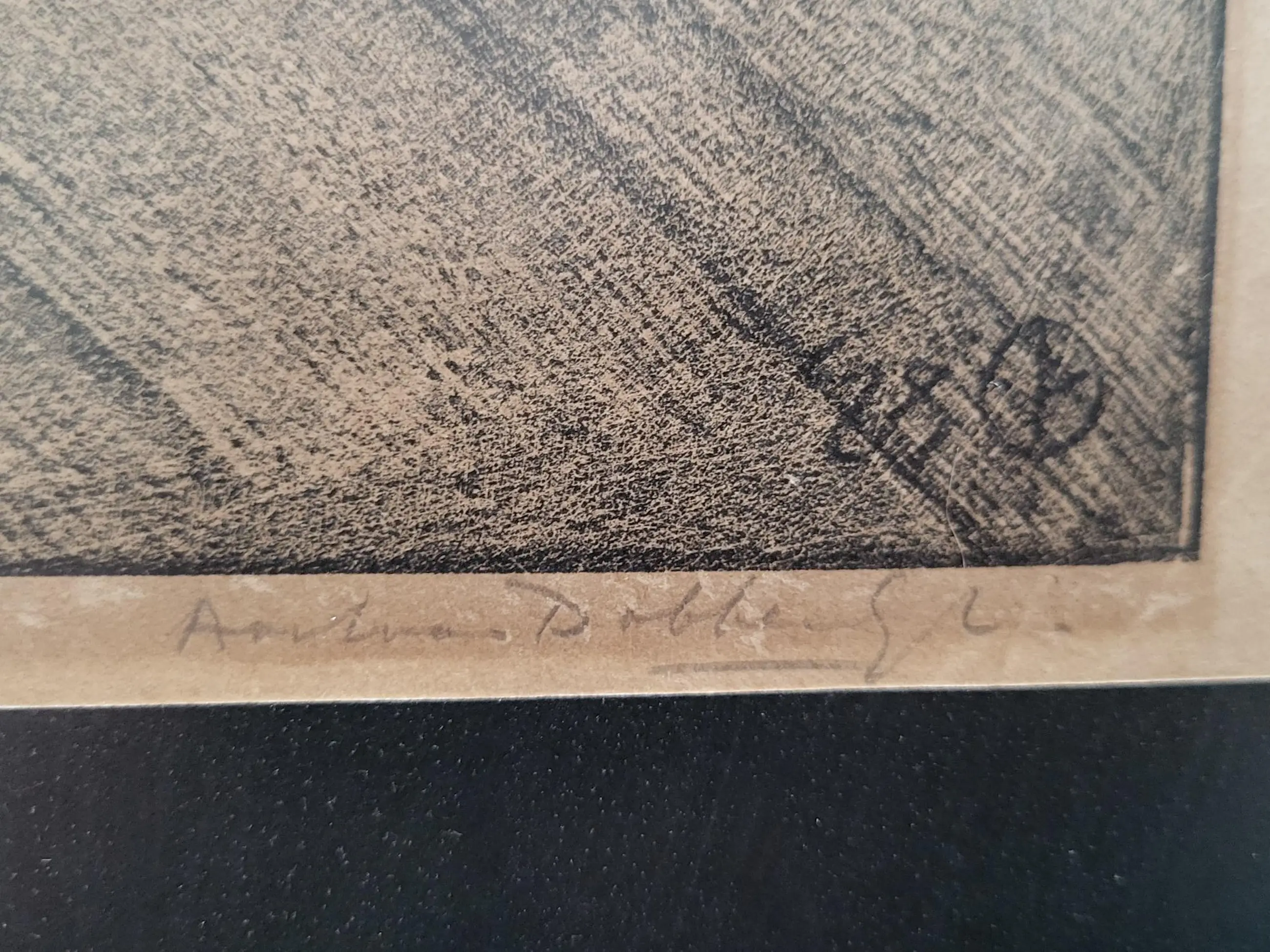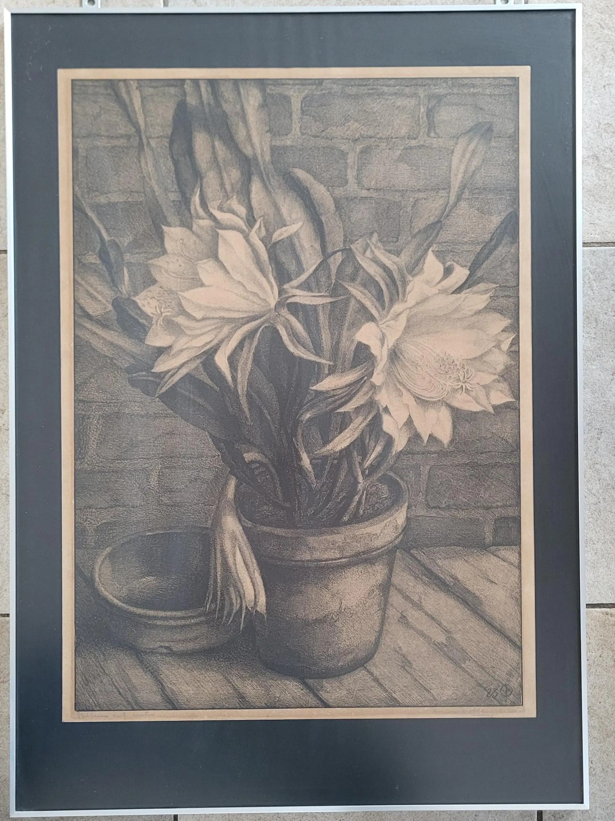Werk is fraai ingelijst achter ontspiegeld glas.