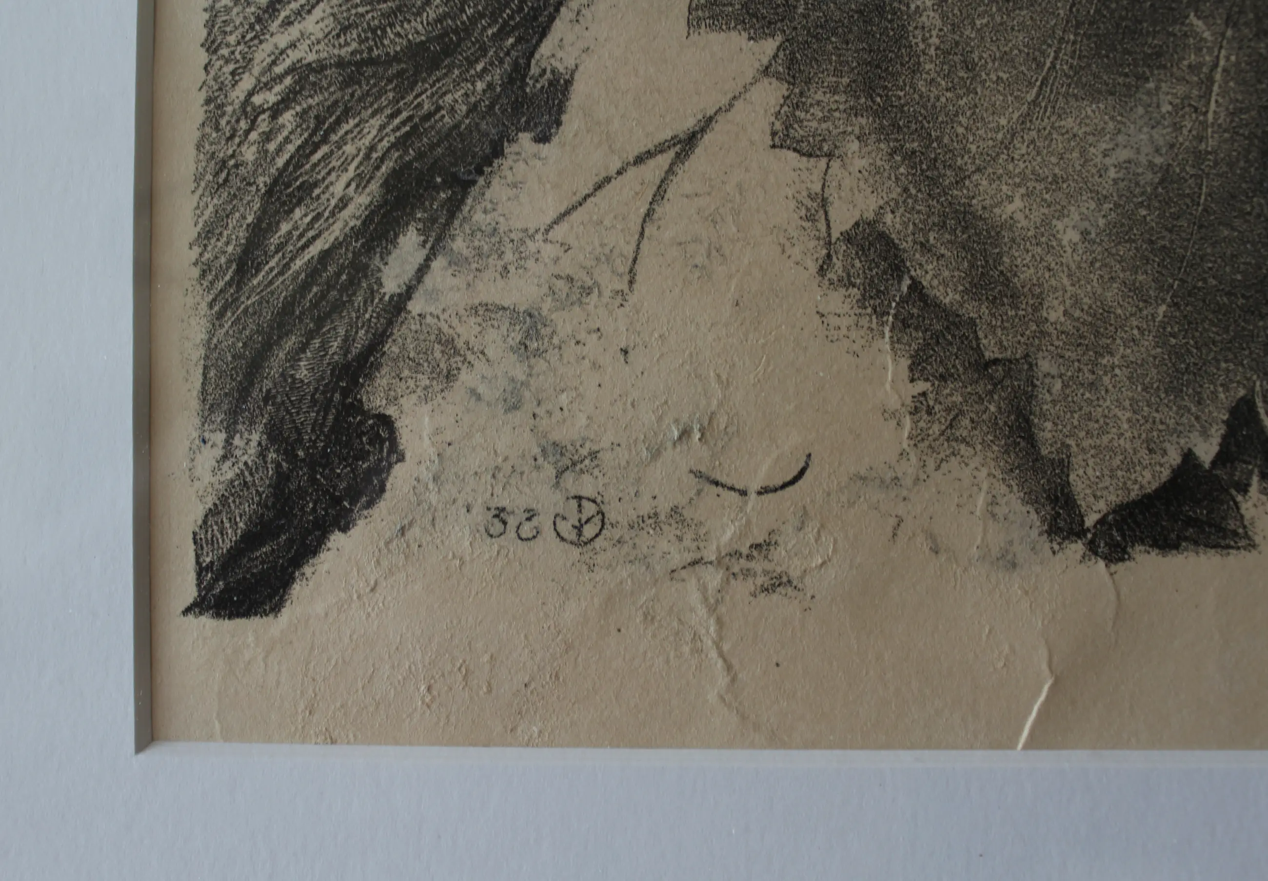 Litho van Van Dobbenburgh uit 1938. Ingelijst met zuurvrije materialen. Zwart houten lijst met passepartout. De litho verkeert in een goede conditie. Papier is van goede kwaliteit, vertoont wel slijtage hier en daar. Handgesigneerd en tevens met monogram in de druk. Beeldmaat: 49 x 35 cm. Bladmaat: 52 x 36 cm. Lijstmaat: 65 x 50 cm.