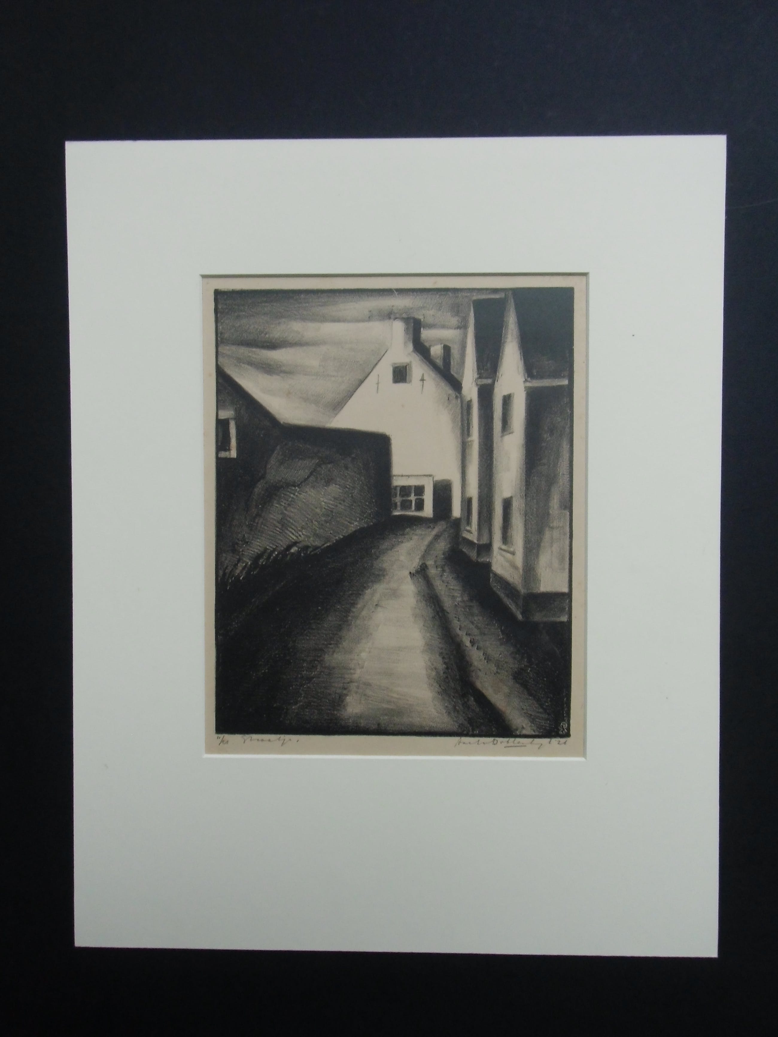 Karakteristiek werk van van Dobbenburgh uit de twintiger jaren van de vorige eew. Zoals gebruikelijk kleine oplage en signature en betiteling in potlood. Monogram r.o. Opgenomen in passepartout met achtervel.