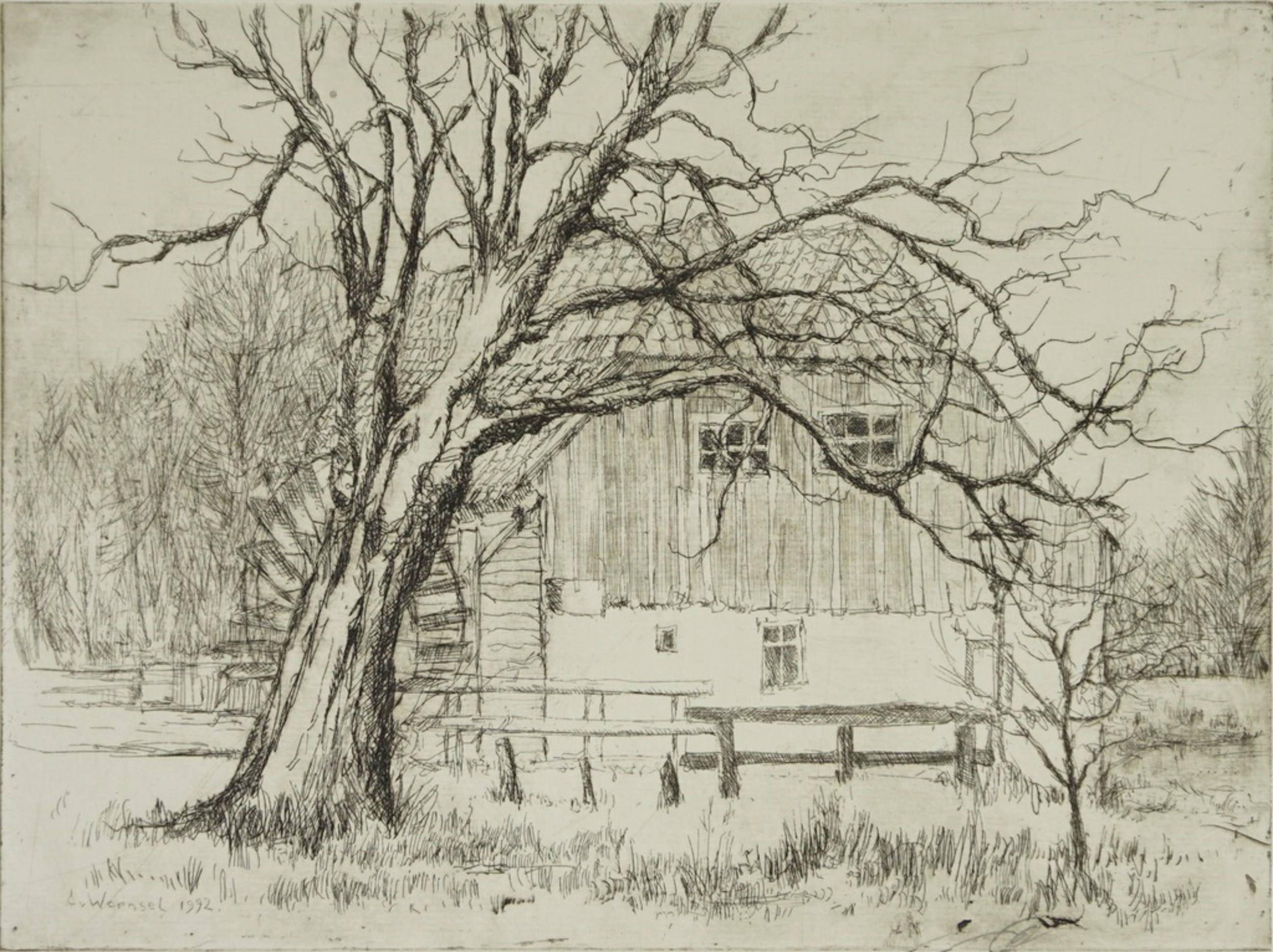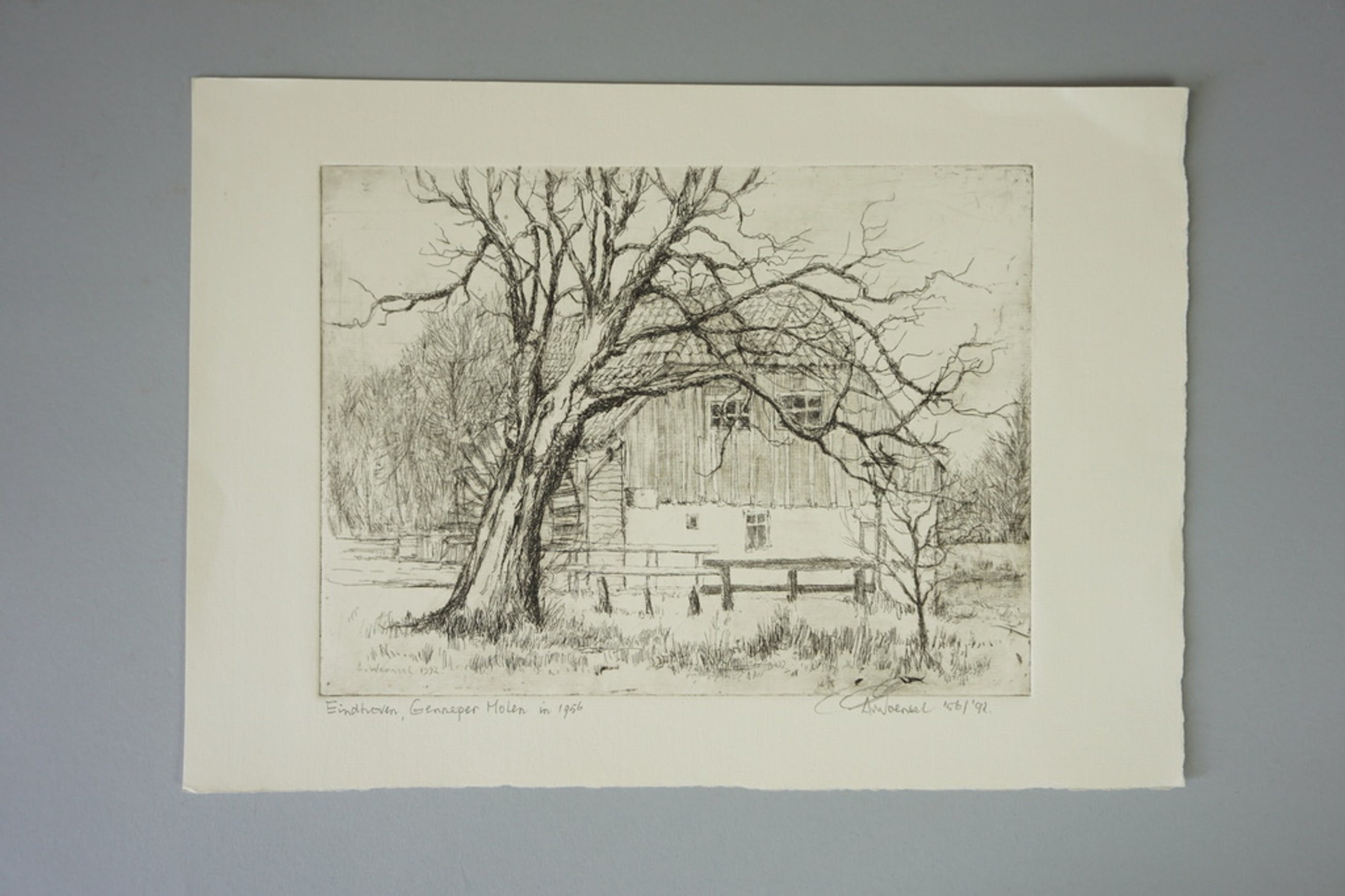 Ets van de Genneper molen gemaakt door Aart van Woensel in 1992.