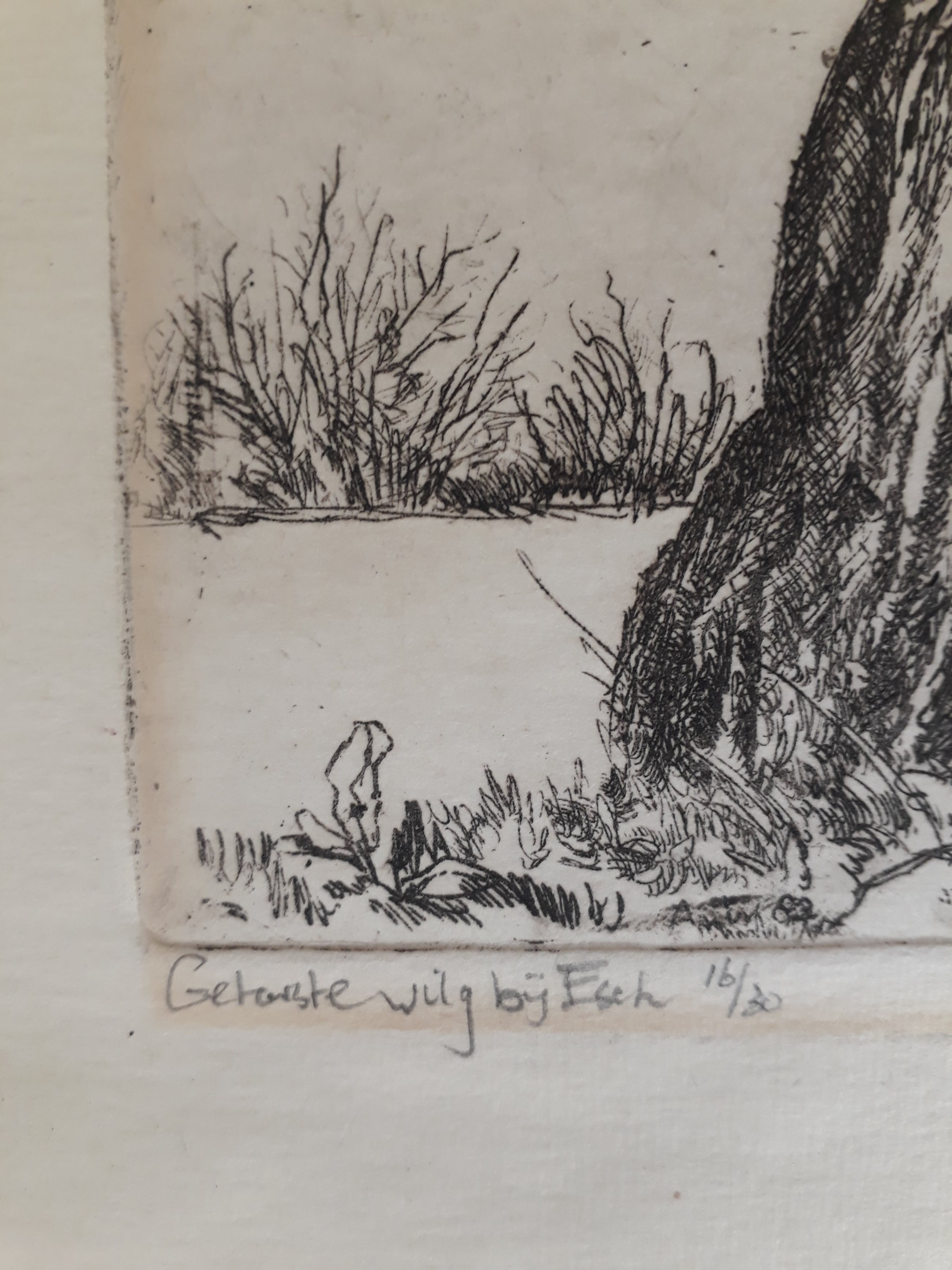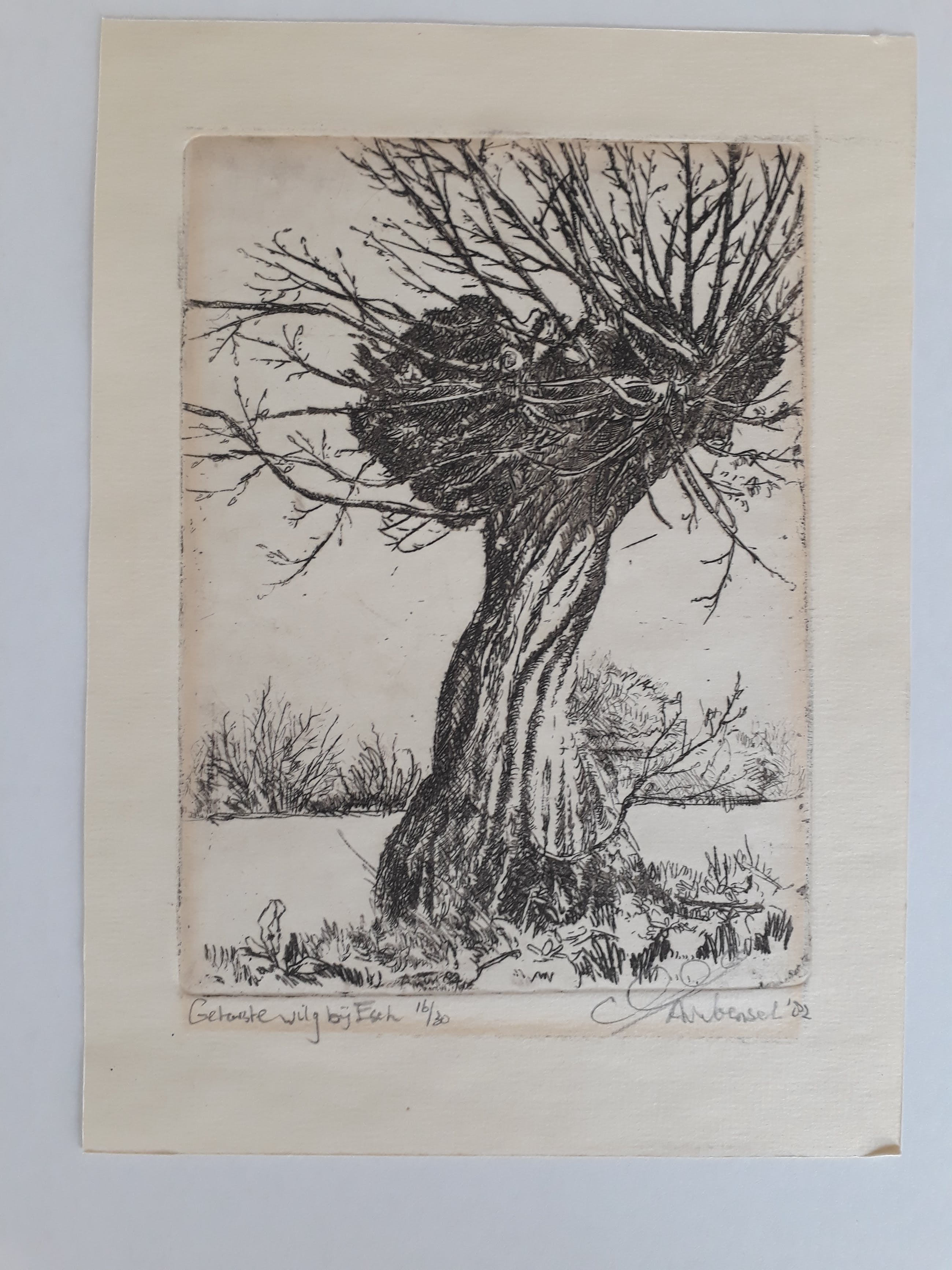 In nieuwstaat verkerende fraaie kleine ets van aart van woensel oplagenummer: 16/30 nooit ingelijst geweest