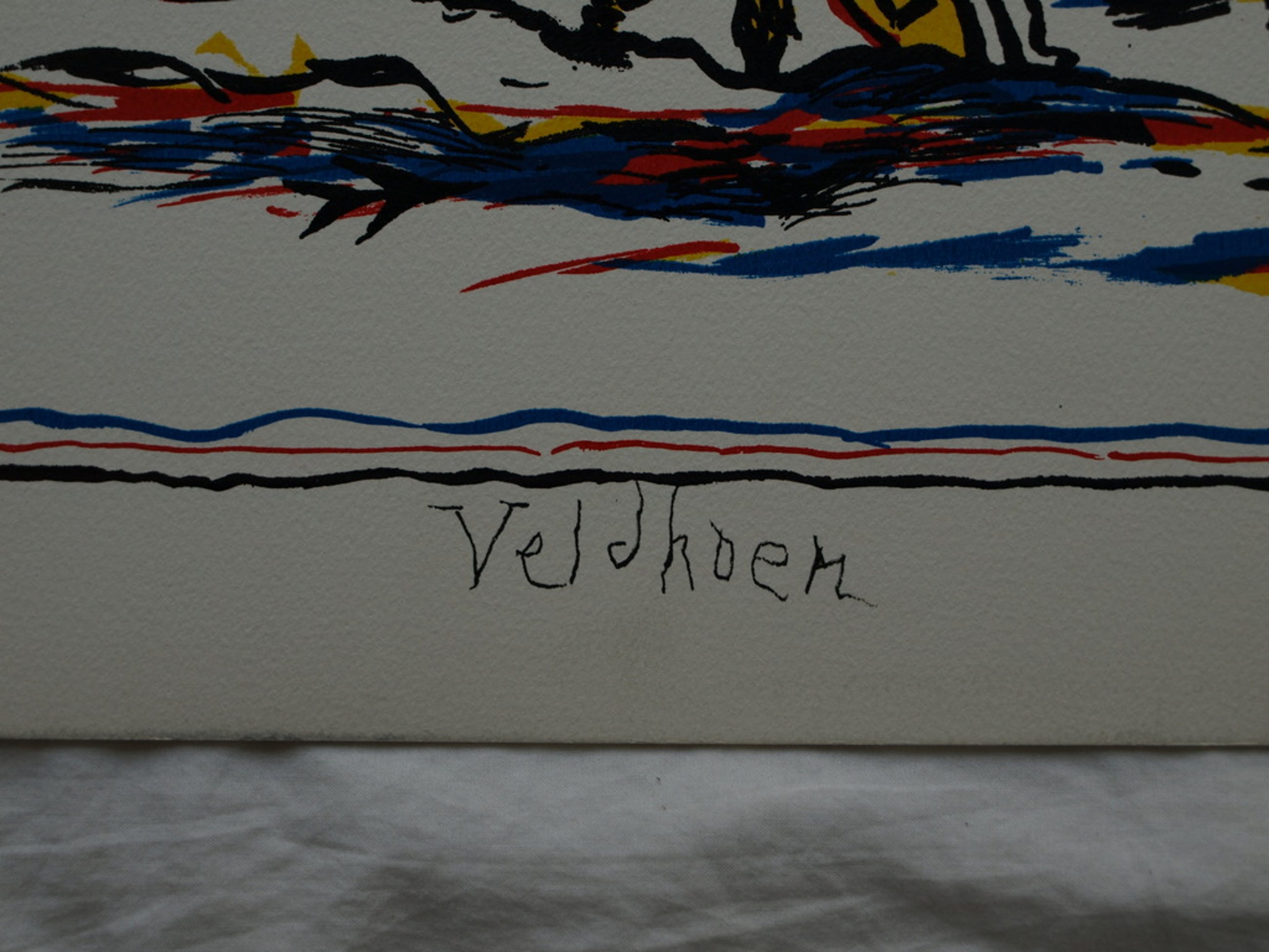Een zeefdruk van de Amsterdamse kunstenaar Aat Veldhoen.